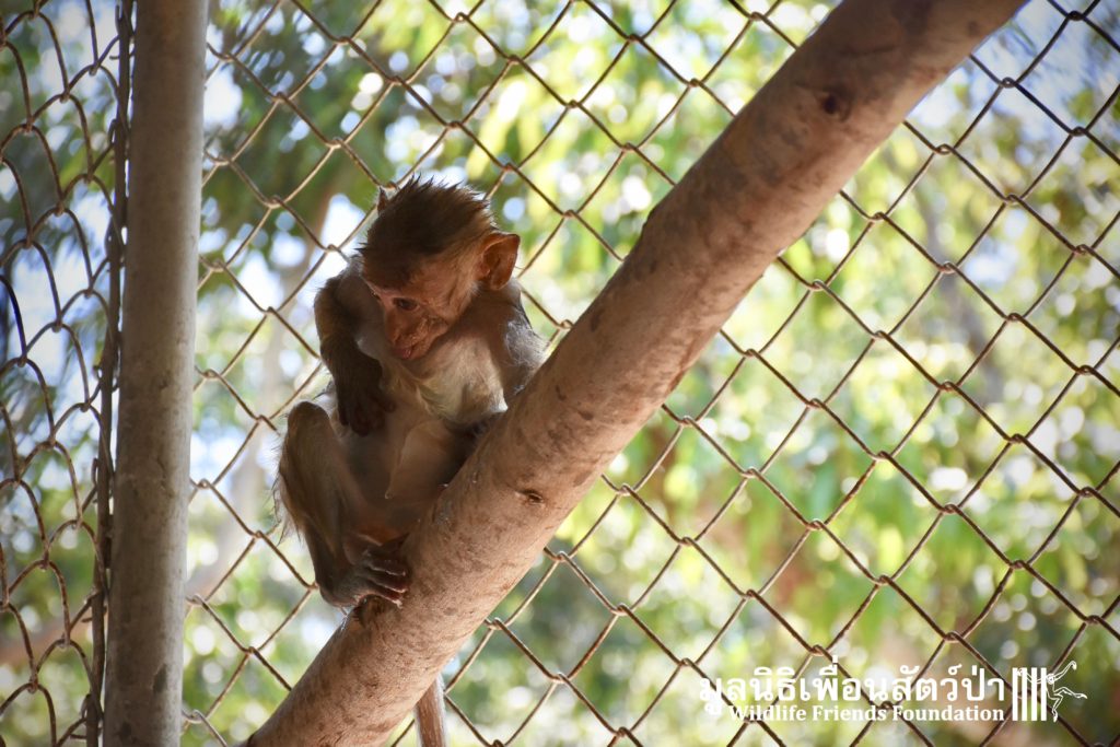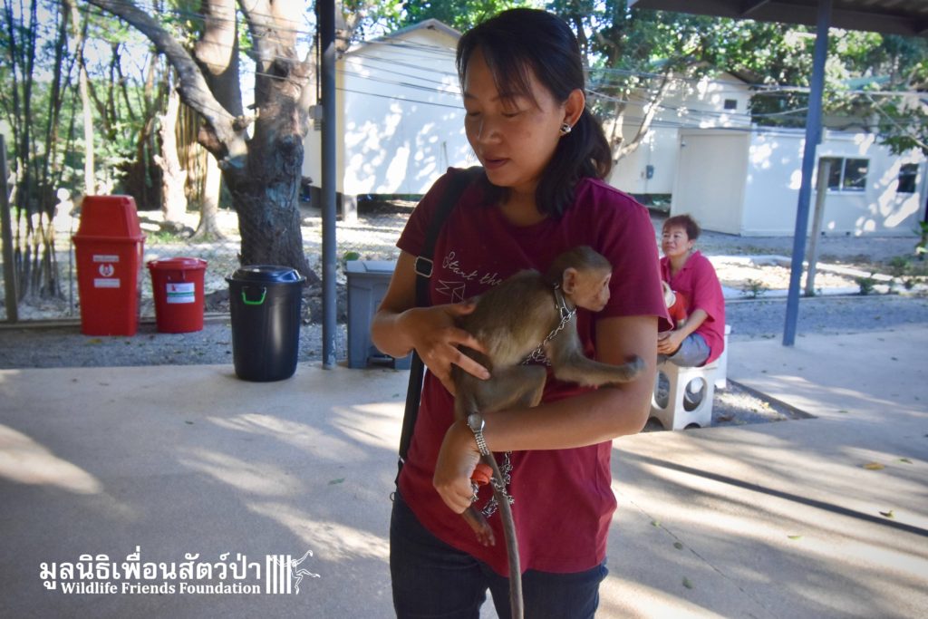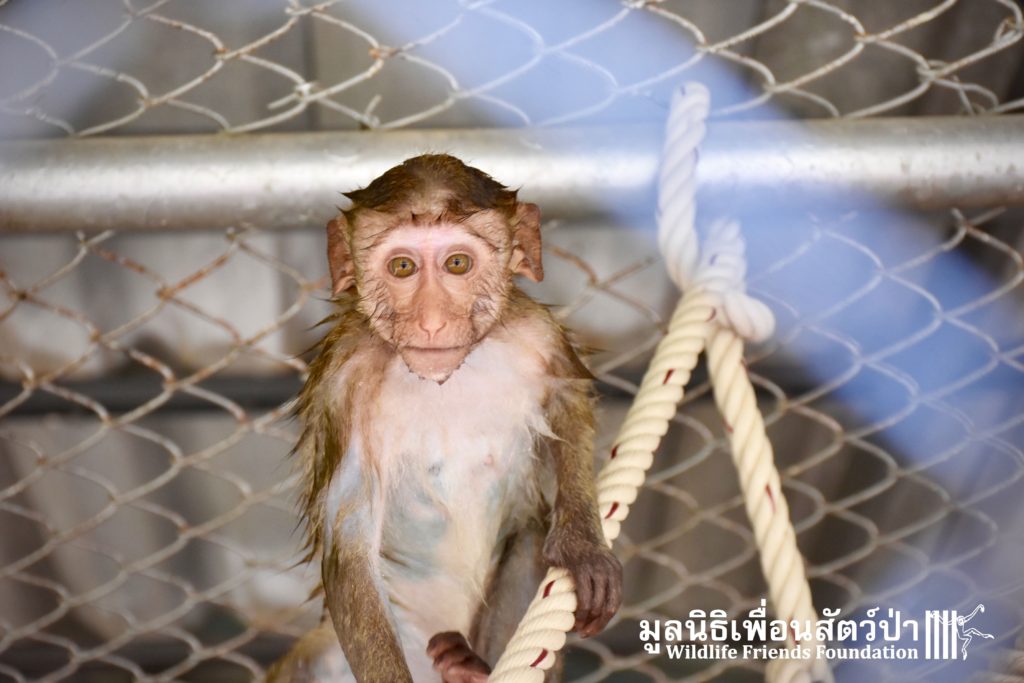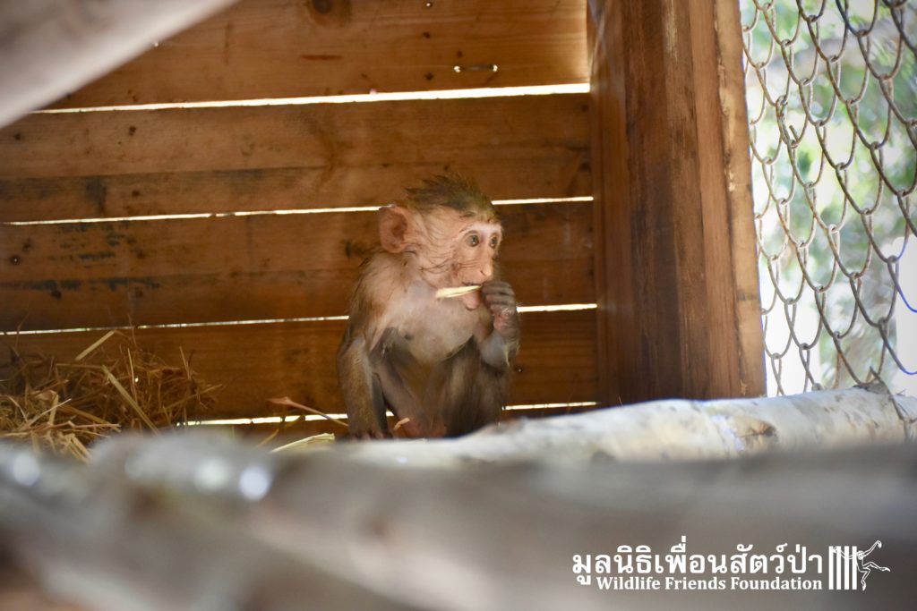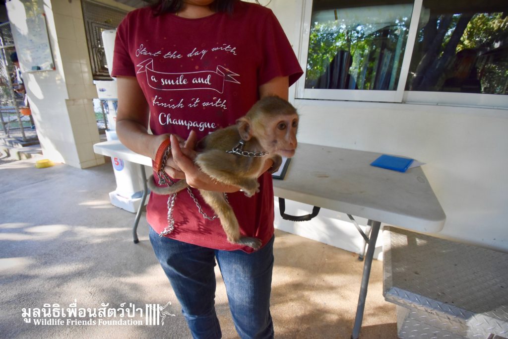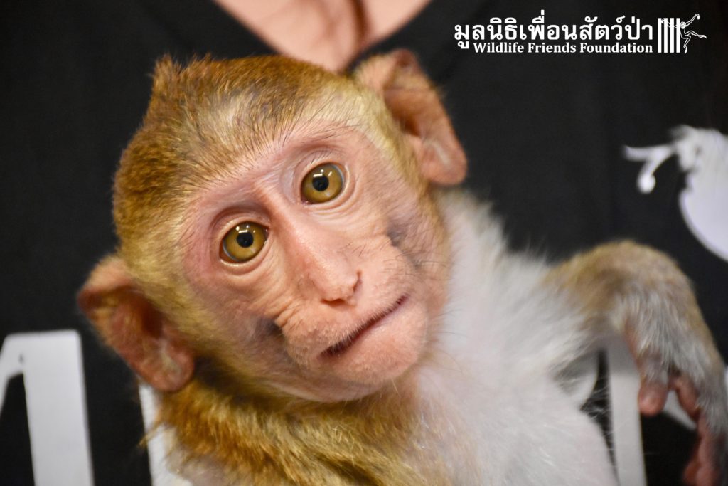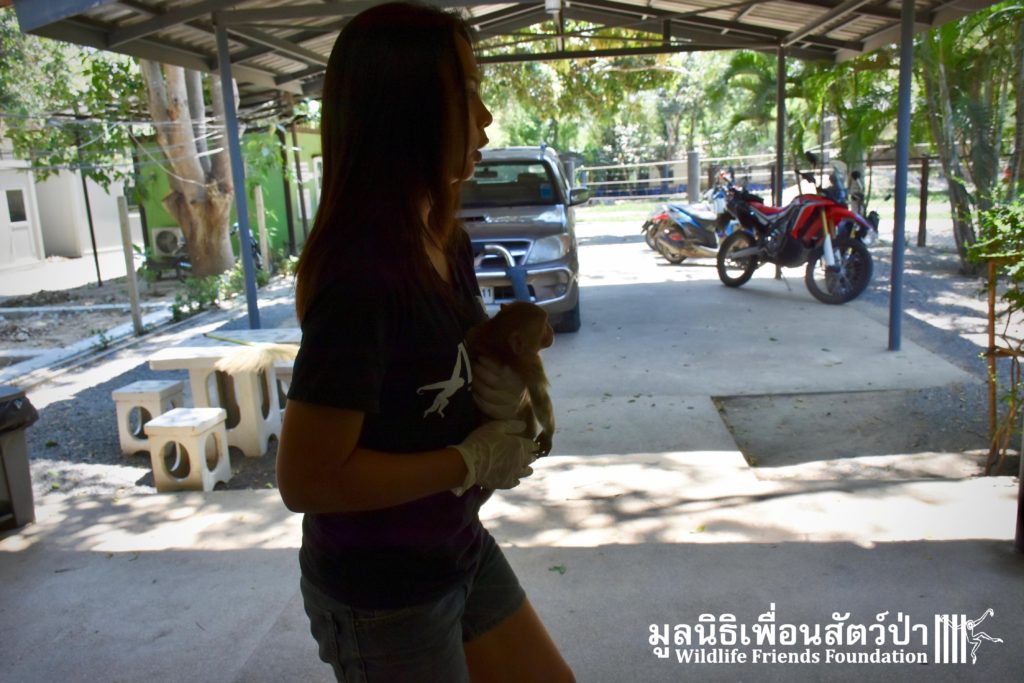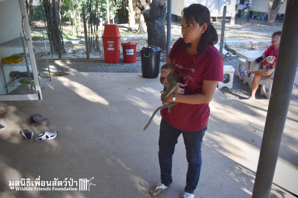 Meet ‘Ground’ the 8-month-old juvenile long-tailed macaque (Macaca fascicularis). She was brought to us from Chonburi by a lady who was keeping her as a pet and was concerned about legal issues with a wild animal. We have received an endless amount of reports of animals in need since the case of Mali the macaque last week. She was initially kept by a lady who kept her as pet in her apartment. Grounds mother was killed after being hit by a car. Unable to keep her anymore, at two months old Ground was handed over to a friend who then brought her to the WFFT Wildlife Rescue Centre.