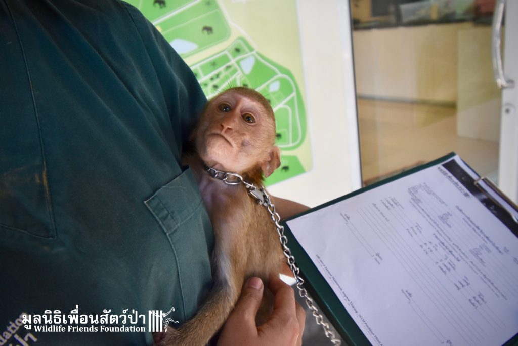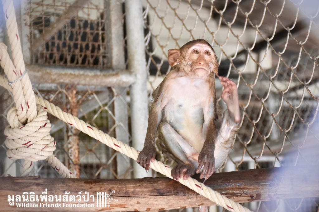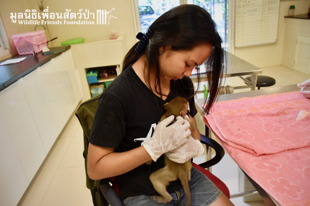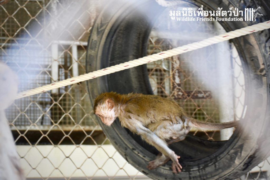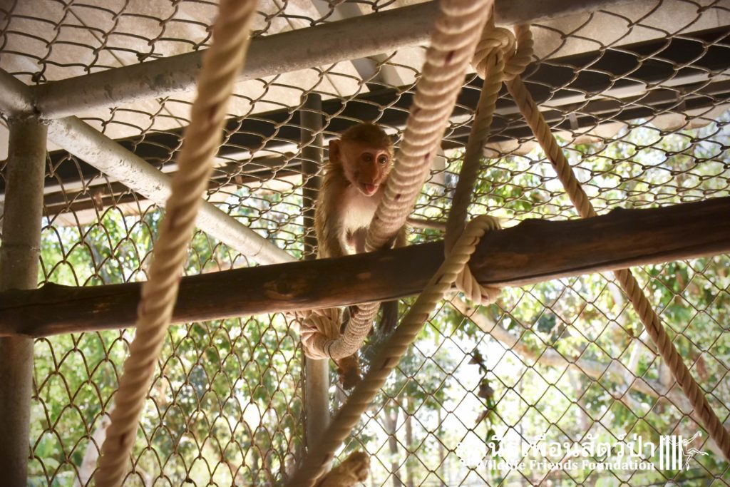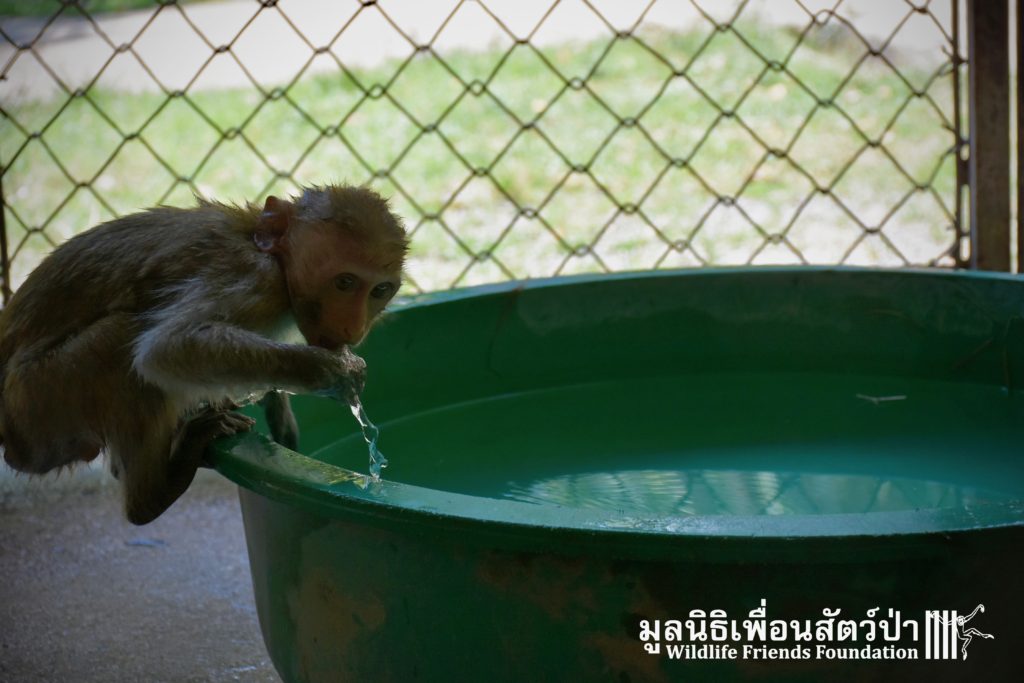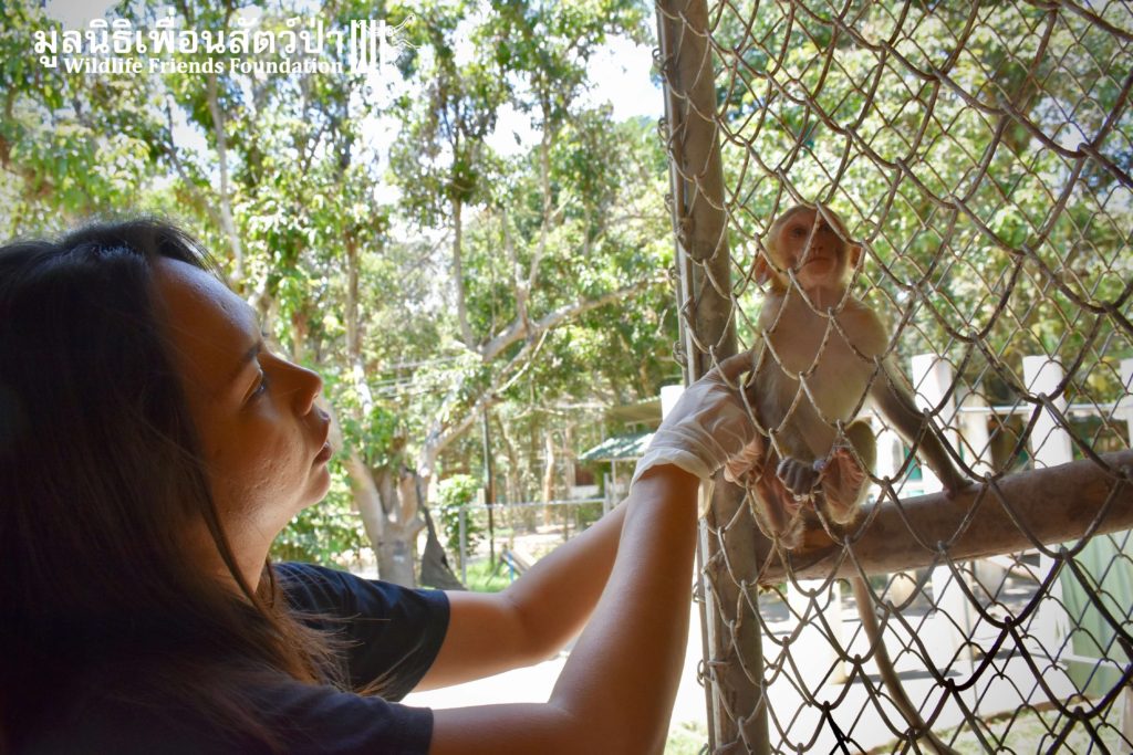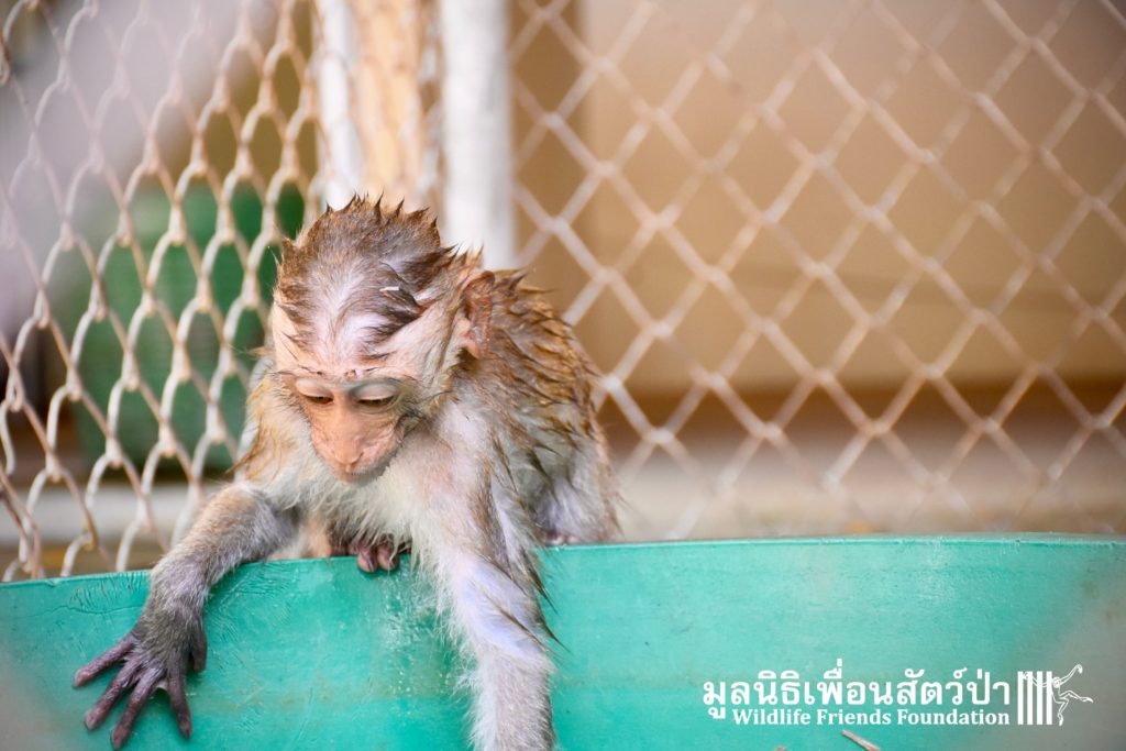 Meet ‘Ground’ the 8-month-old juvenile long-tailed macaque (Macaca fascicularis). She was brought to us from Chonburi by a lady who was keeping her as a pet and was concerned about legal issues with a wild animal. We have received an endless amount of reports of animals in need since the case of Mali the macaque last week. She was initially kept by a lady who kept her as pet in her apartment. Grounds mother was killed after being hit by a car. Unable to keep her anymore, at two months old Ground was handed over to a friend who then brought her to the WFFT Wildlife Rescue Centre.
