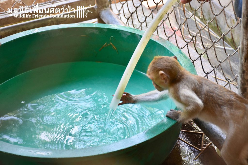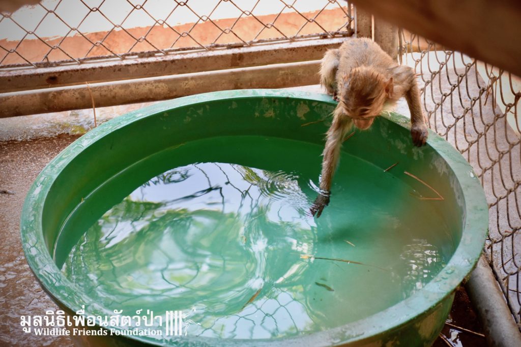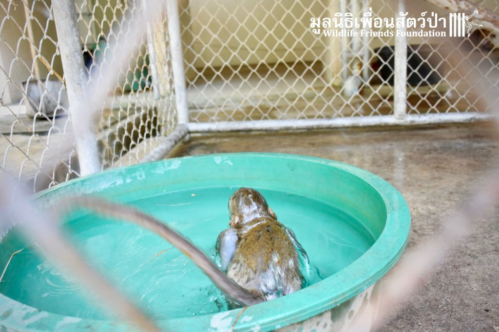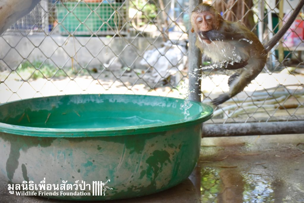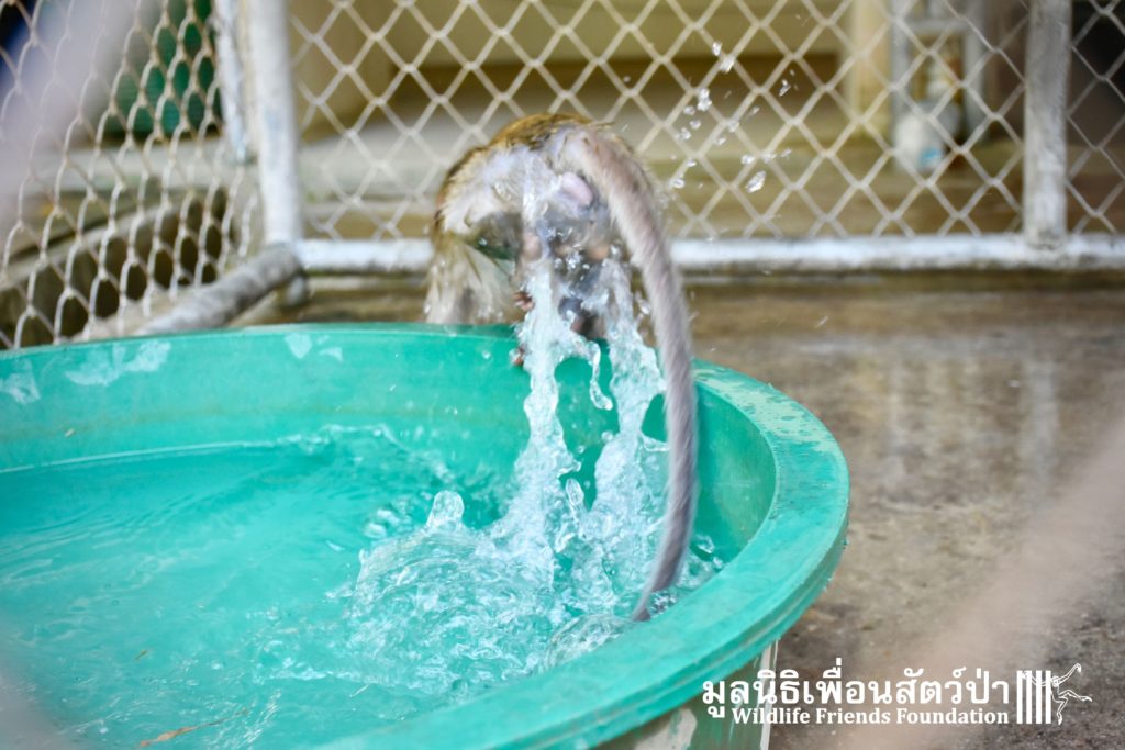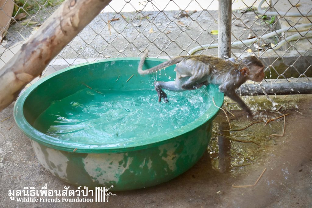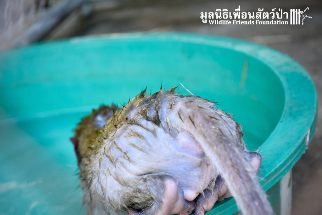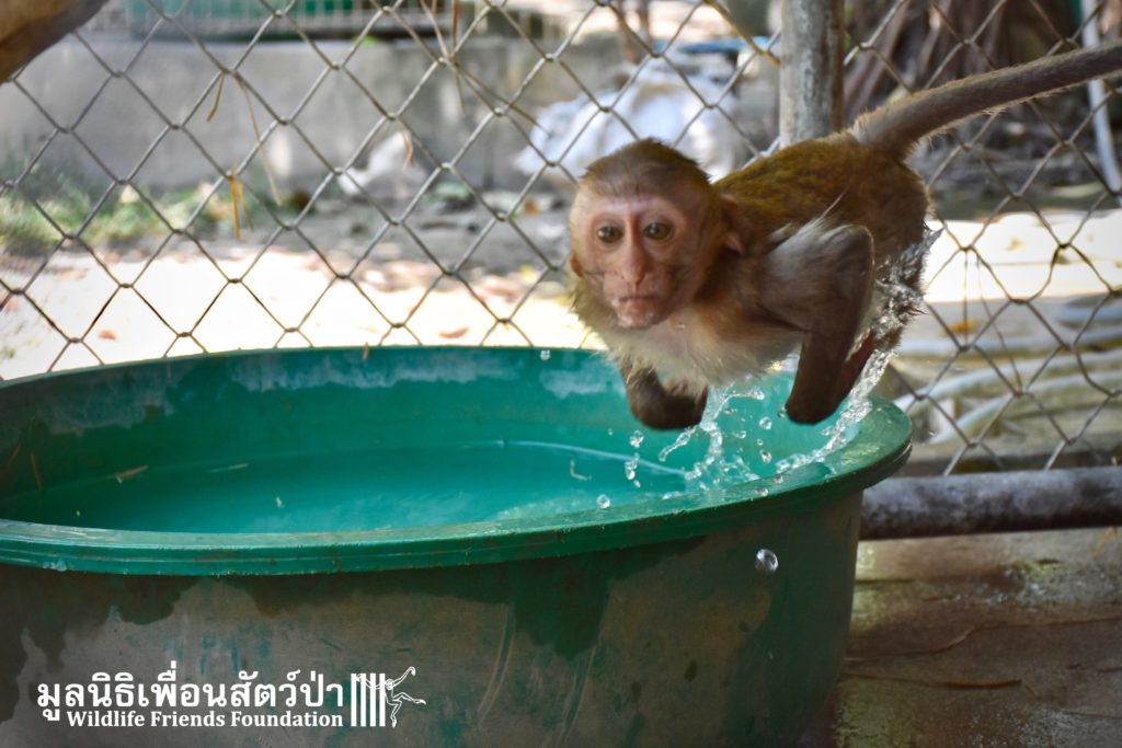 Meet ‘Ground’ the 8-month-old juvenile long-tailed macaque (Macaca fascicularis). She was brought to us from Chonburi by a lady who was keeping her as a pet and was concerned about legal issues with a wild animal. We have received an endless amount of reports of animals in need since the case of Mali the macaque last week. She was initially kept by a lady who kept her as pet in her apartment. Grounds mother was killed after being hit by a car. Unable to keep her anymore, at two months old Ground was handed over to a friend who then brought her to the WFFT Wildlife Rescue Centre.