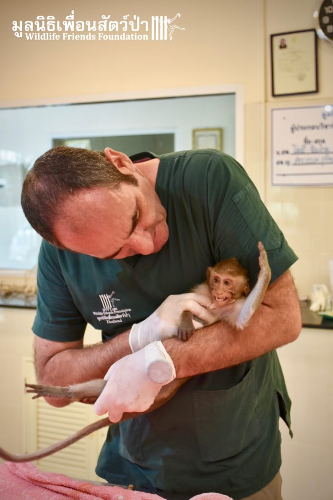 Upon arrival Ground was rather stressed, but after a few days of care and love at the WFFT Wildlife Hospital she is now settling in. Once out of her quarantine period we will start introducing her to other monkey at WFFT. She will once again be able to live within a troop of conspecifics. We will keep you update on her new life at WFFT.