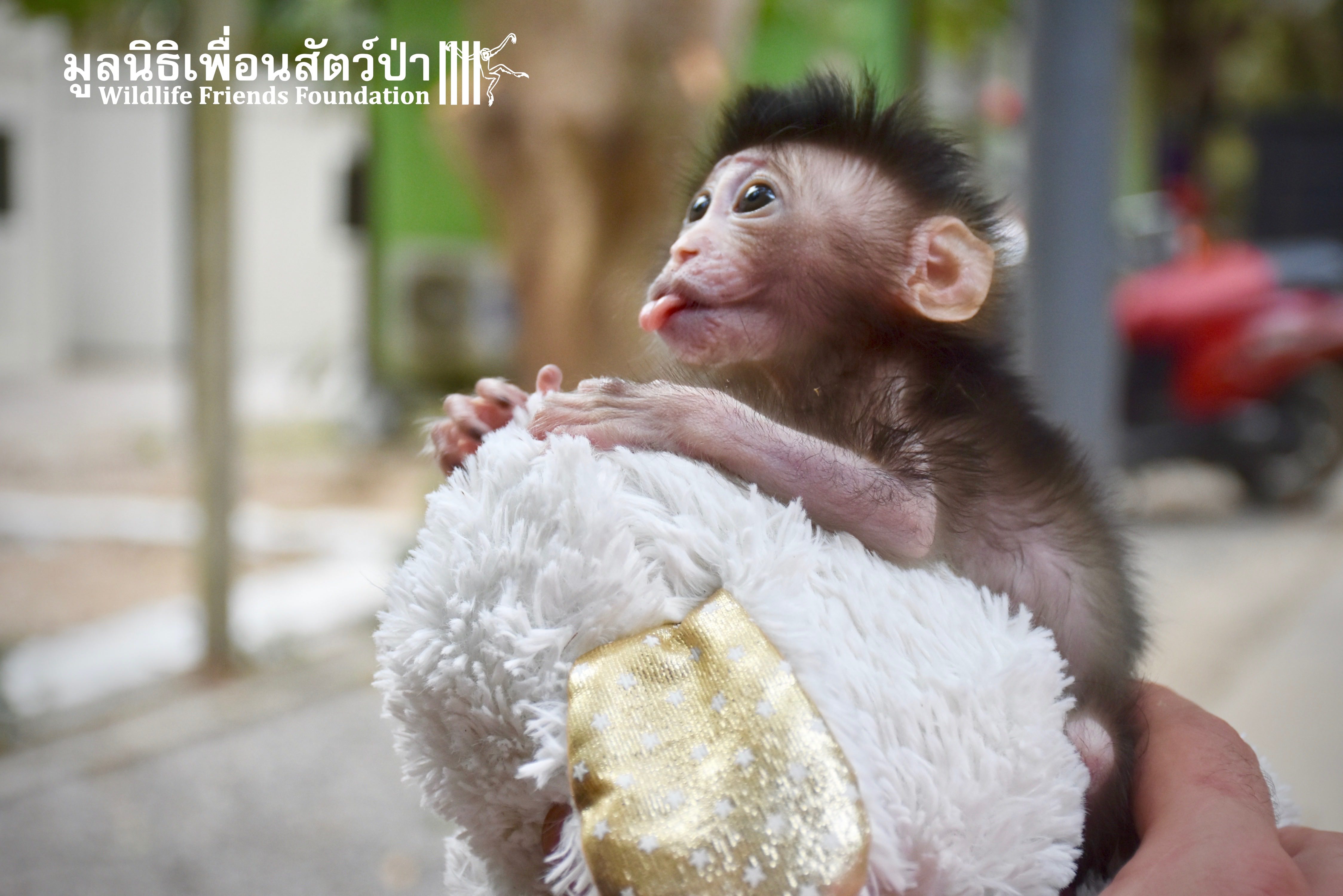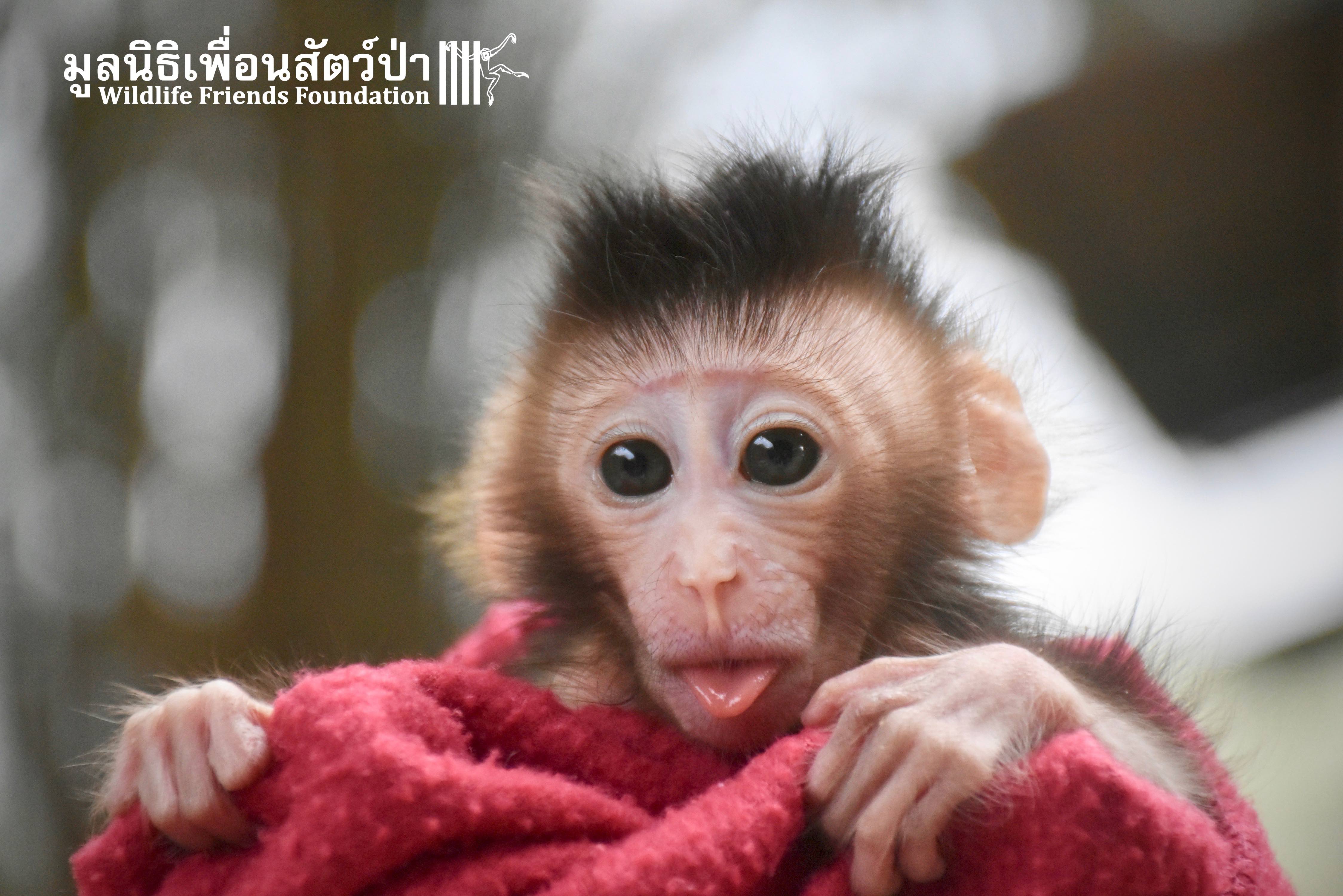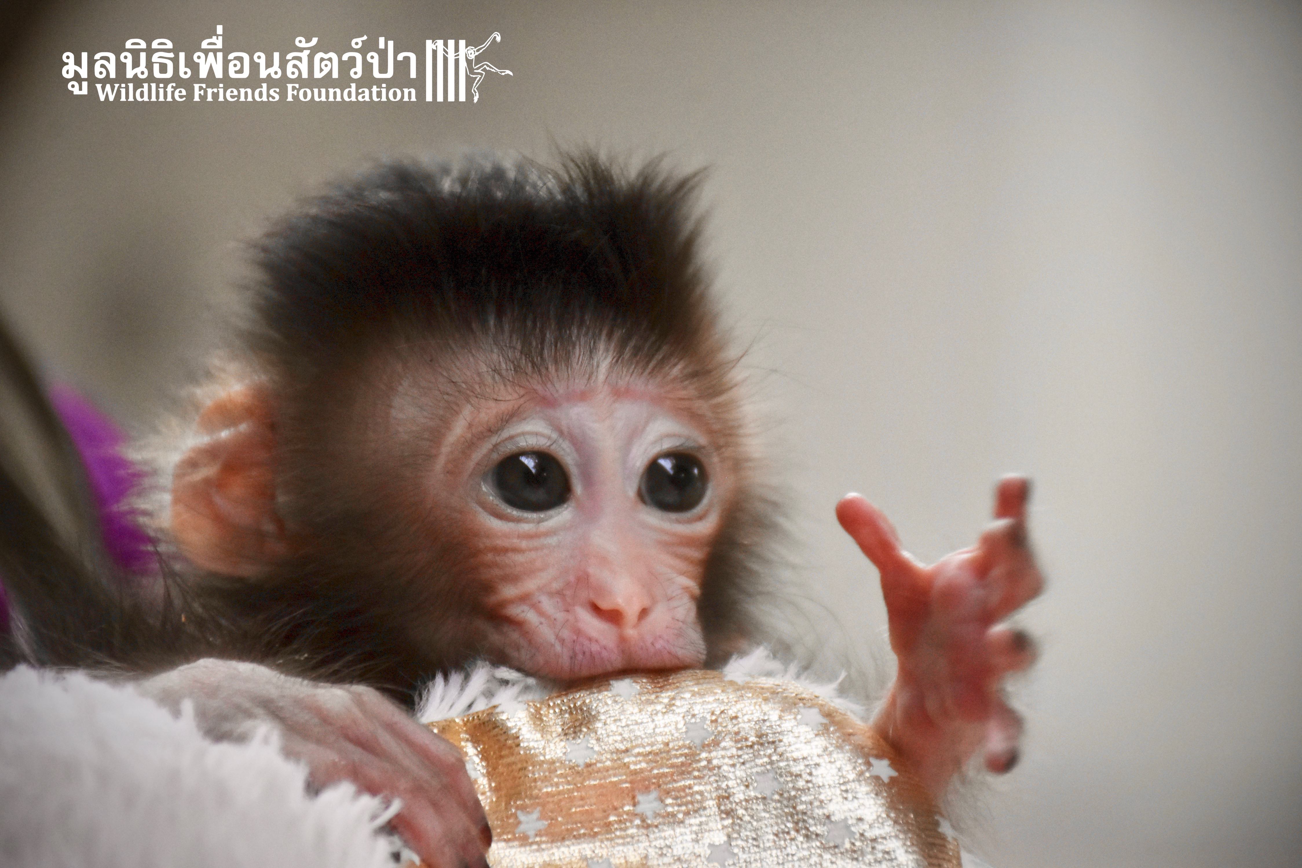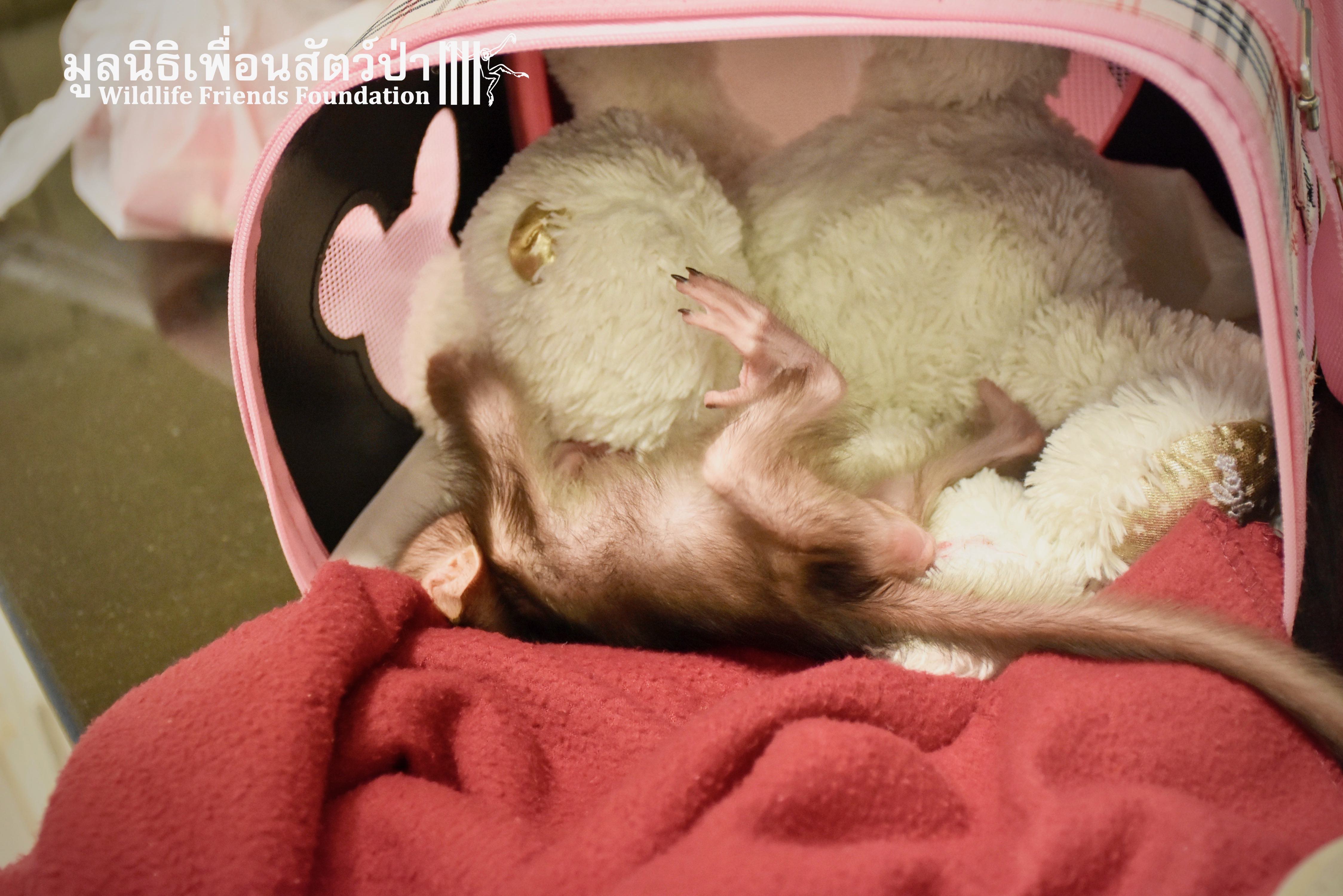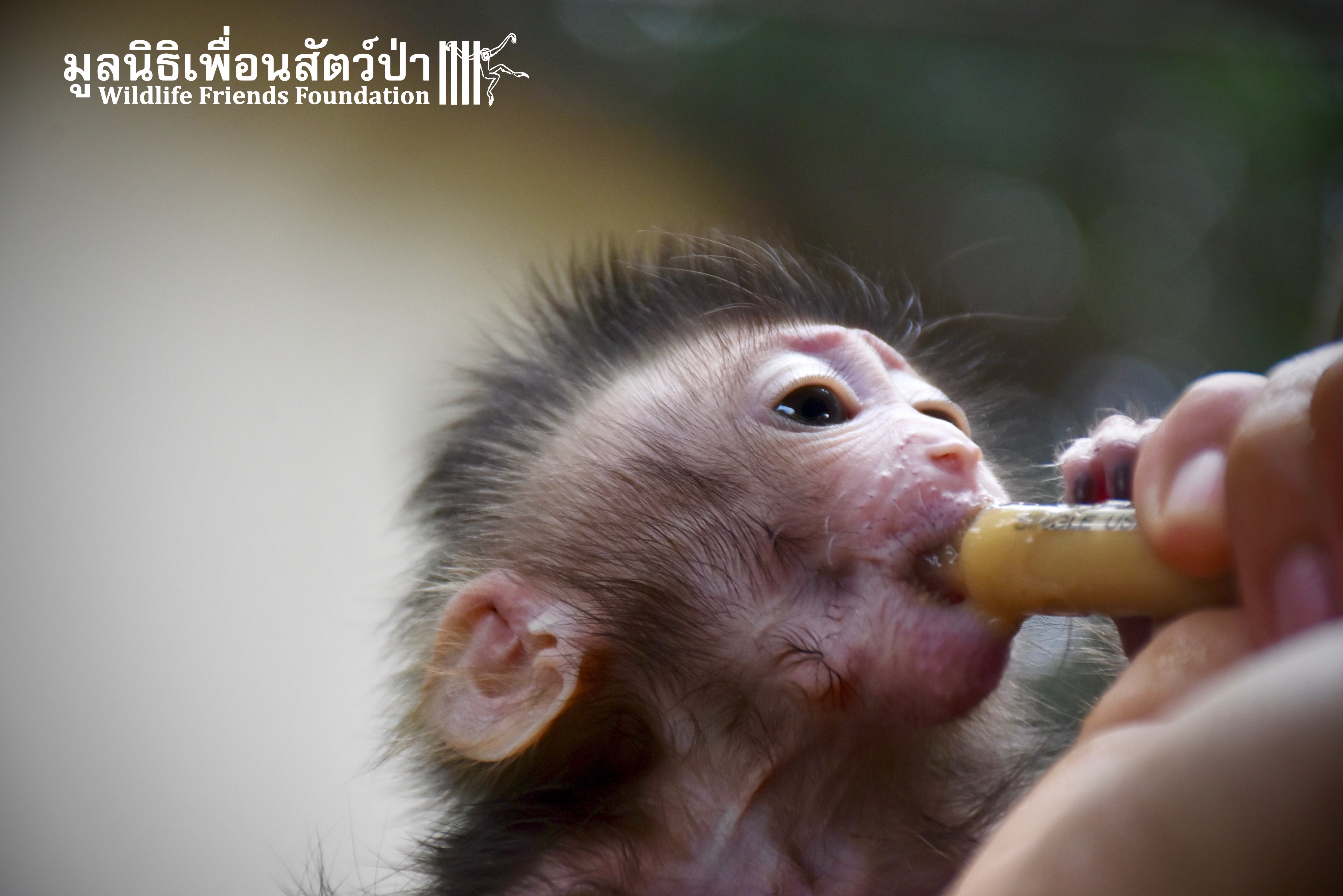 What we can say is… Meet “Pearl”. A sad baby girl, bought on a night market in Pattaya for 9000 Baht. Her owner kept her only 10 days, feeding her with some mashed banana mixture (Pearl would still have been breastfeeding in a normal life), before she decided to have the WFFT Rescue Team come to collect her. But we are happy to announce to you that, now, we are going to offer this sweet and hurt soul a chance for a better life. A chance to have a monkey life. A chance to be correctly loved, with proper care & attention, to meet others like her, and to have, later, when she will be a little older and autonomous, a life with her own species.