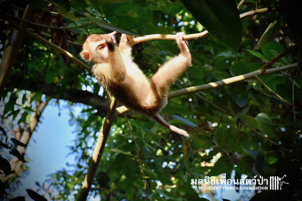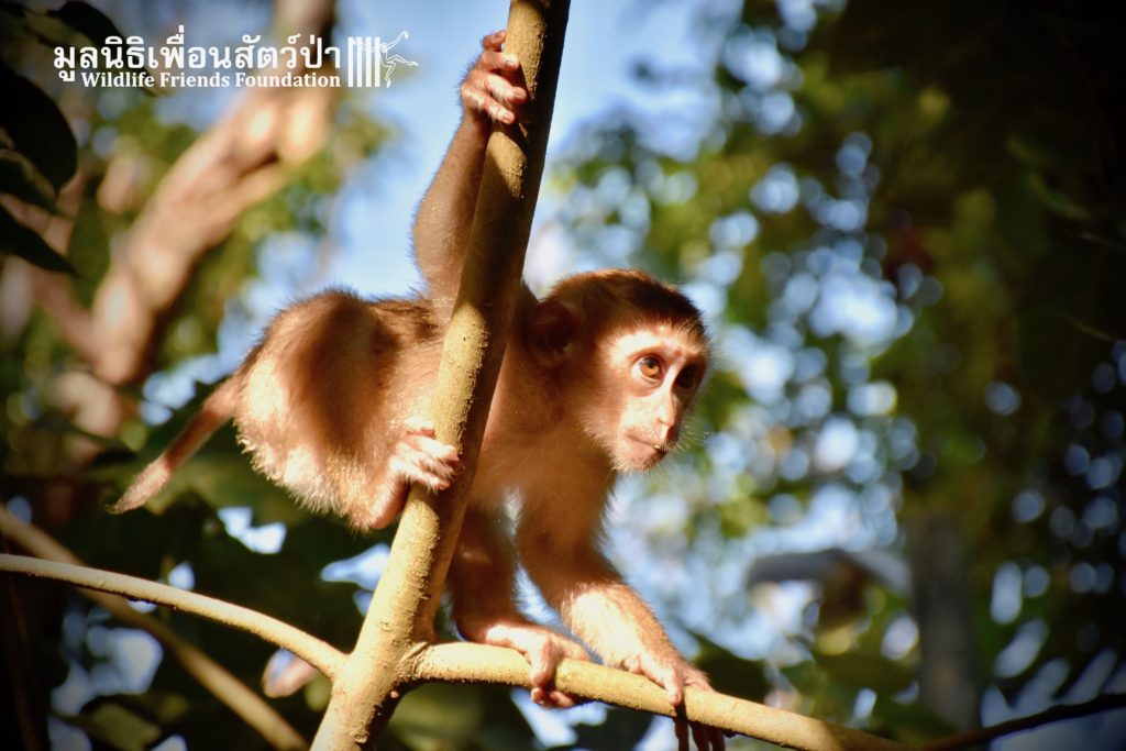 Do you remember little Mongkood..? The infant Northern pig-tailed macaque who arrived at WFFT in March of this year. He is now approximately 16 months old, and in the very near future he will again meet his own species after a period of hand rearing by the WFFT Vet Team. We hope to introduce him to large field with a group of juvenile macaques and their surrogate mothers, Bandit, Mocha and Ta Phet.