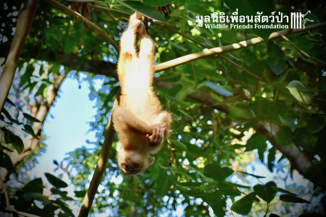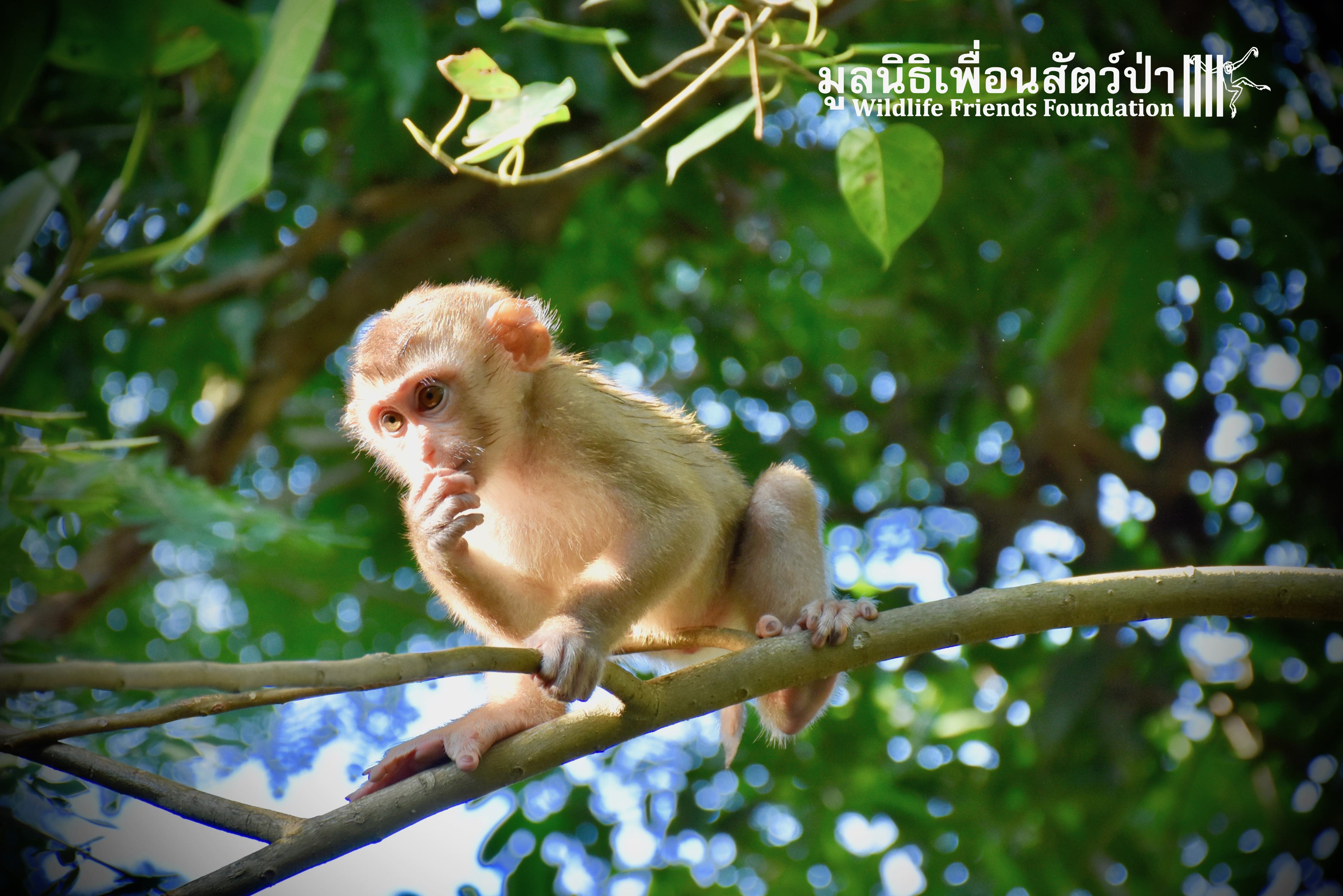Do you remember little Mongkood..? The infant Northern pig-tailed macaque who arrived at WFFT in March of this year. He is now approximately 16 months old, and in the very near future he will again meet his own species after a period of hand rearing by the WFFT Vet Team. We hope to introduce him to large field with a group of juvenile macaques and their surrogate mothers, Bandit, Mocha and Ta Phet.