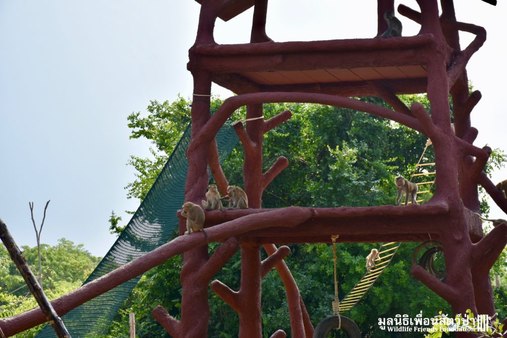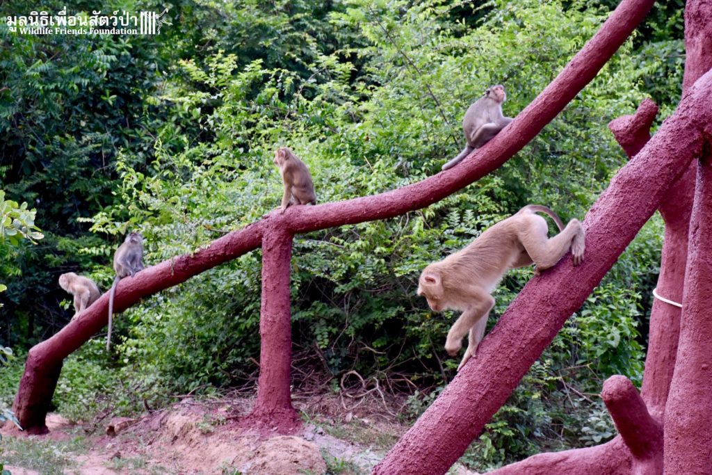 The first side enclosures as part of our new coconut monkey project have been completed, and six rescued macaques have moved in.