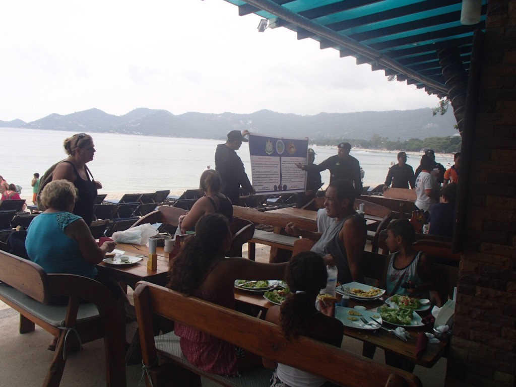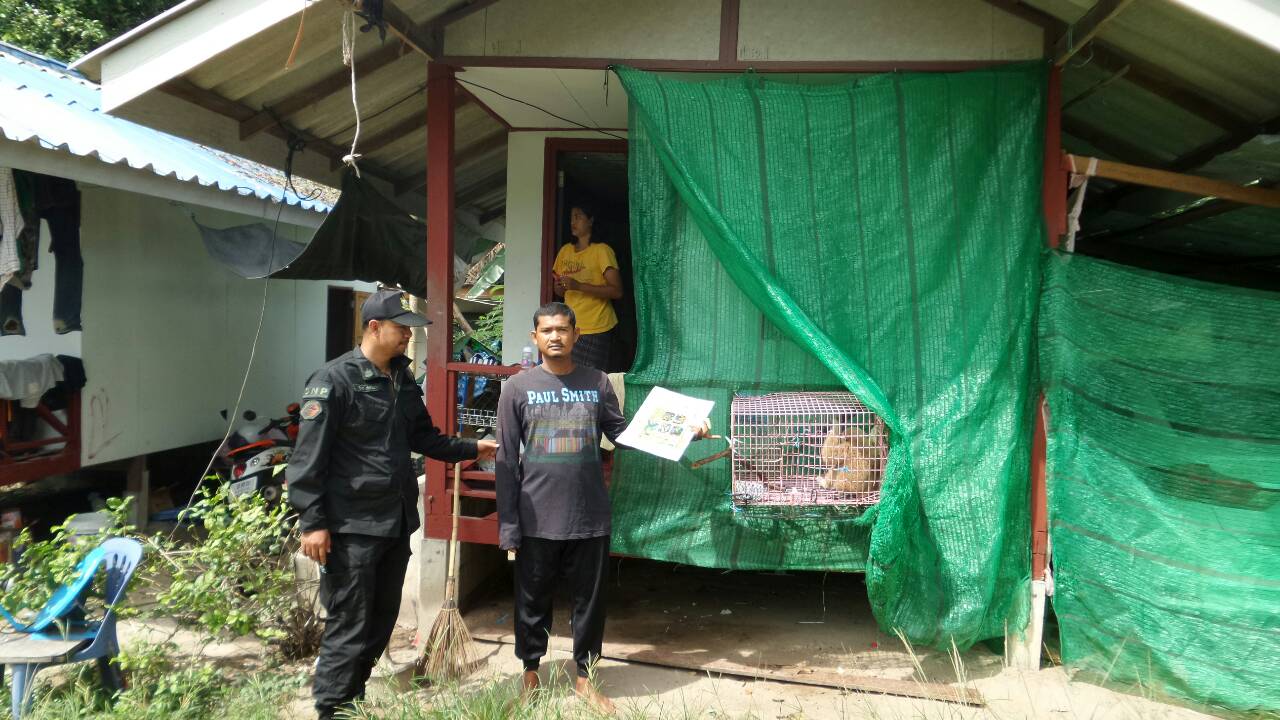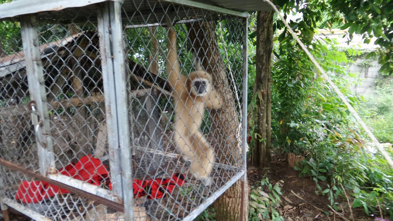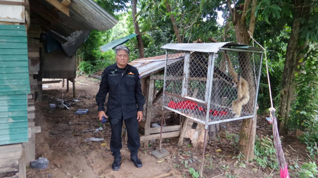 Yesterday, the 14th of October, police and DNP officials raided several houses on Koh Samui Island after WFFT made again a detailed complaint about the use of illegally obtained gibbons in tourism. The gibbons were used day and night as photo-props on the beaches and inside the cities on the island. After investigators followed the men with gibbons back tot heir homes at night, several locations were found where the gibbon babies were kept during the non-working hours.