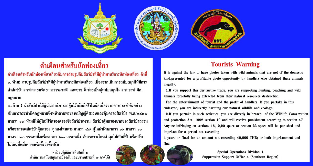 WFFT will continue to pressure authorities to enforce the law on wildlife trade and exploitation. Besides Koh Samui we also will force action on Phuket, Krabi, Phi Phi and Pattaya. Thank you director-general Niphon Chotibal for taking our complaint serious and acting accordingly.