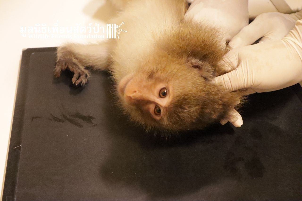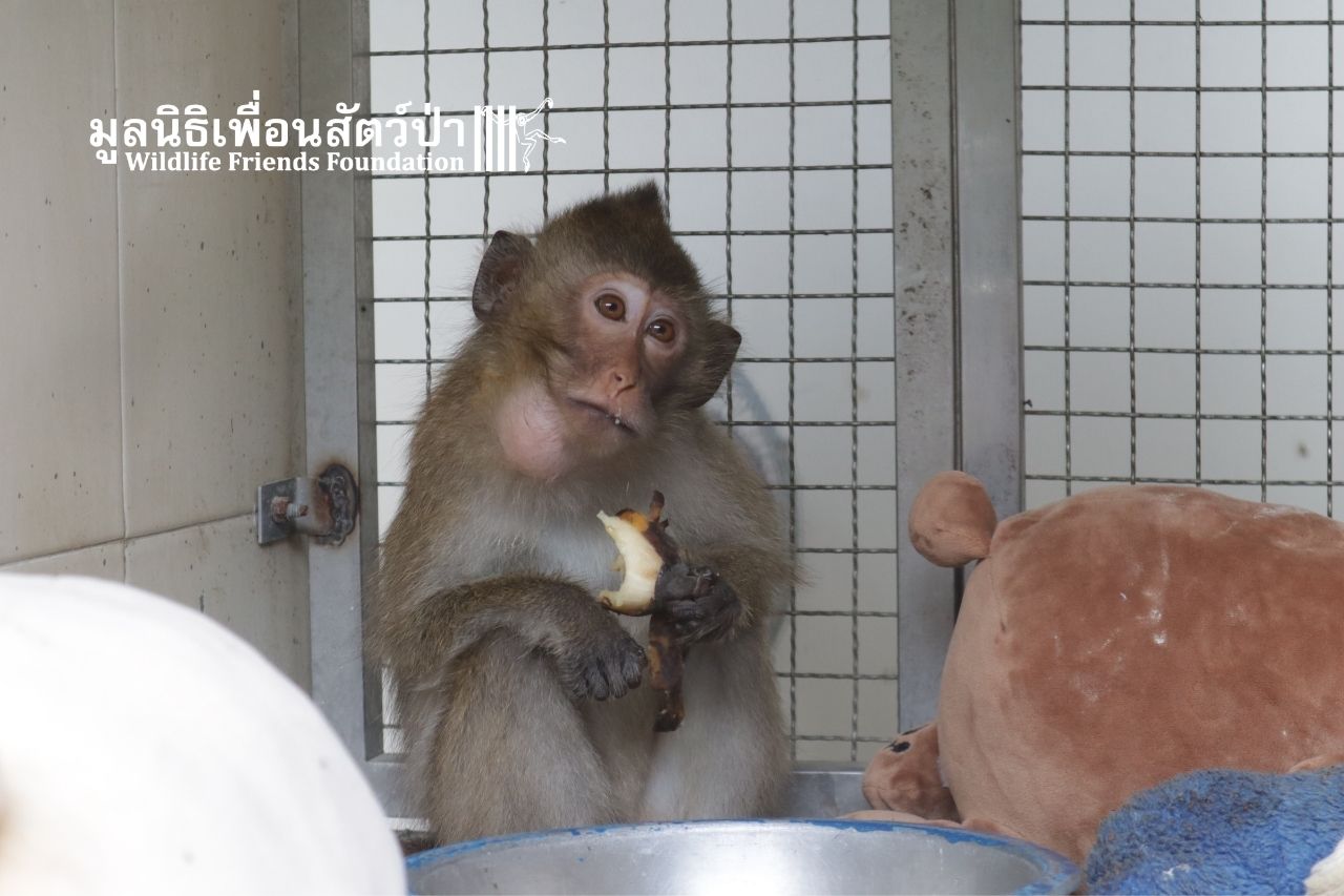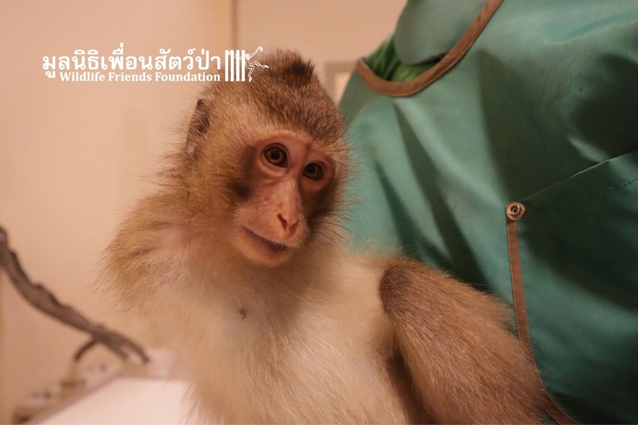 ภาษาไทยด้านล่าง A shocking act of cruelty has left an innocent macaque brain-damaged and dependent on WFFT for life.
