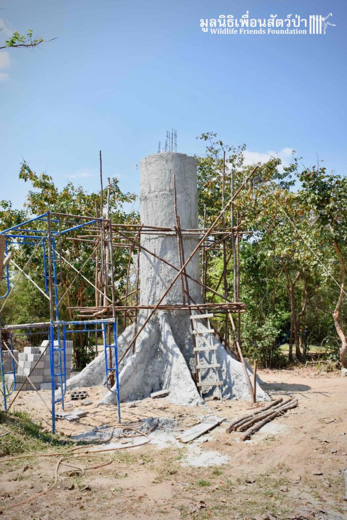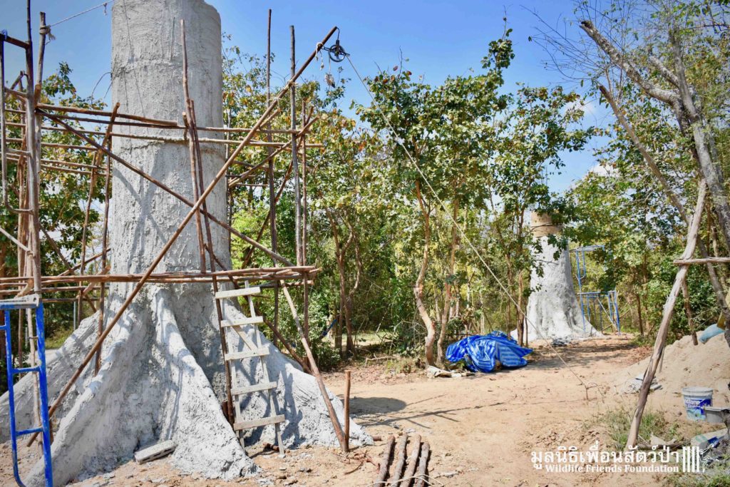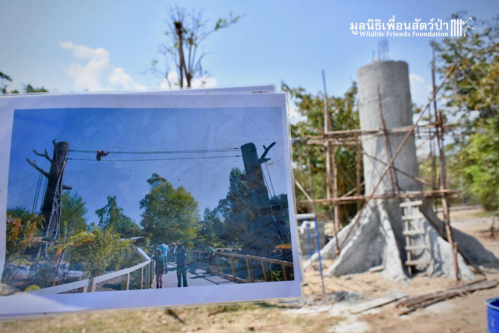 Once complete the enclosure will be made up of huge artificial trees with ropes connecting them to real trees within the forested area. The enclosure will provide enough natural forest for them to forage for food and build nests.