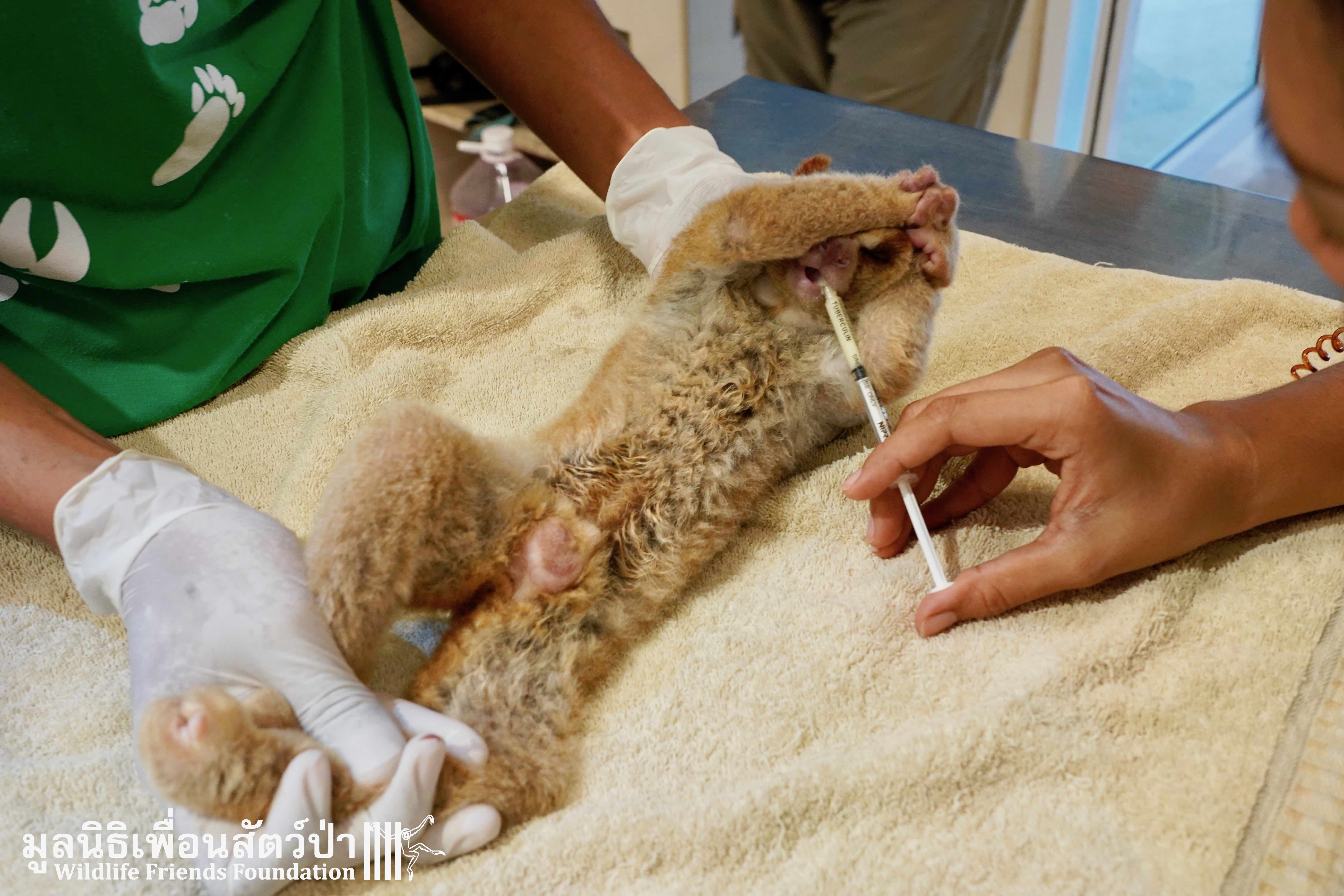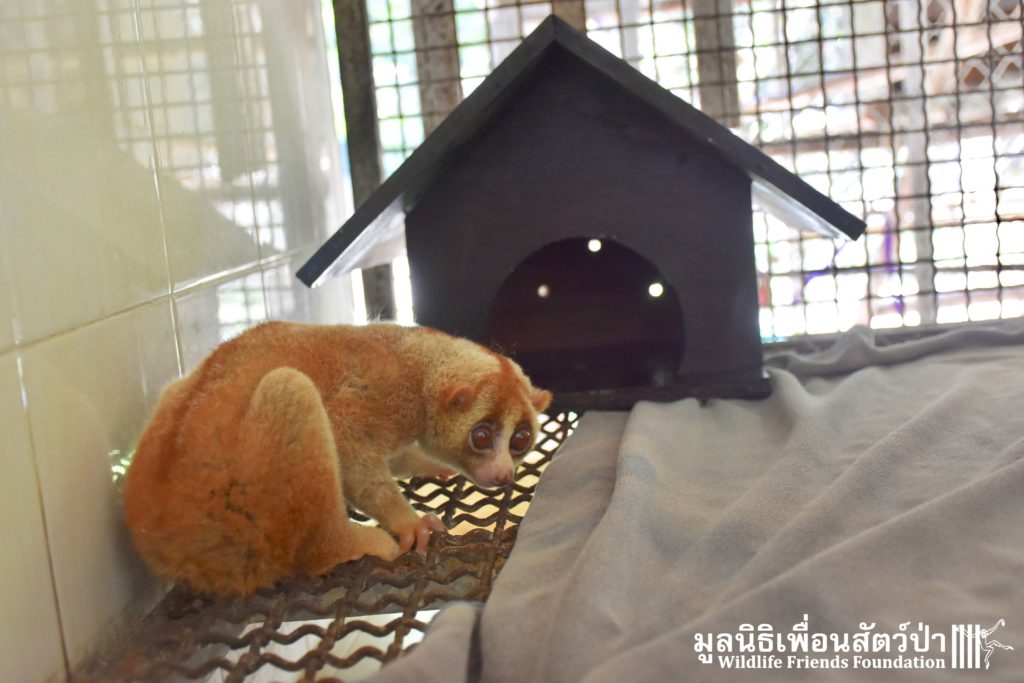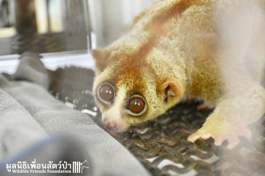Earlier this week, a male Sunda Slow Loris was brought to the WFFT Wildlife Hospital. The owner of the poor little animal didn’t find him cute enough anymore so decided to get rid of him and abandoned him at a vet clinic. One veterinarian there was aware of the work we are doing at the WFFT Centre and came with the scared critter knowing our staff would take good care of him.