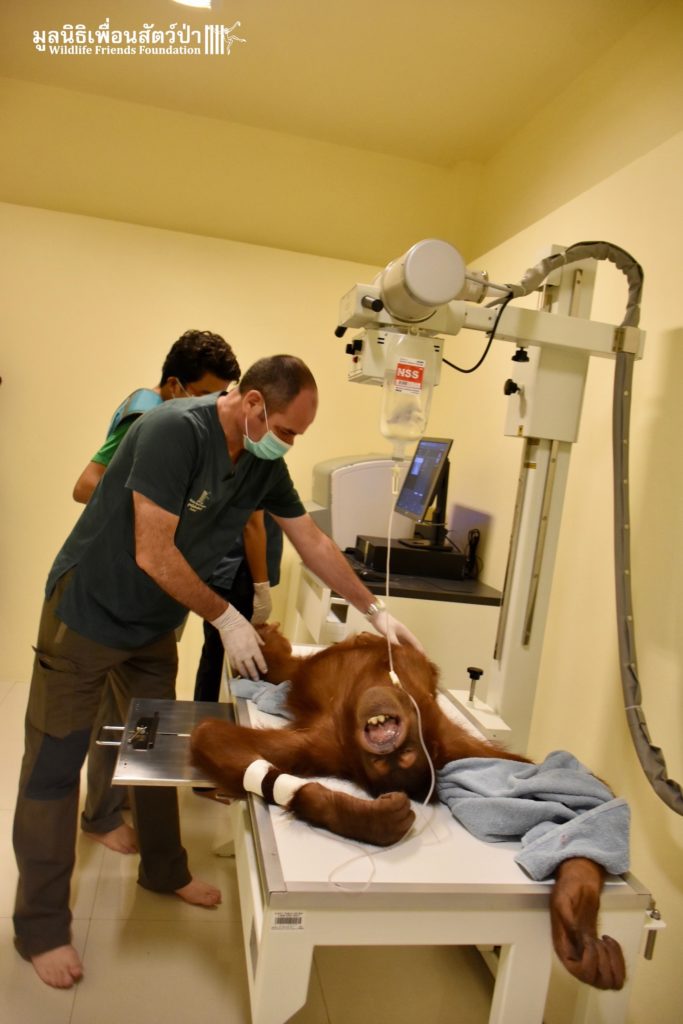 WFFT’s resident great apes, Maggie and Chico the critically endangered orangutans, are now much closer to their wonderful new home. We have moved them from their old night enclosure to a new side enclosure connected to the new huge open forest area we have created for them. During the move they made a pit stop at the WFFT Wildlife Hospital so a full health check could be performed, including a full body x-ray which was performed for the first time. This whole operation would have not been possible without the kindness and support of Mr. Mike Beets, so thank you Mike!!! And a great big thank you to the International Primate Protection League. All the team at WFFT are waiting in excitement to see these very special apes out exploring very soon. Watch this space over the coming days for an update about their first exploration expedition around their new home.