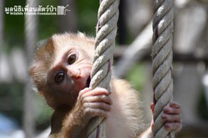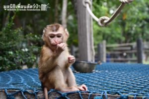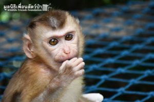 We want to introduce you to ‘Baibua’ an infant female Northern pig-tailed macaque who arrived at the WFFT Wildlife Rescue Centre a few days ago. Five months ago, Baibua was living with her mother on Ko Chang island. One day her mother was hit by a car and killed while Baibua was clinging on to her, luckily a family found and have been taking care of her ever since.