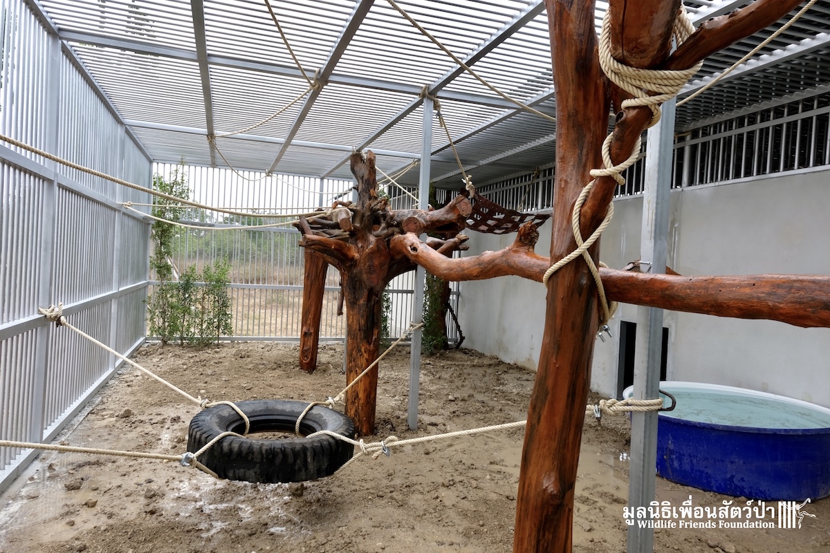 The first side enclosures as part of our new coconut monkey project have been completed, and six rescued macaques have moved in.