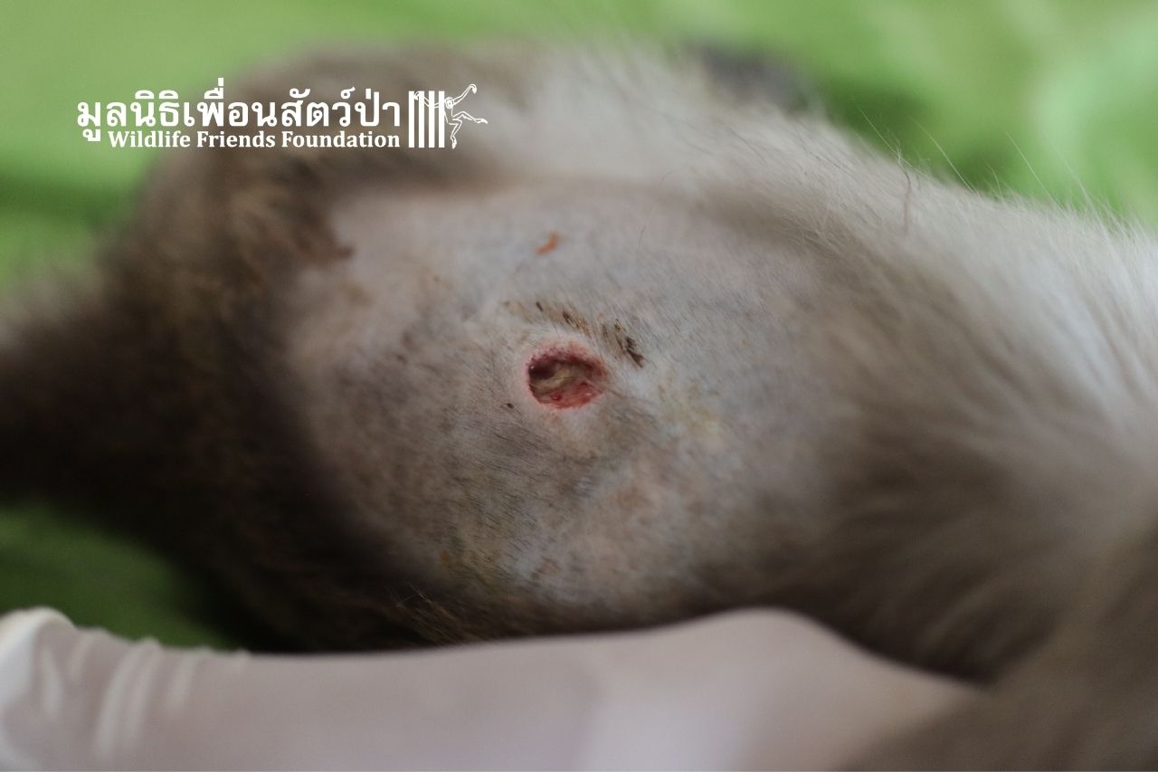 เมื่อไม่กี่วันที่ผ่านมา เราได้รับช่วยเหลือลิงท้องแก่ตัวหนึ่ง ลิงตัวนี้มาถึงที่มูลนิธิฯ พร้อมกับกระสุนที่ฝังอยู่บริเวณสันหลังน้องท้องและถูกยิง! ทีมแพทย์ได้ทำการผ่าเอากระสุนออก และเพราะน้องใกล้คลอดเต็มที แพทย์จึงต้องคอยดูแลอย่างใกล้ชิด เพื่อคอยดูว่าลิงตัวนี้จะสามารถคลอดลูกได้ด้วยตัวเองหรือไม่ และยังไม่รู้ได้ว่าน้องจะสามารถรักษาบาดแผลกระสุนได้มากน้อยแค่ไหน เราตั้งชื่อ ว่าที่คุณแม่ลิงตัวนี้ว่า “น้ำฝน ” ไม่ควรมีสัตว์ตัวไหนโดนกระทำโดยปราศจากความเมตตาเช่นนี้เลย และเราเองจะทำหน้าที่ของเราให้ดีที่สุดเพื่อรักษาชีวิตของน้องและลูก หากท่านต้องการช่วยเหลือน้ำฝนกับลูก ท่านสามารถร่วมบริจาคเพื่อน้ำฝนได้ที่