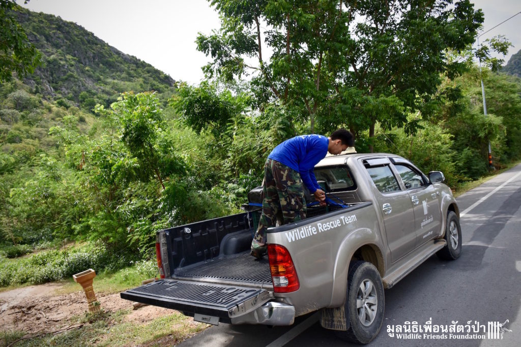 A few days ago we received a call from some concerned monks about an adult long-tailed macaque that had taken up residence at a temple close to the WFFT Wildlife Rescue Centre. The macaque in question had moved far away from any other known population of macaques so the WFFT Wildlife Rescue Team headed out to relocate this monkey. Luckily we were able to capture him without any problems. He was brought back to the WFFT Wildlife Hospital for a check up and to be de-sexed.