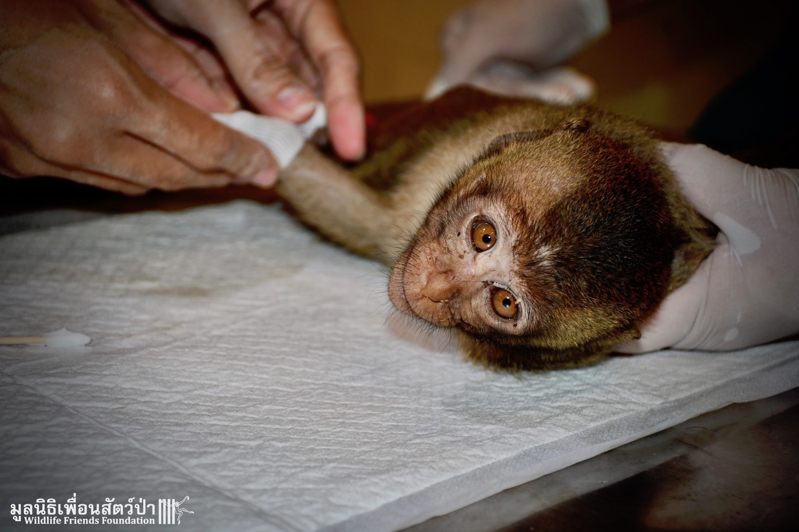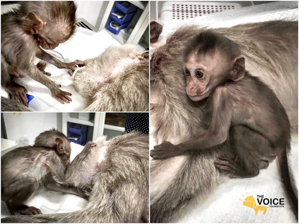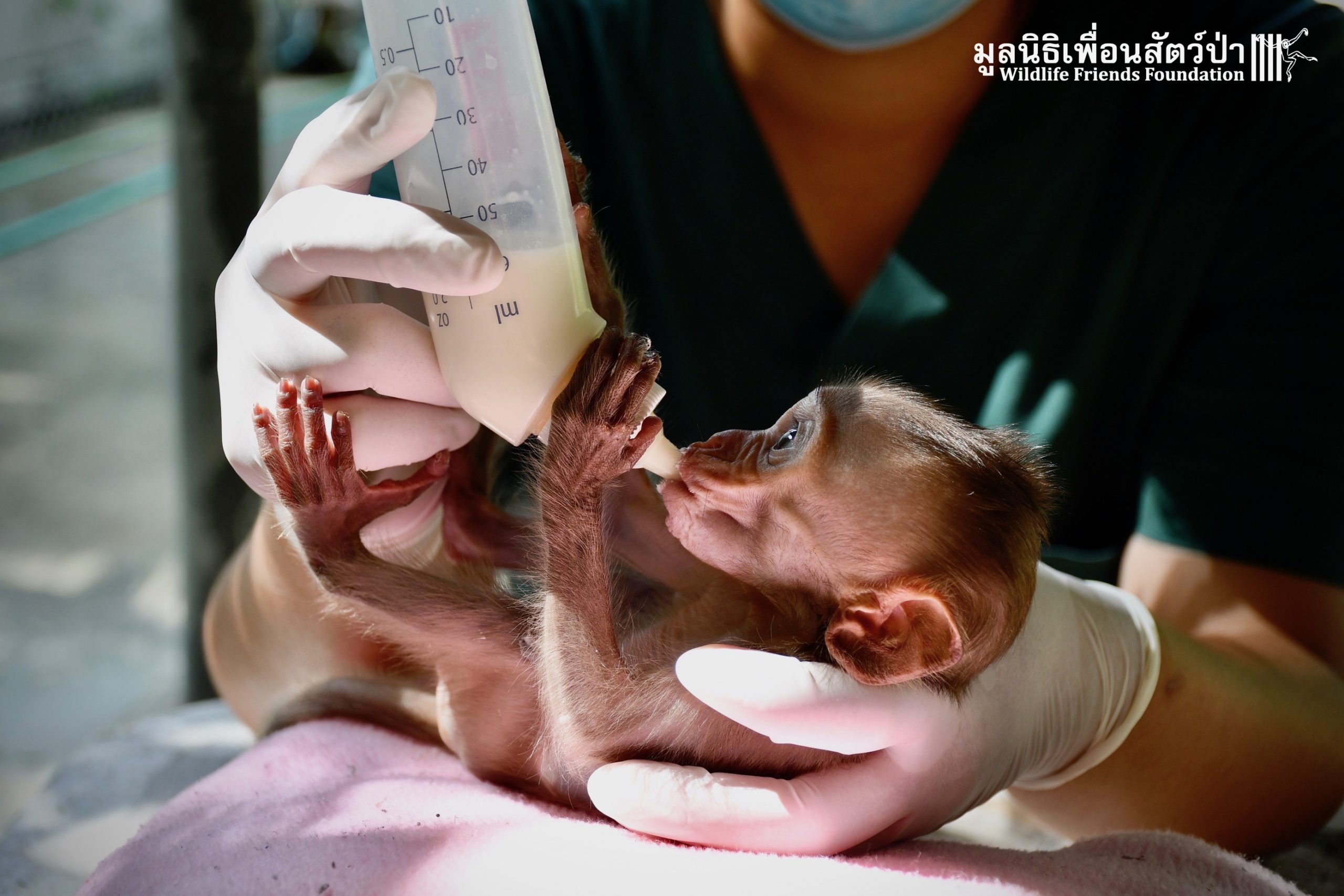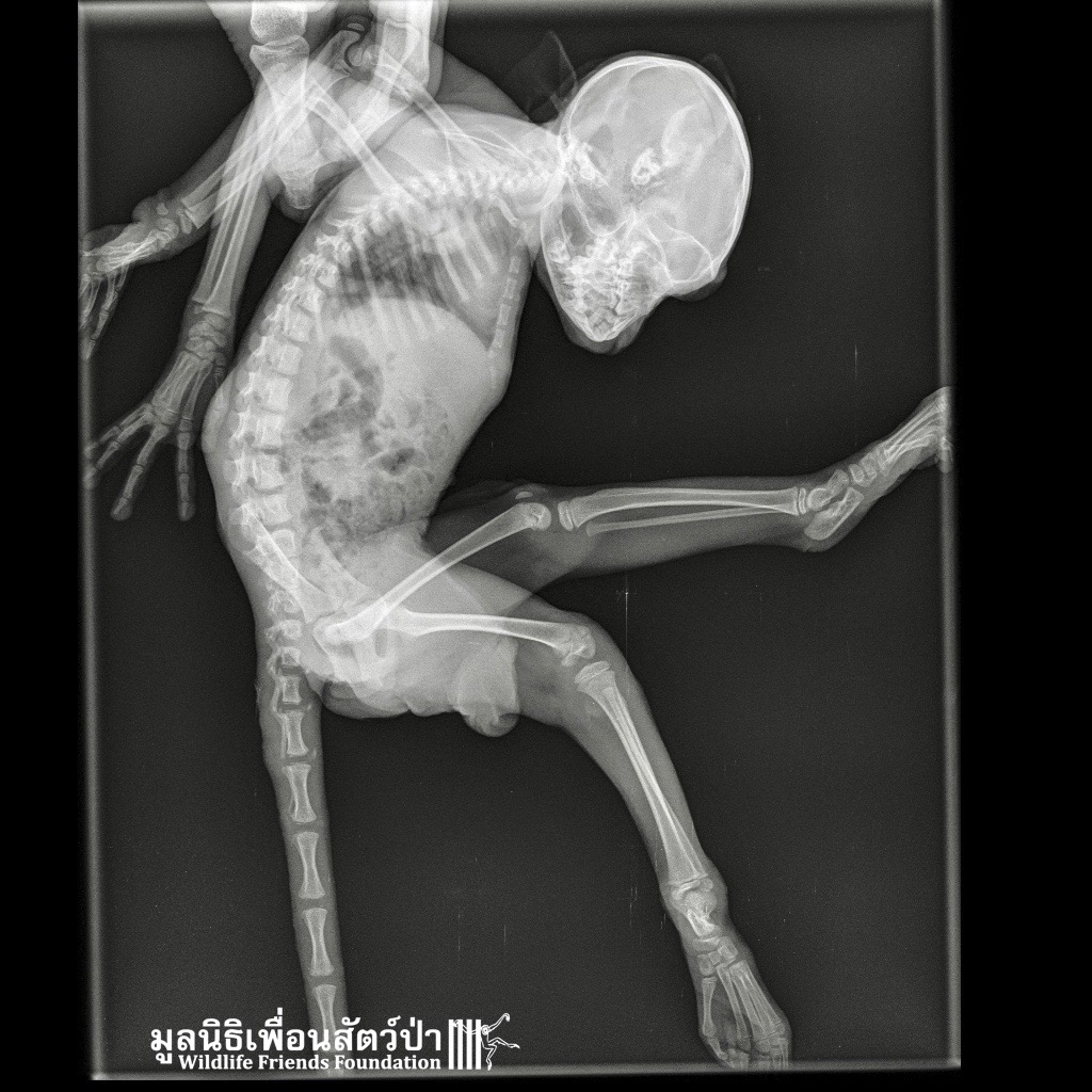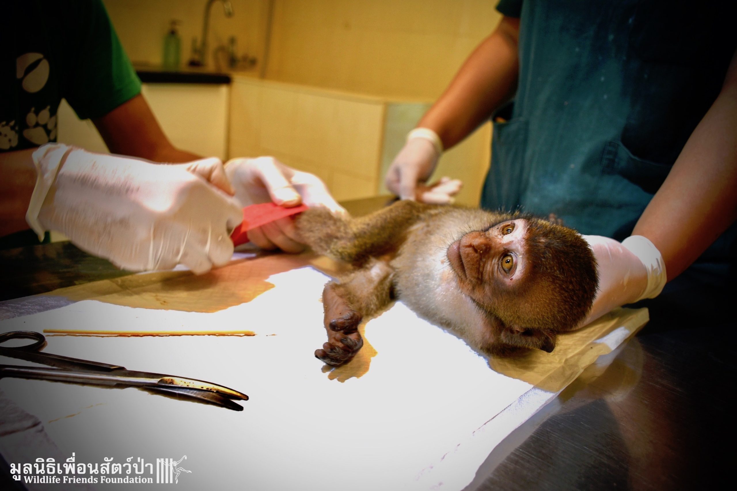 The first was ‘Im Un’ who was rescued from Uthai Thani by Khun Kae Chollada and the team from The Voice Foundation. Khun Kae had rescued Im Um and his mother a few days ago, they had been hit by a car and badly injured. Sadly his mother passed away leaving him orphaned. We were asked to help take care of him, as our team are experts in caring for infant macaques. Thank to Khun Kae for saving this little one.