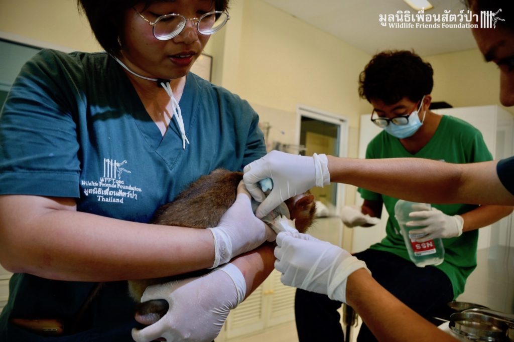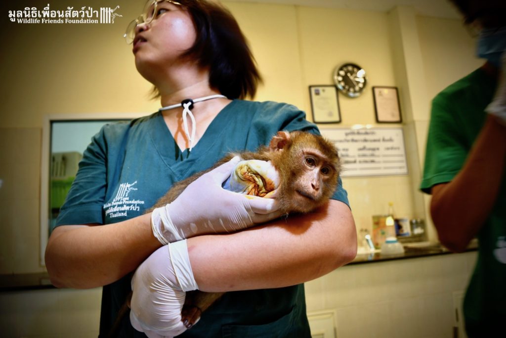 หลังจากที่ได้รับการตรวจร่างกายเบื้องต้นแล้ว พบว่ามีการบาดเจ็บที่แขนบริเวณที่ถูกมัด และติดเชื้ออย่างรุนแรง ทีมสัตว์แพทย์ของมูลนิธิฯ จึงจำเป็นต้องตัดแขนออกเพื่อทำการรักษา หลังได้รับการผ่าตัดเค้าก็มีอาการดีขึ้น ตอบสนองการรักษาได้อย่างน่าประหลาดใจ เราหวังว่า “บุญรอด” จะสามารถฟื้นฟูร่างกาย และกลับมามีชีวิตชีวาอีกครั้ง เป็นหนึ่งในสมาชิกของฝูงลิง ภายในมูลนิธิฯต่อไป และแน่นอนว่าเราจะมาบอกเล่าเรื่องราวของ “บุญรอด” ให้ติดตามกันต่อไป