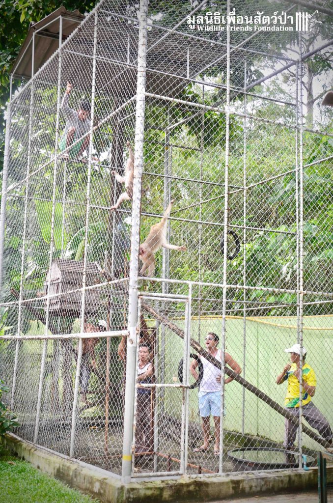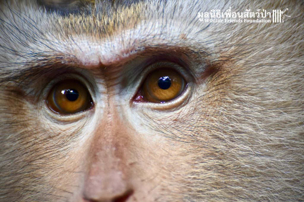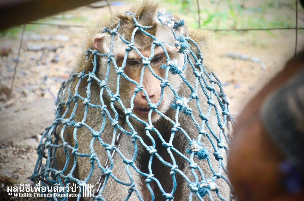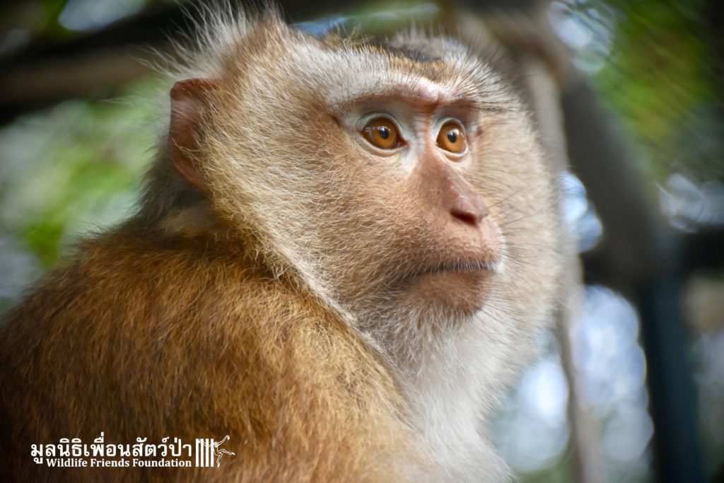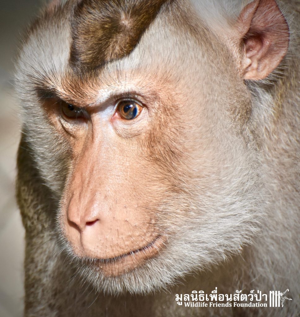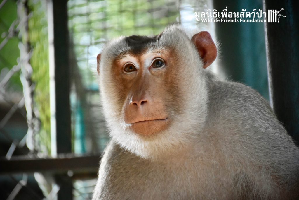 Last week the WFFT Wildlife Rescue Team headed out on a long rescue mission to Koh Samui, an island in Southern Thailand. The animals in need of rescue were 3 adult Northern pig-tailed macaques (Macaca leonina), 1 male and 2 females. The male named Khai, was being used as a coconut monkey and had escaped. He was then captured and chained up, he then spent the next 4 years on this chain until we were made aware of his plight. The 2 females, Maya and Nina, had been ‘rescued’ by a concerned ex-pat in 2010 after being found as very young in infants for sale at the side of a road. They then spent the next 7 years being cared for by these people in an enclosure in their garden. The people caring for them had to leave Thailand so called us to help.