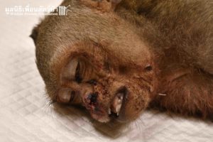 กลางดึกวันอังคารที่ผ่านมาทีมกู้ภัยมูลนิธิเพื่อนสัตว์ป่าได้รับเเจ้งมาว่า มีลูงลิงเเสม(Long-tailed macaque)ถูกรถชนบาดเจ็บสาหัสนอนหมดสติอยู่บนถนนต้องการความช่วยเหลืออย่างเร่งด่วน