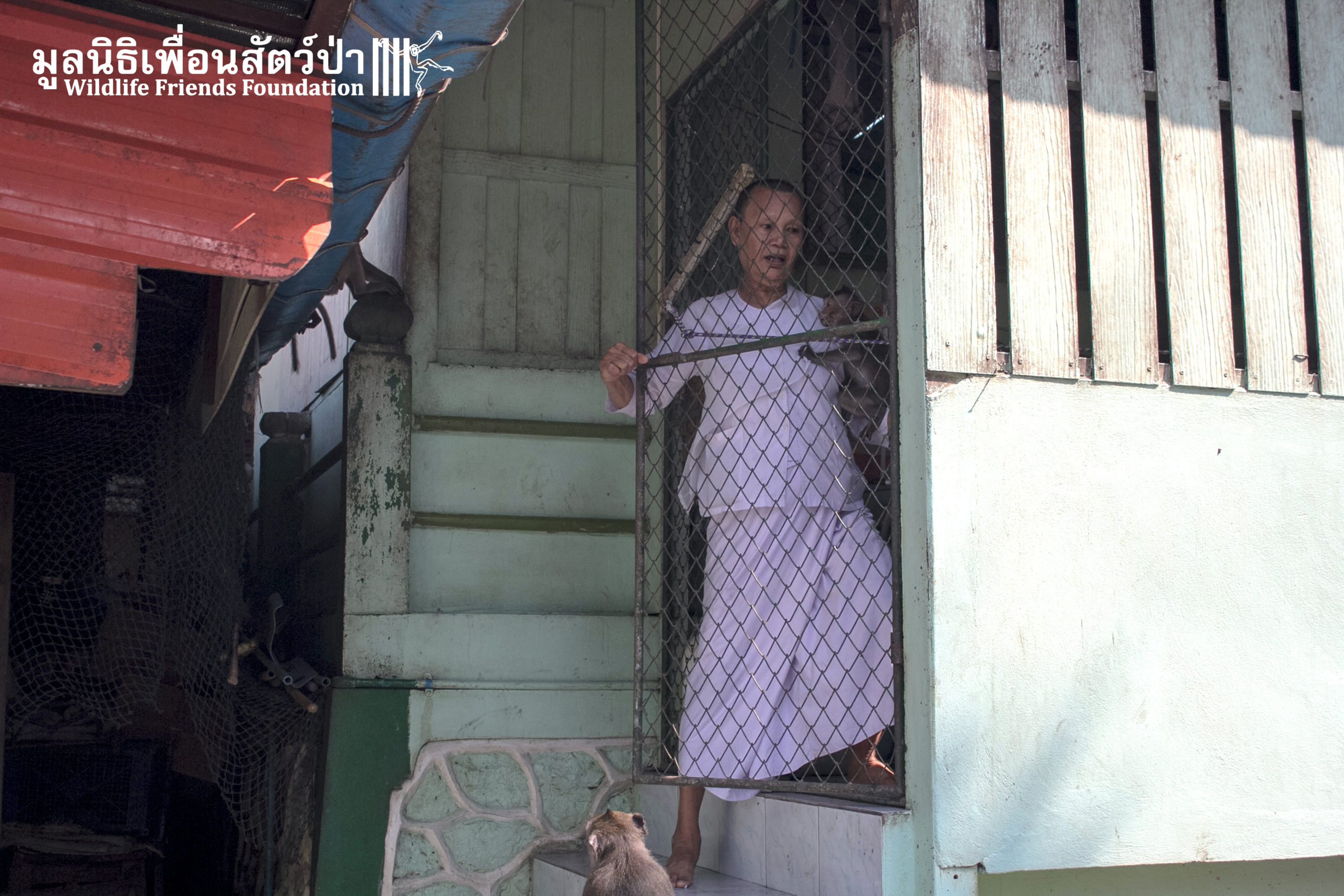 The concerned citizen then brought Pong-pang to a nun at Khaotakrao temple because here there are many troops of monkeys. This nun has introduced many monkeys to the troop before.