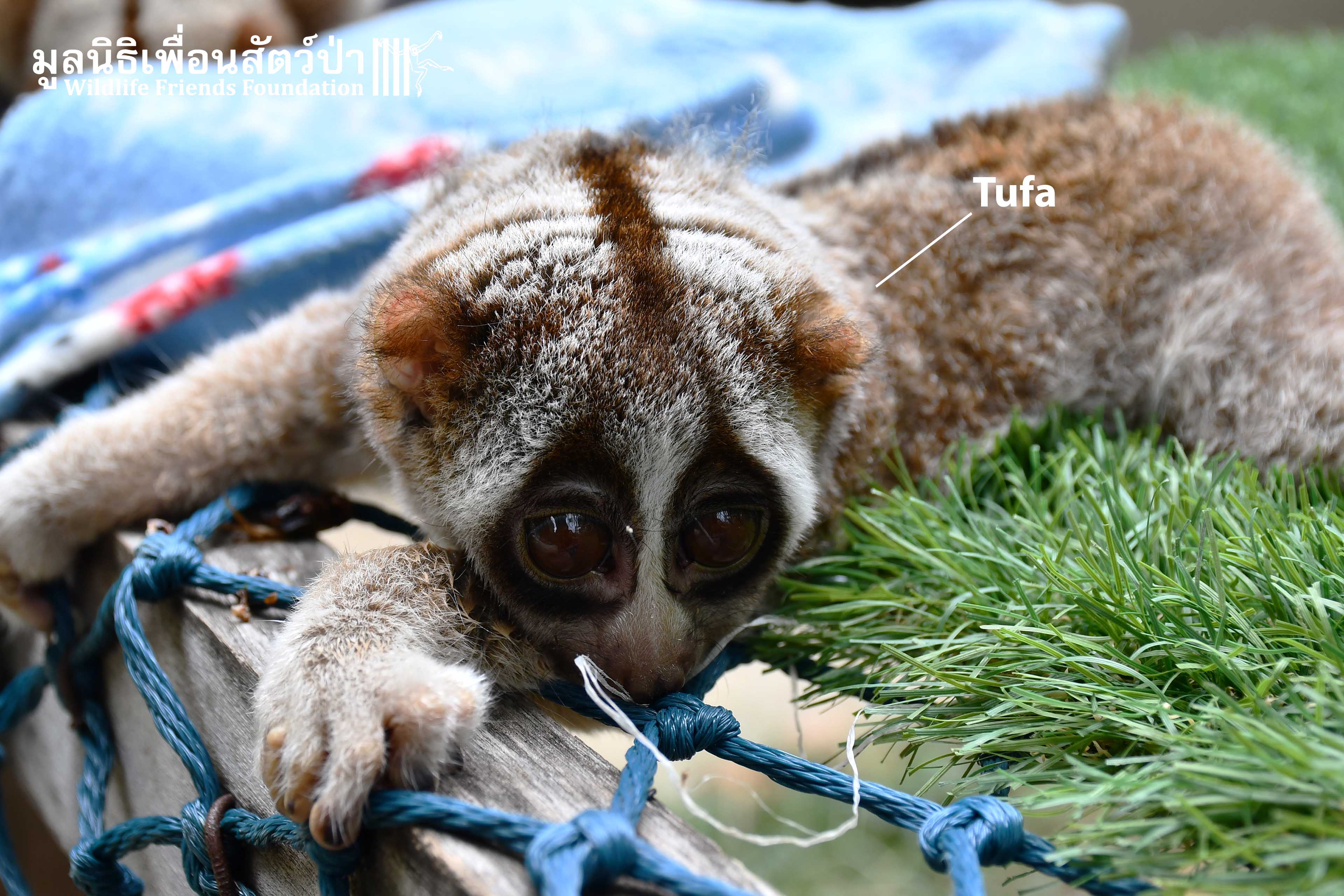 Meet ‘Tufa‘ a male Bengal slow loris, a new resident at the Wildlife Friends Foundation. At one year old, Tufa was abandoned by his previous owner, but luckily good citizens had rescued and taken care of him ever since.