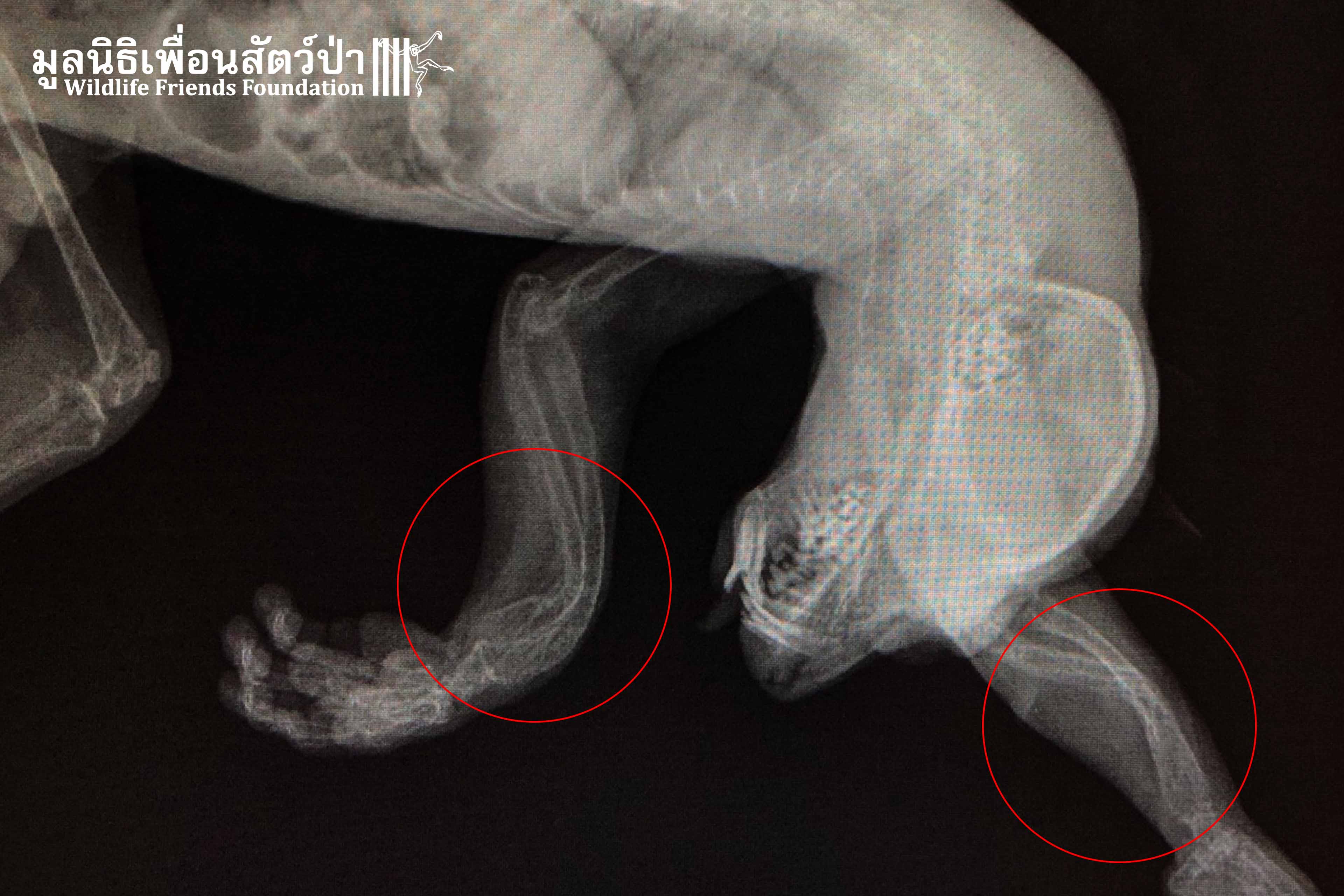 The Veterinary Team did an initial examination and x-ray, they found Tufa has a severe case of metabolic bone disease (MBD) which is commonly found in most vertebrates. MBD is caused by improper nutrition, calcium deficiency, and vitamin D deficiency. In this case, Tufa’s limbs are deformed and in a fragile state which makes it very difficult for him to crawl or climb in a tree the way a slow loris is supposed to.