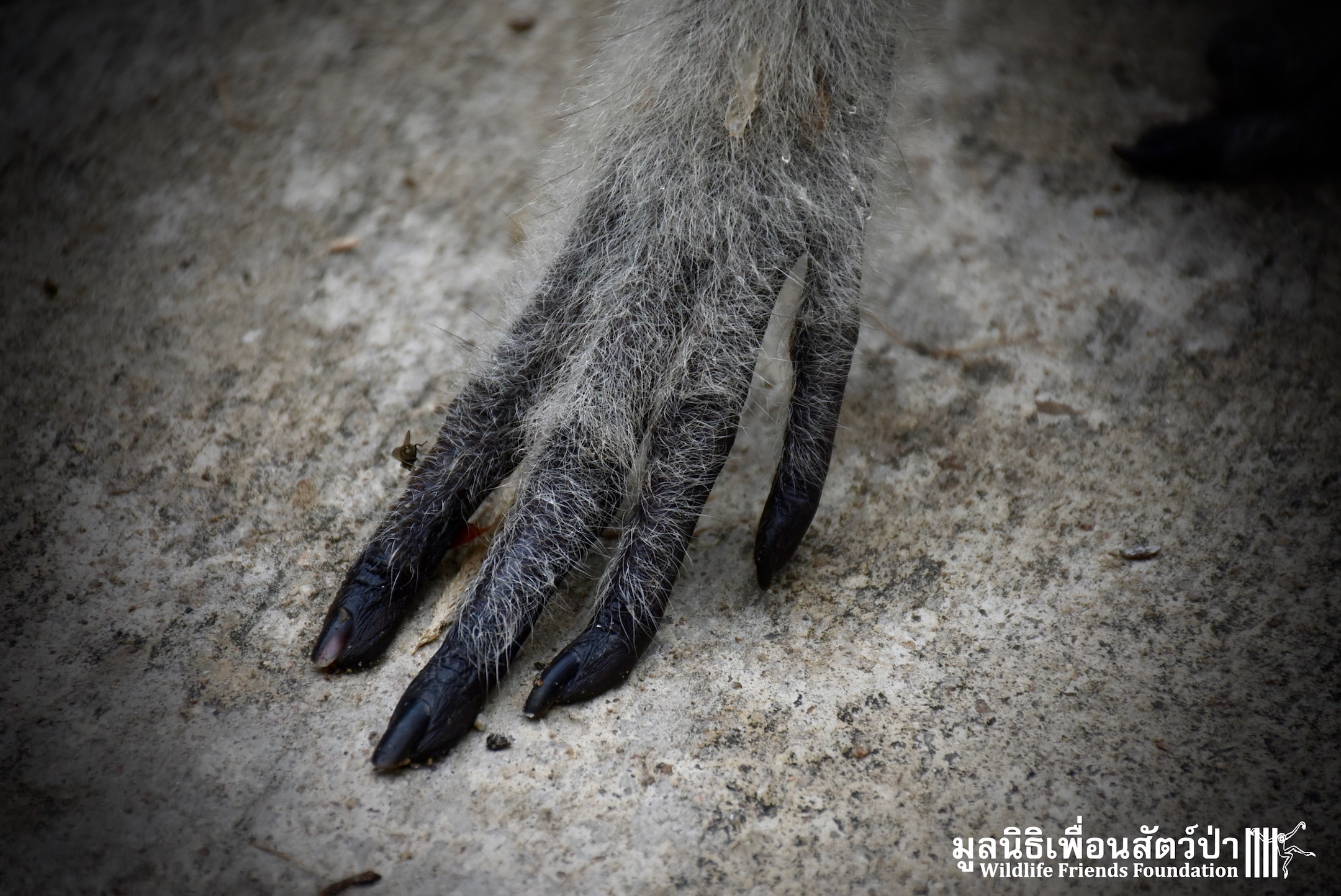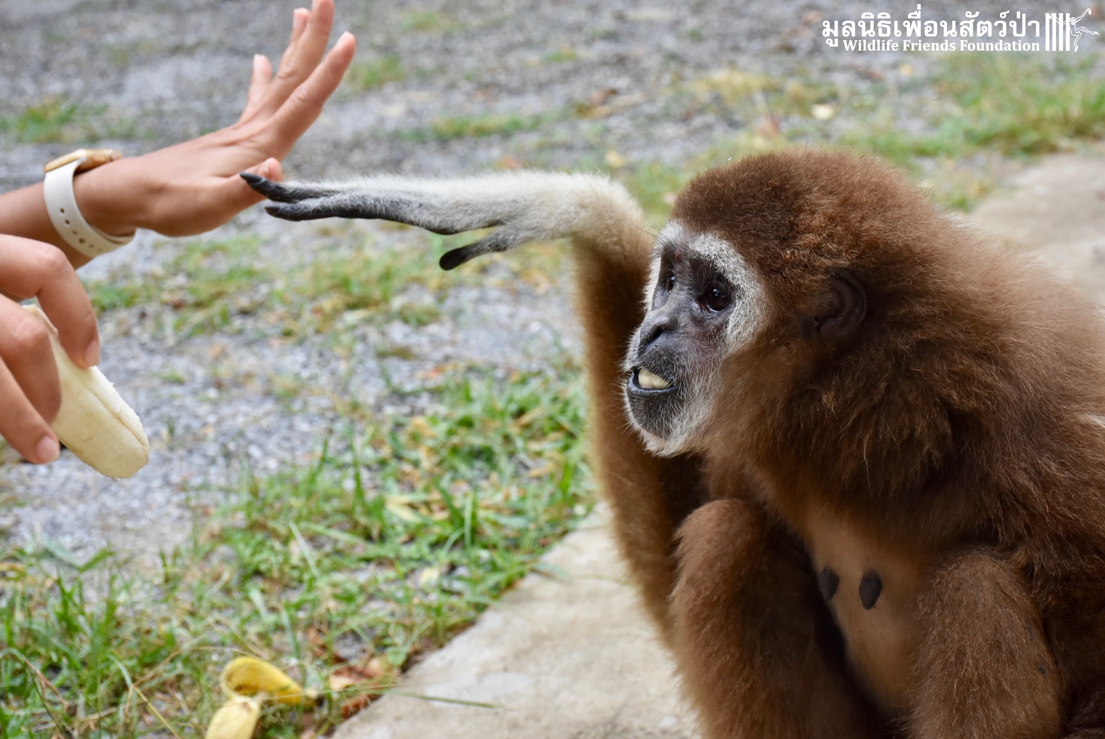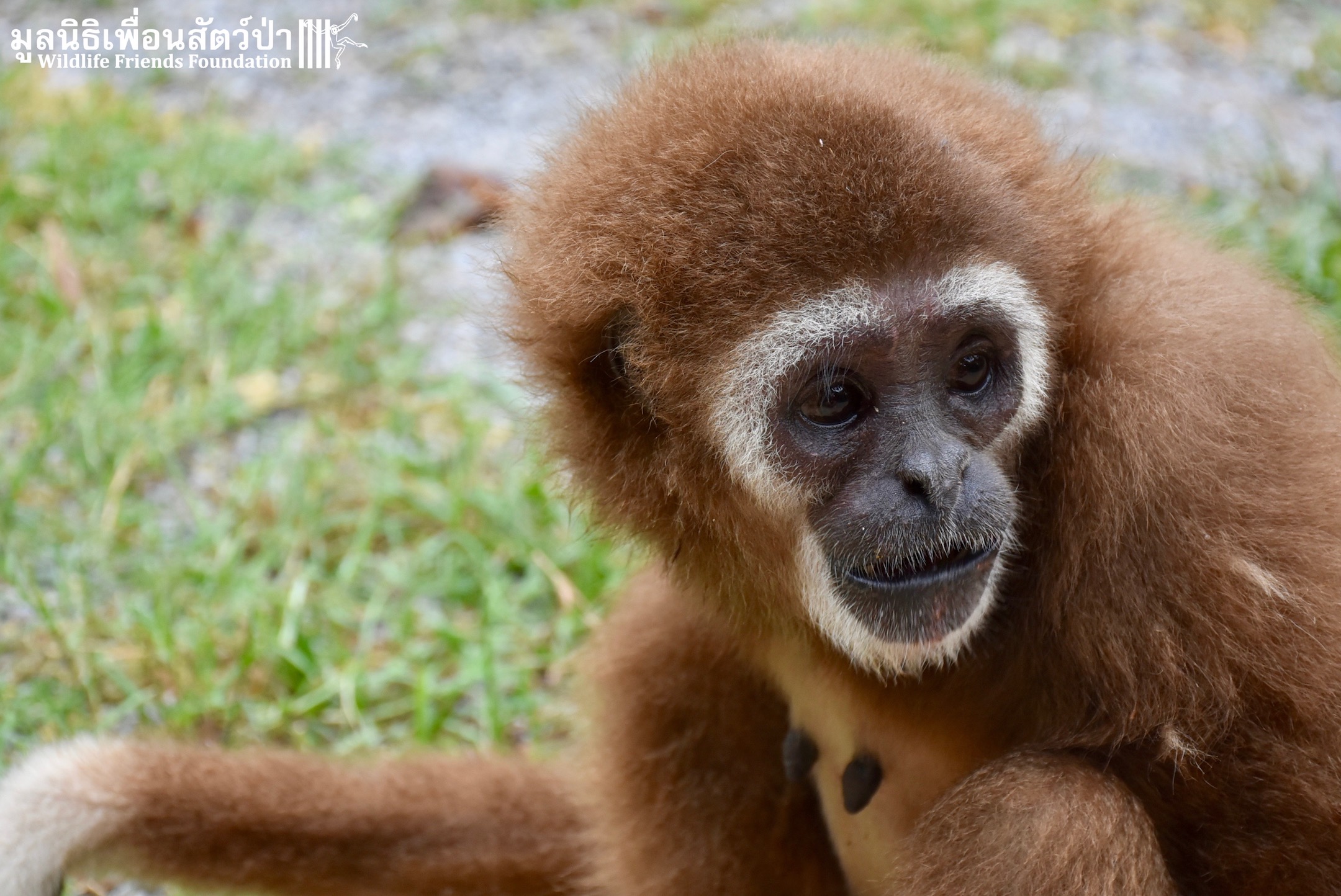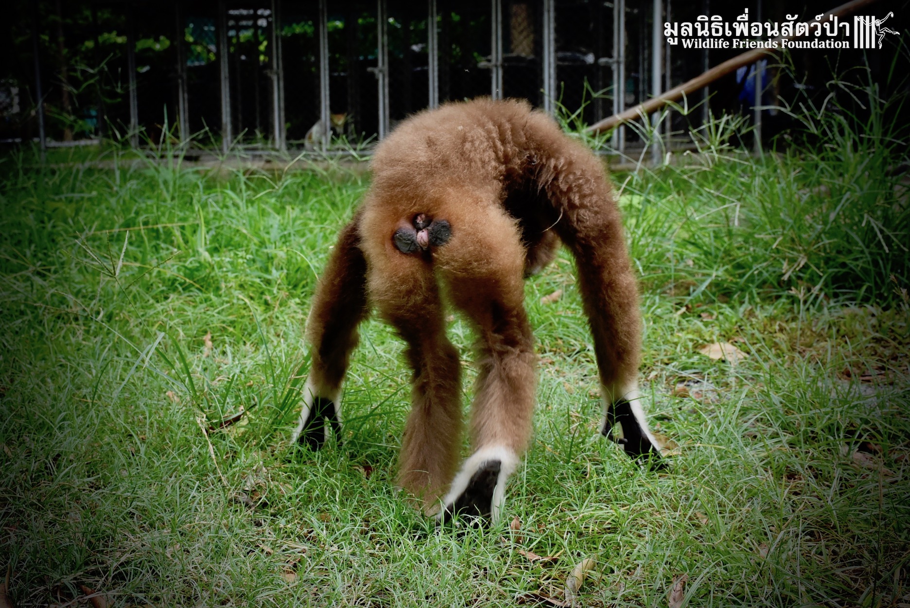 Let us introduce you to ‘Jub Jib’ the 15 year-old white-handed gibbon (Hylobates lar) who arrived at the WFFT Wildlife Rescue Centre yesterday. Just over 15 years ago Jub Jib was living with her family high in the tree canopy in Thailand’s biggest national park, Kaeng Krachan, which is part of one the biggest intact stretches of tropical evergreen forest in mainland Southeast Asia. This area creates a natural border between Thailand and Myanmar. We are told that during a battle between armed forces from Thailand and Burma her mother was shot and killed while Jub Jib was clinging onto her. Her mother fell to the ground, likely from a height 100’s of feet, as she hit the ground Jub Jib was badly injured, the impact of the fall resulted in severe head injuries, it was later found that as a result of these injuries that she suffered from epilepsy. She was handed over to a man and lady who had previously had a pet gibbon that had died, as they were deemed as suitable carers for her. Jub Jib then spent the next 15 years kept inside a house, being treated like human baby, fed human foods and was forced to wear diapers 24 hours a day to prevent from making a ‘mess’ in the house.