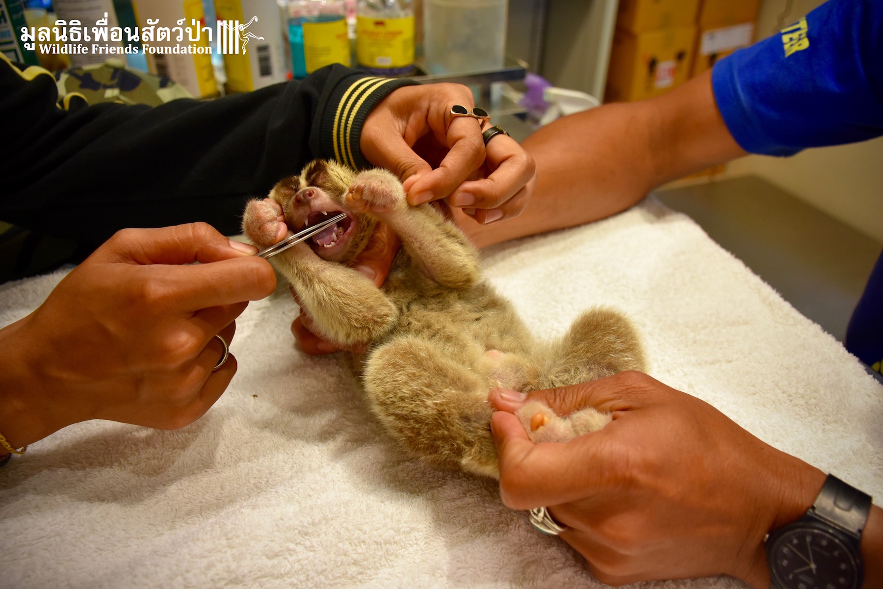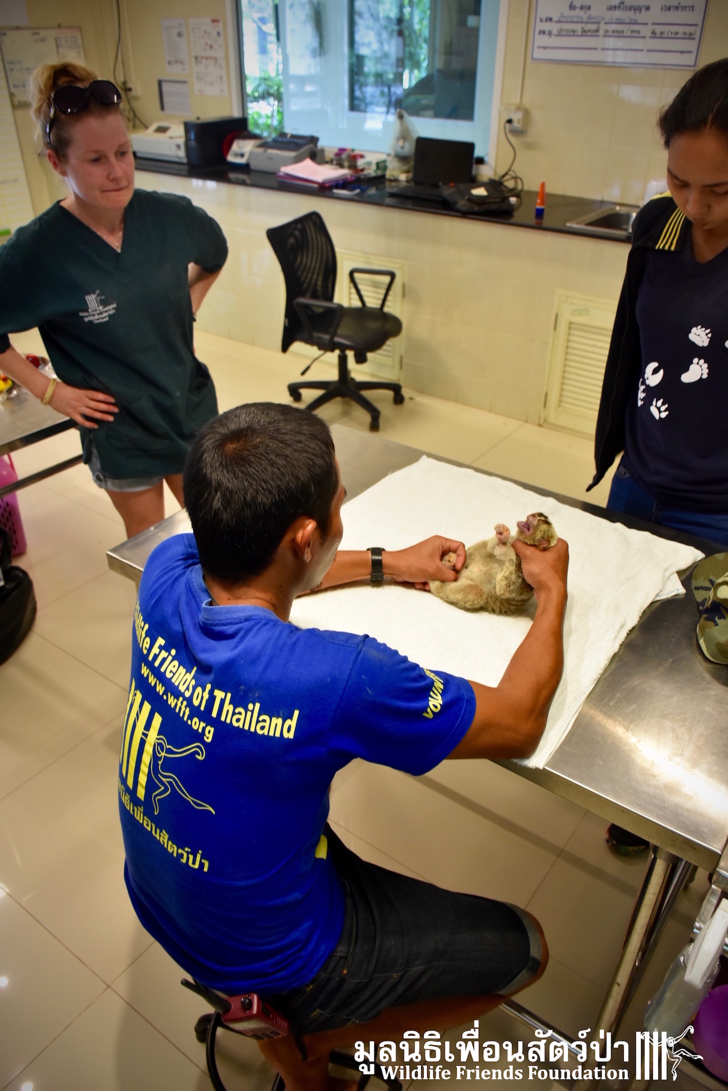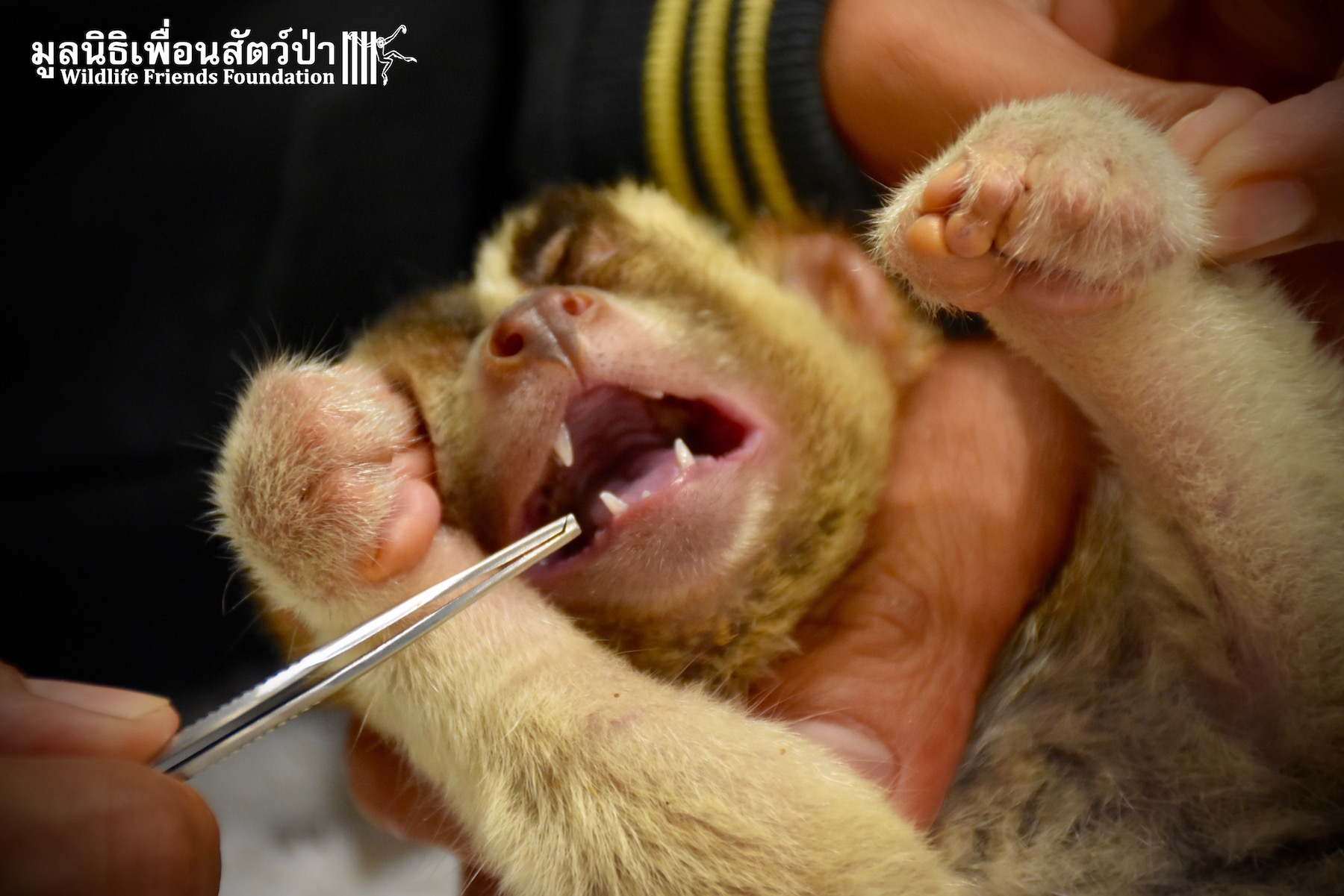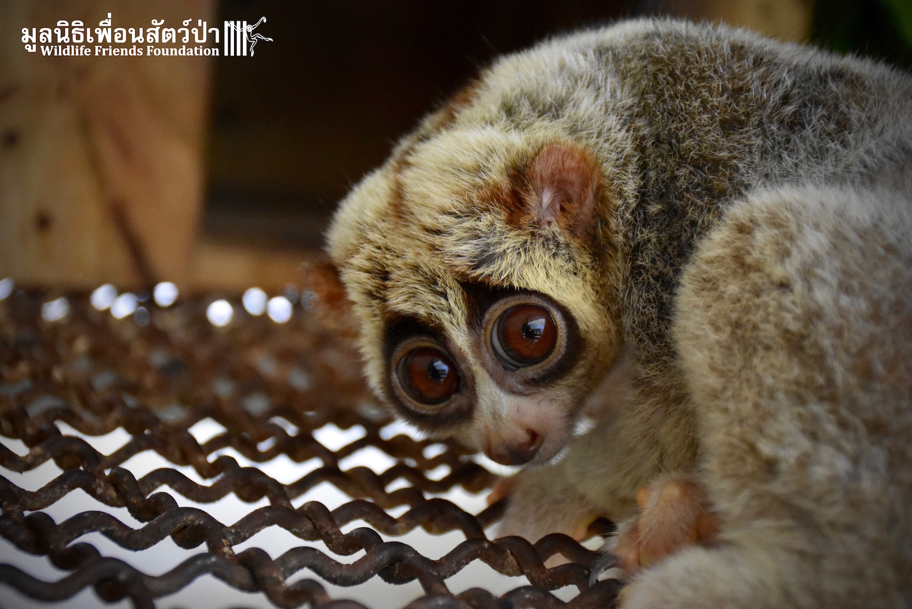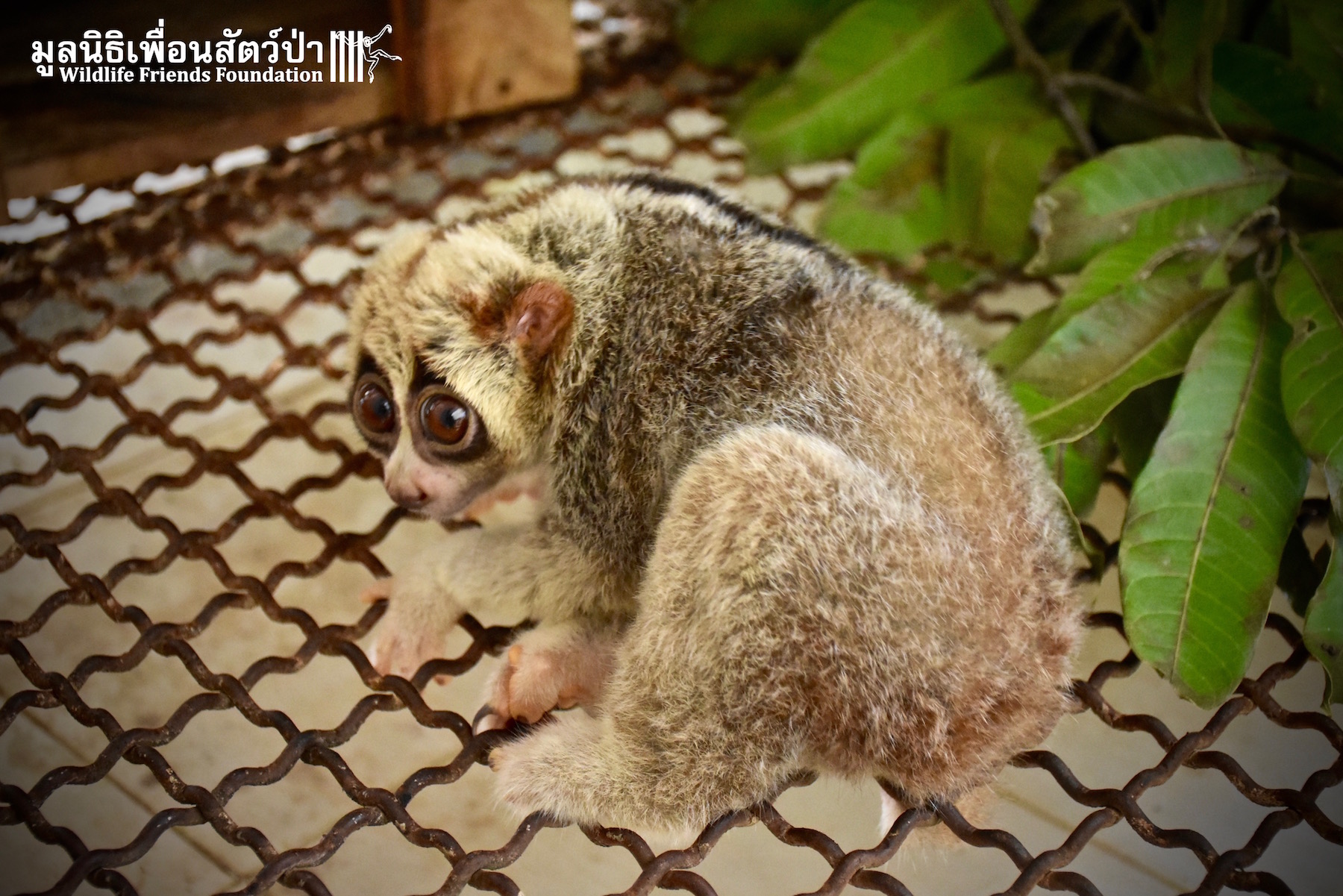 Last week the team at Thai Animal Guardians Association called WFFT for help with a slow loris that had been found on the outskirts of Bangkok in the garden of a member of the public. The WFFT Team headed up to Bangkok to collect the loris and bring him back to the WFFT Wildlife Hospital. This displaced Bengal slow loris (Nycticebus bengalensis) seems to have lost his way and was far away from his natural forest habitat.