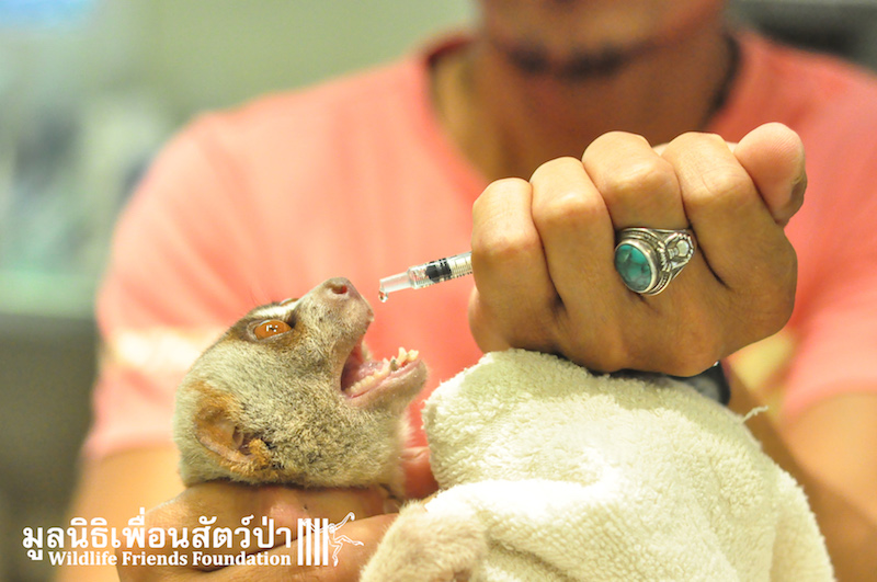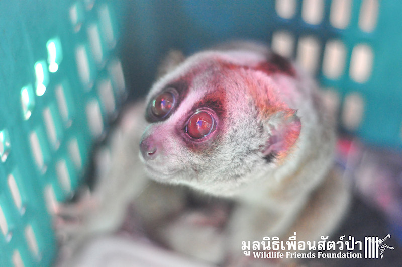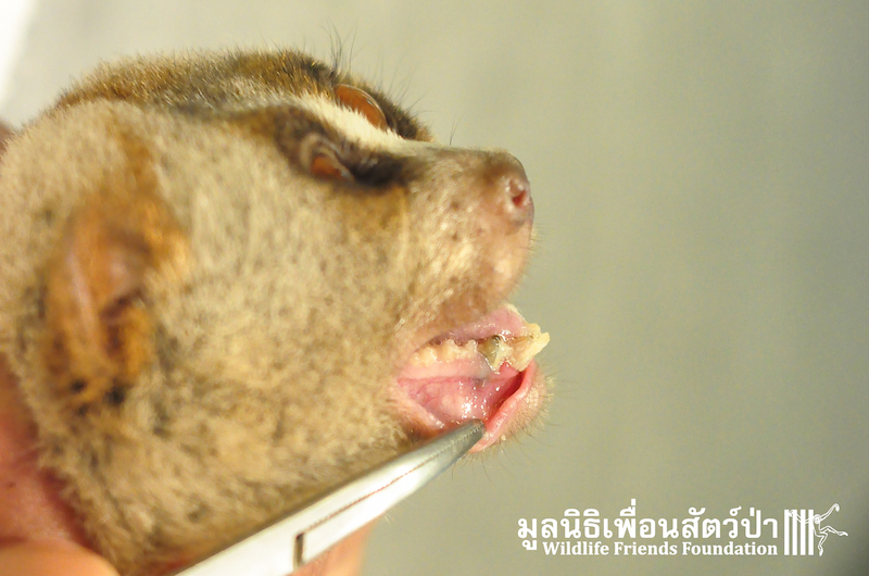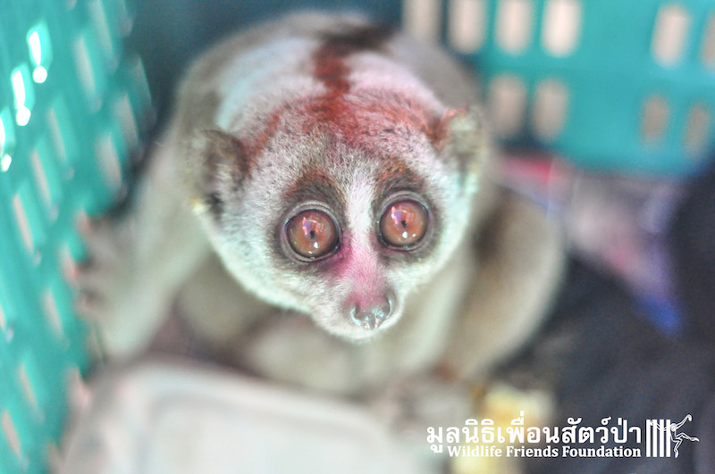 We received a call from a concerned local after a slow loris (Nycticebus bengalensis) had been entering the person house and obtaining food from the kitchen. The WFFT Rescue Team went to investigate and found the loris to be in a weak state, he has badly infected teeth, this may be a result of his age or he may well be a released pet. He is currently under supervision at the WFFT Wildlife Hospital and will be transferred to a Loris Rehabilitation Enclosure when he is deemed well enough.