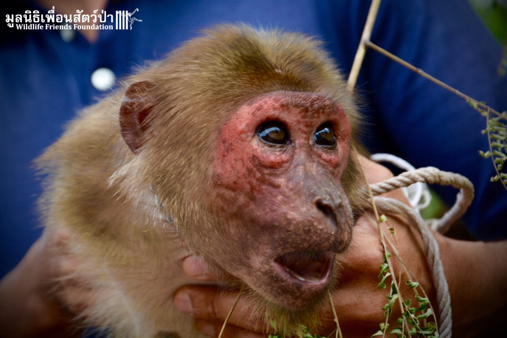 After spending the first three years of her short life with a chain around her neck, this young girl can now have some kind of freedom. She is settling well to life at WFFT, after a quarantine period she will be introduced to another stump-tailed macaques, ‘Dollar’ and his field mates. We are hopeful she will integrate into the group well as she is young. We will keep you updated on her progress.