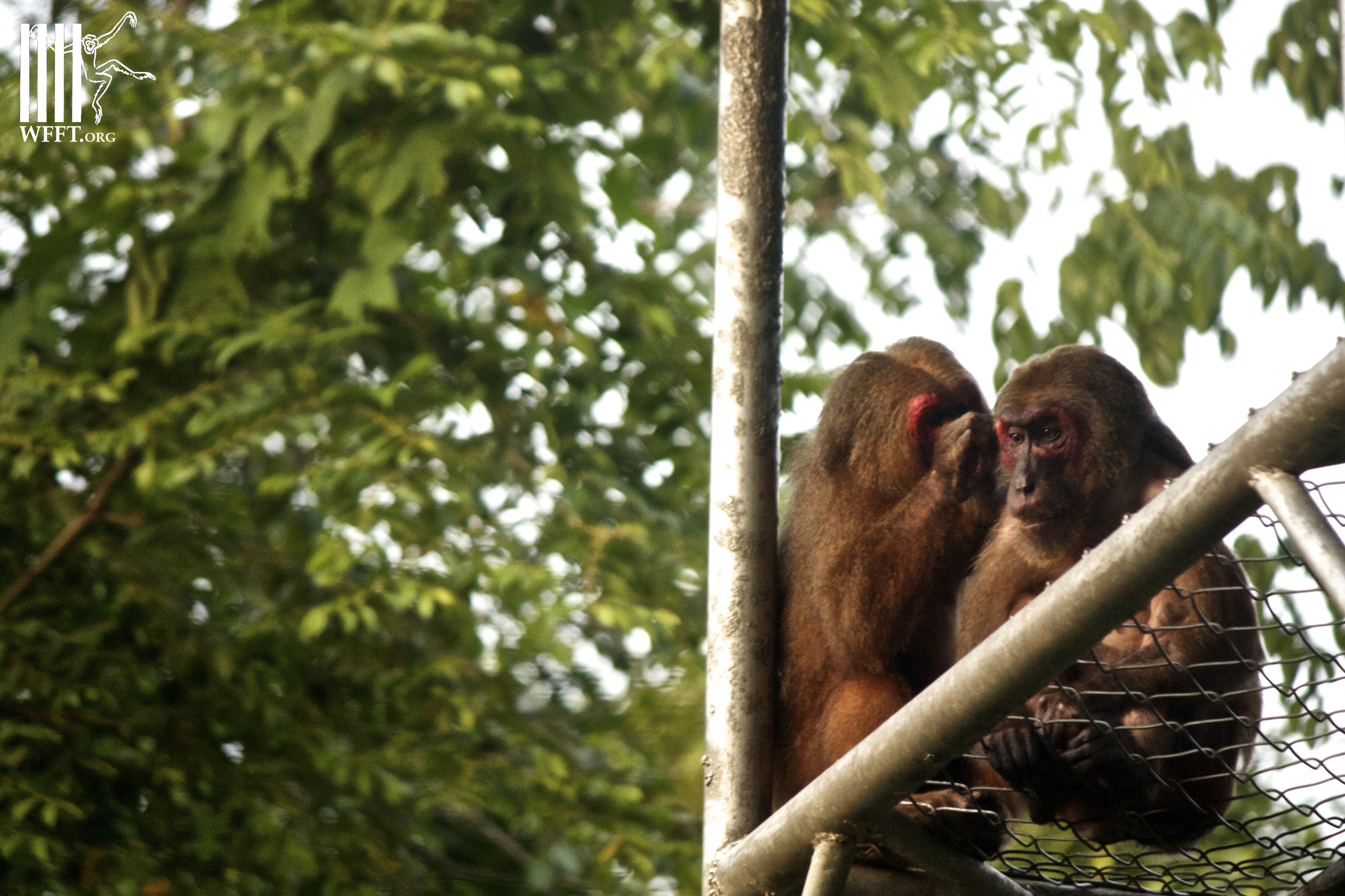 We at WFFT however will rescue all wildlife if needed, and for the last 13 years we have never turned down one animal. Currently we house over 140 macaques of 5 species (long-tailed, pig-tailed, stump-tailed, Assamese and rhesus macaques) and we try to give them the best environment possible. With the help of foreign volunteers and recently a grant from IPPL (International Primate Protection League) we have been able to move a large group of Stump-tailed macaques to a very large open enclosure and we would love to show you here how they are doing!