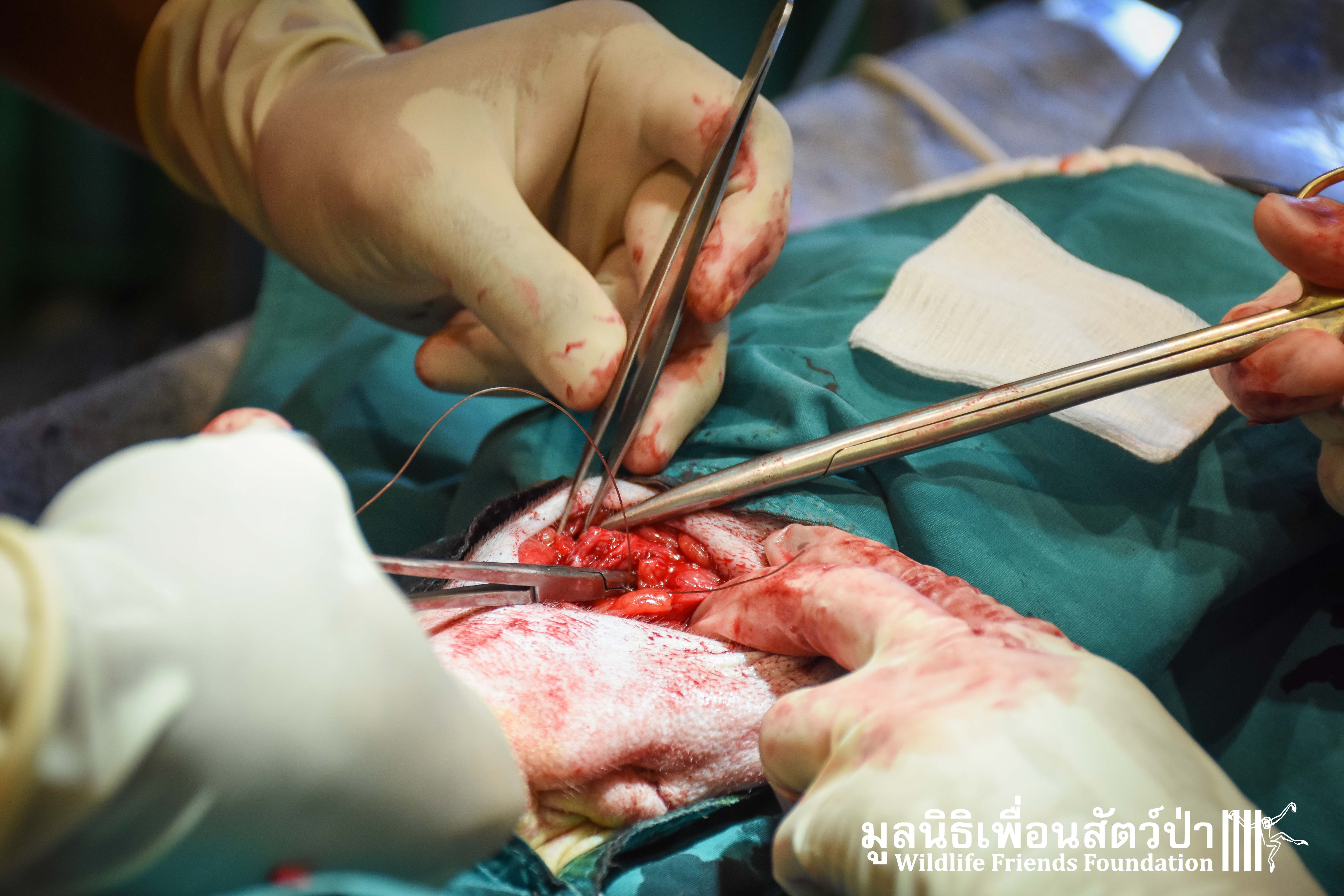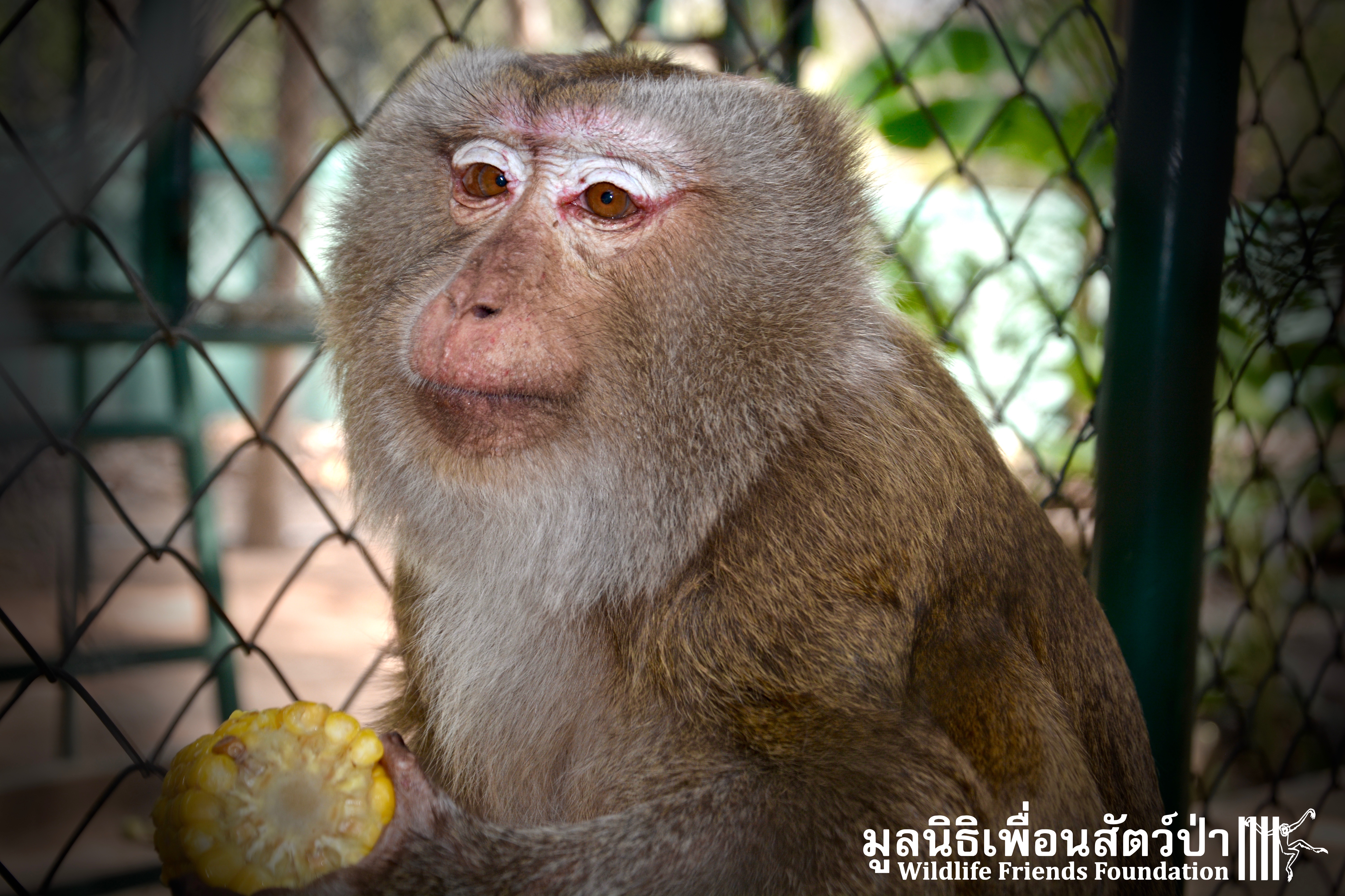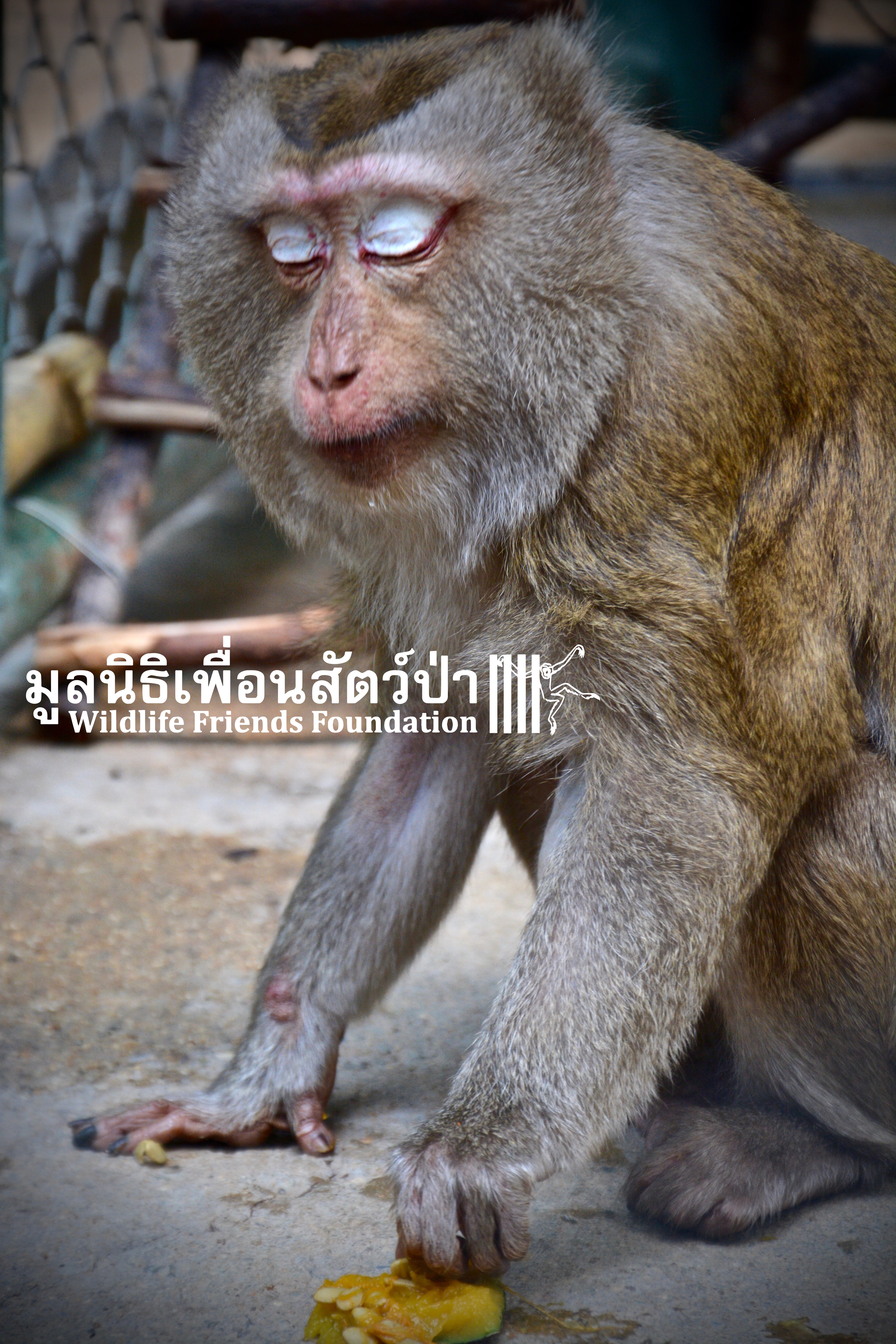 Jaw the elderly female Northern pig-tailed macaque (Macaca leonina) was rescued just over three weeks ago after spending the last 15 years of her life in solitary confinement at a temple in Northern Thailand. After a health check was performed on Jaw it was found that she had a large hernia on her abdomen. She spent the first few days adapting to a chain free life in WFFT’s Quarantine Area, with proper care and diet. We decided to perform surgery to correct the hernia after this settling in period. Its been three days since the operation was performed and Jaw is recovering well. The pain she has felt for years is slowly going away, this old lady has inspired us all with her resilience and strength. She is eating well and exploring her enclosure more and more, even climbing on her environmental enrichments. We cannot wait to be able to introduce her to some other macaques here at the WFFT Wildlife Rescue Centre. See her rescue story here http://bit.ly/1MSfNwy. We will keep you updated on her progress.