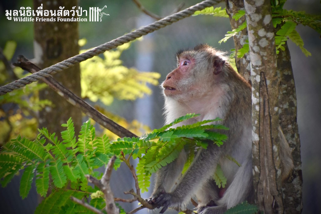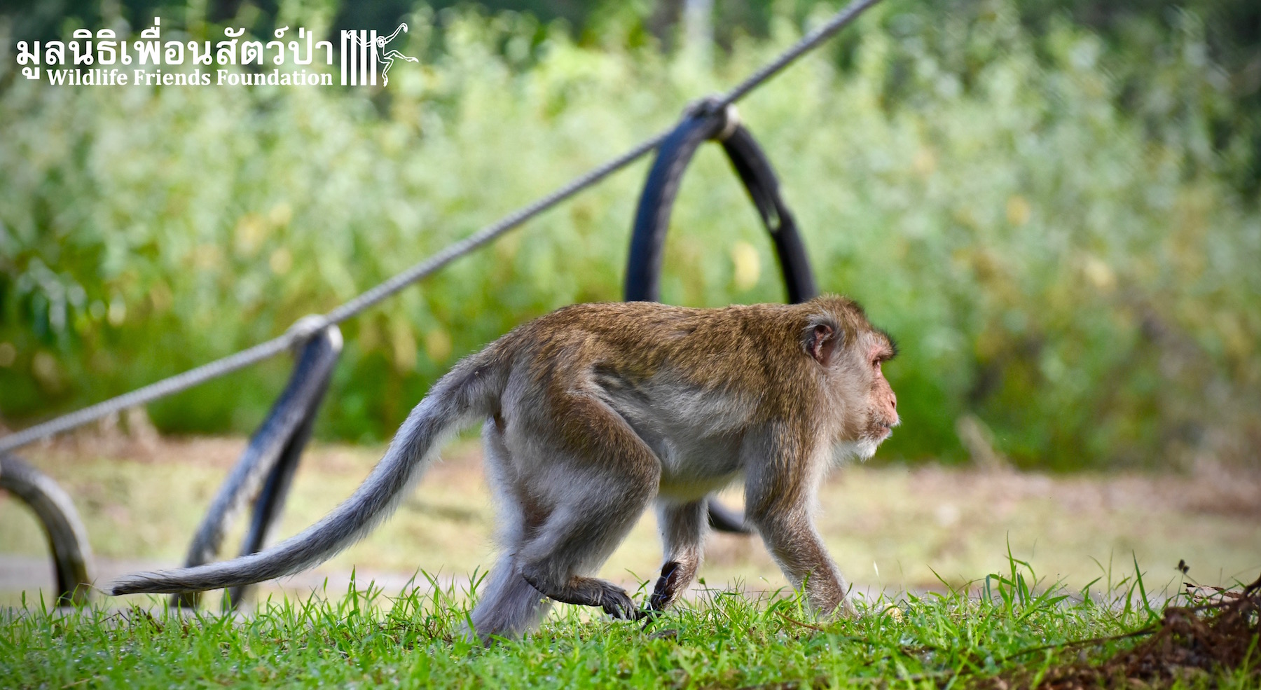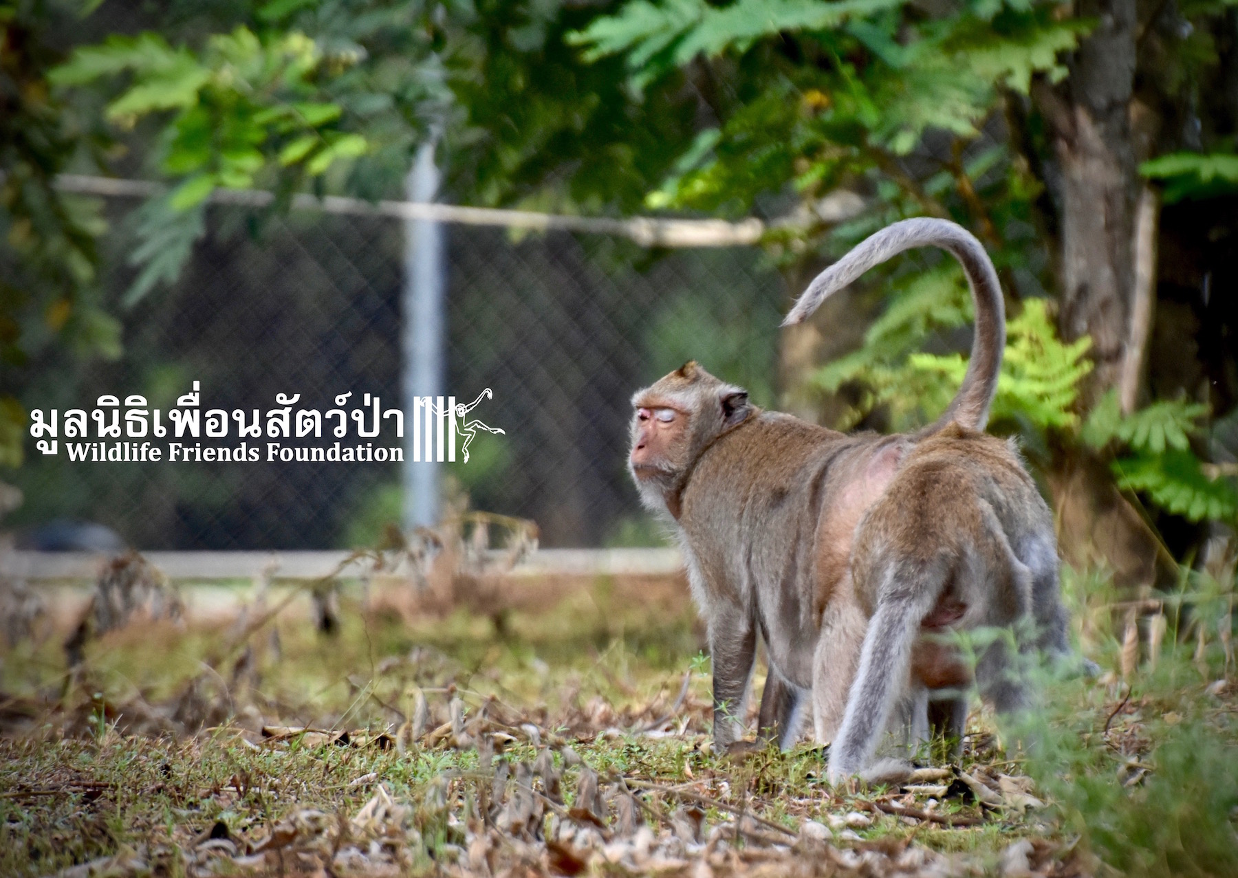 Two very special residents of the WFFT Wildlife Rescue Centre have progressed further in their new lives free from exploitation and abuse. Elderly resident long-tailed macaques (Macaca fascicularis) ‘Mam’ and Willem’ have moved into a large open field where they are now living in a more natural setting, with ample space to roam. Mam was kept as a pet for 12 years, most of this time was spent restrained by a chain around her neck, Willem was rescued from a zoo in Bangkok. They are sharing their new home with 9 other elderly and special needs monkeys in the New Lands area of WFFT. Check out these photos of them meeting their new friends and enjoying their new home. This is as good as it gets for these poor victims of the illegal wildlife trade, who cannot be returned back to the wild.