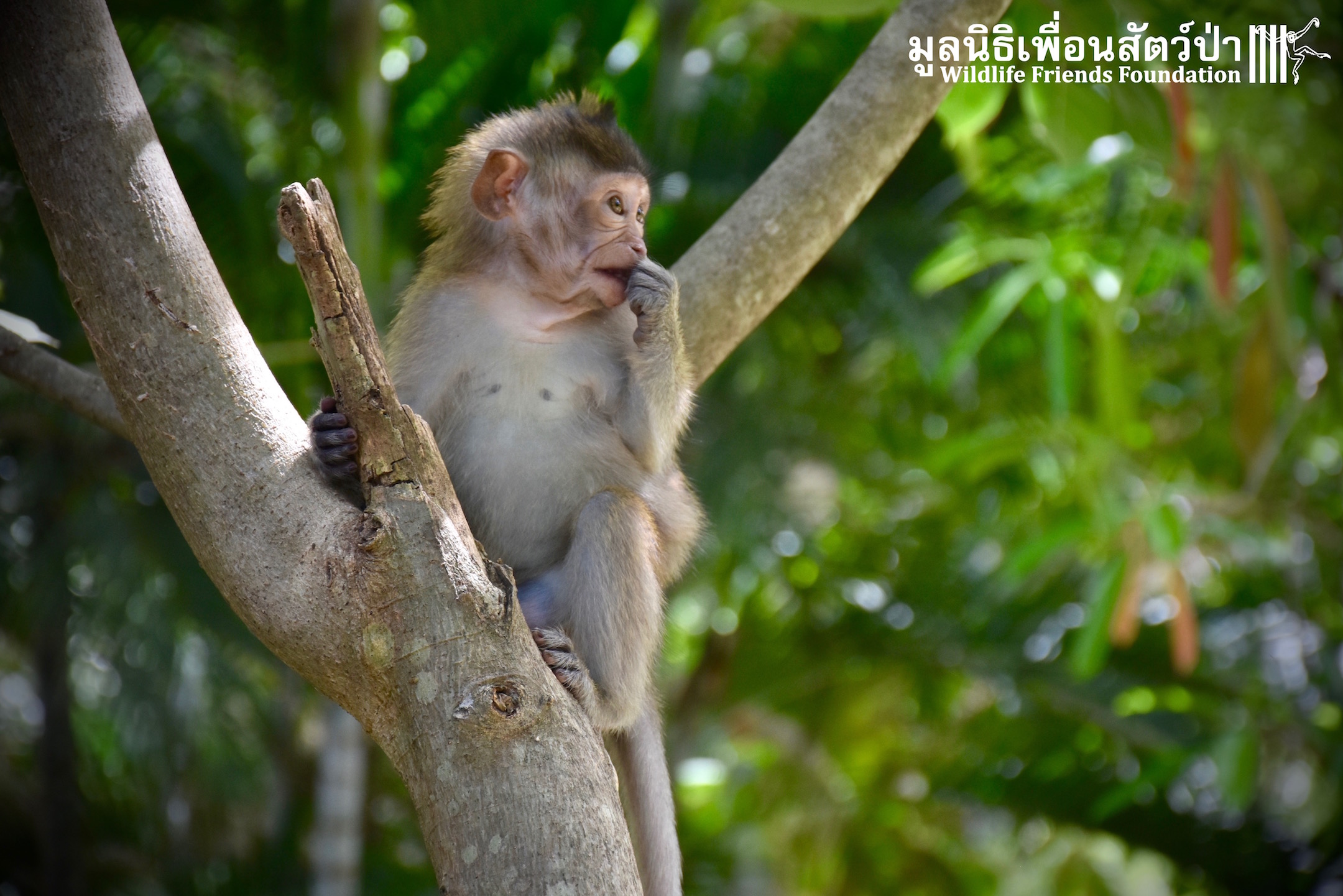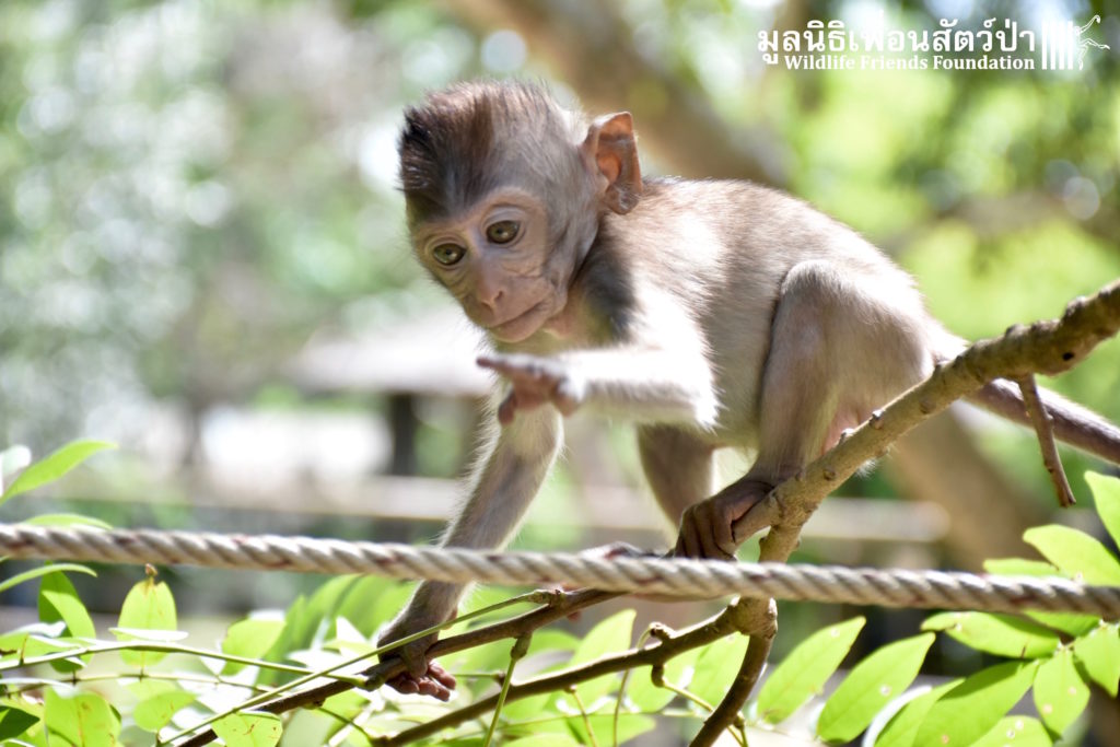 Over the last few months we have seen an increase in th numebr of infant primates in need of rescue after their parents were likely poached and they were then sold on as pets. See here infant long-tailed macaques, ‘Makood’ and ‘Poobai’, and infant dusky langur, ‘Pangpon’. The monkeys still require round the clock care from our team, here they are on their daily play seasons, during in which they learn to climb, play flight and love to run around causing one another.