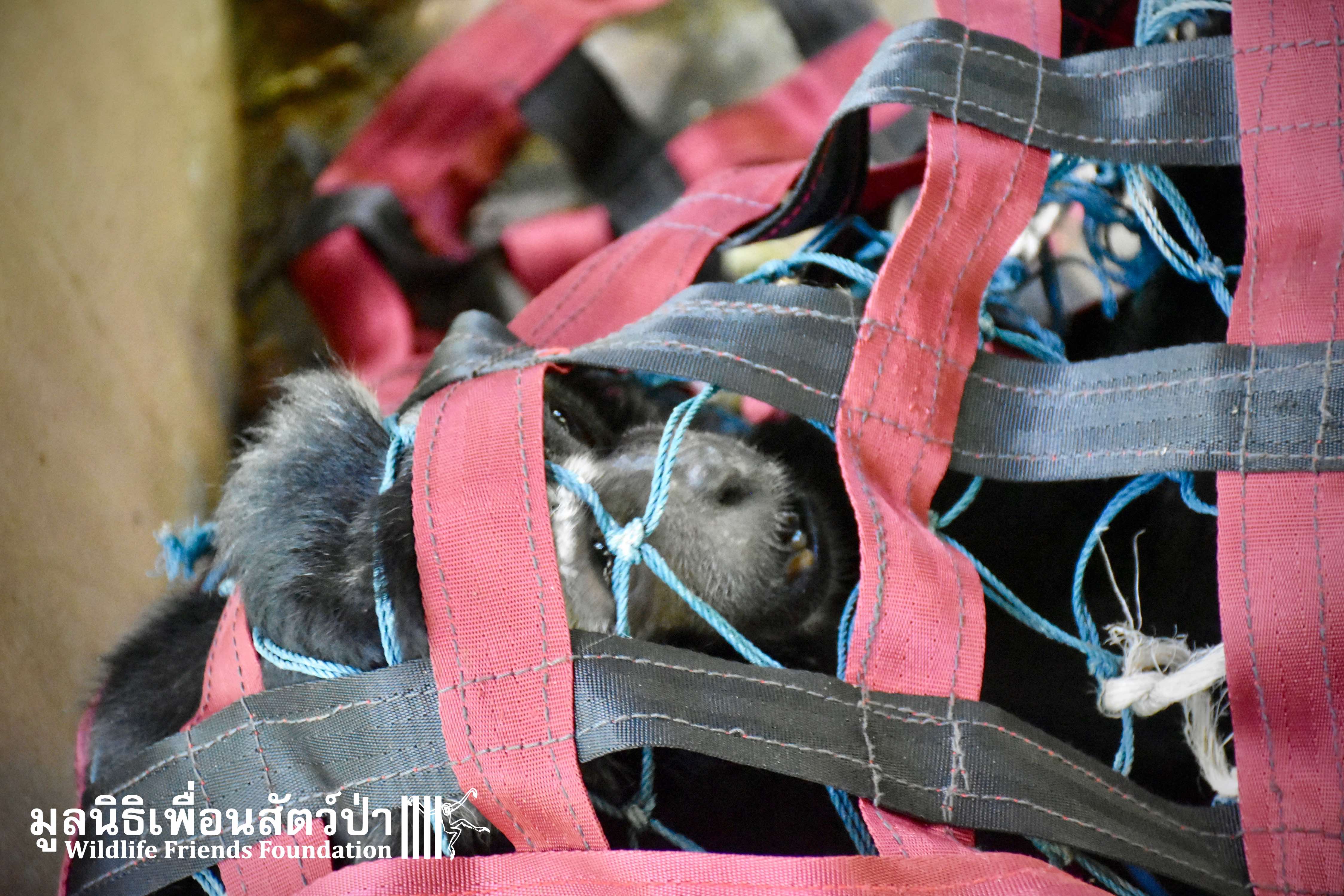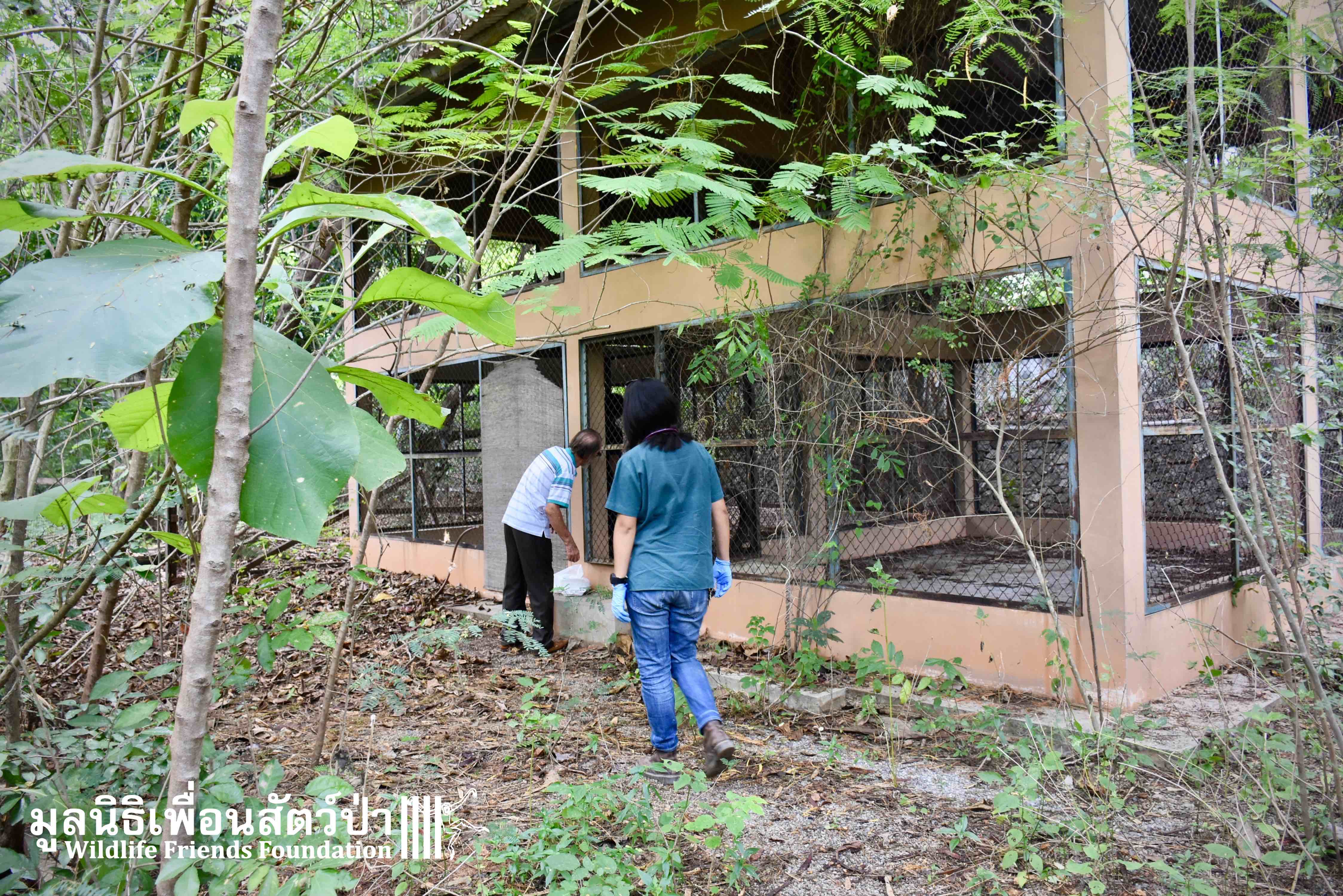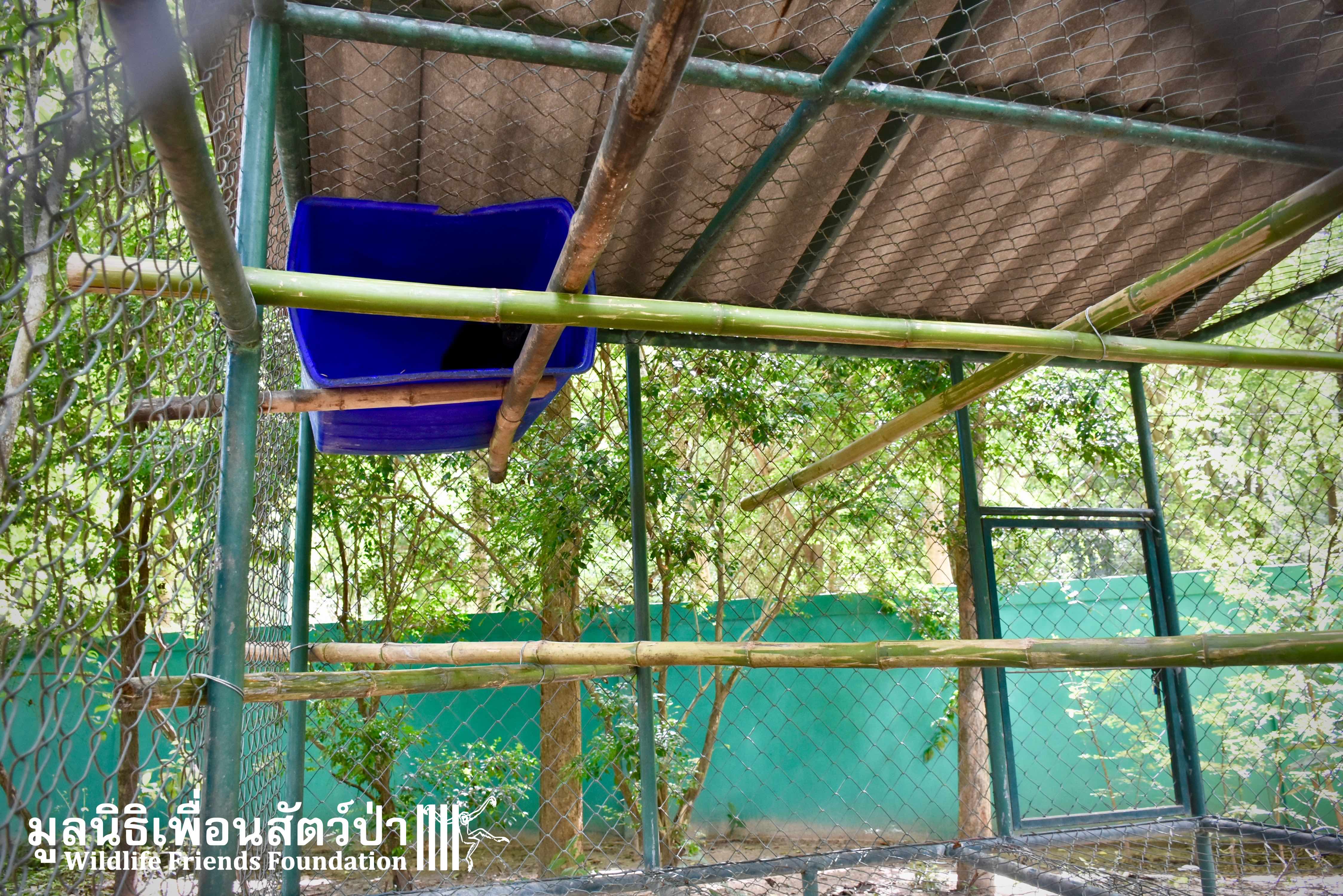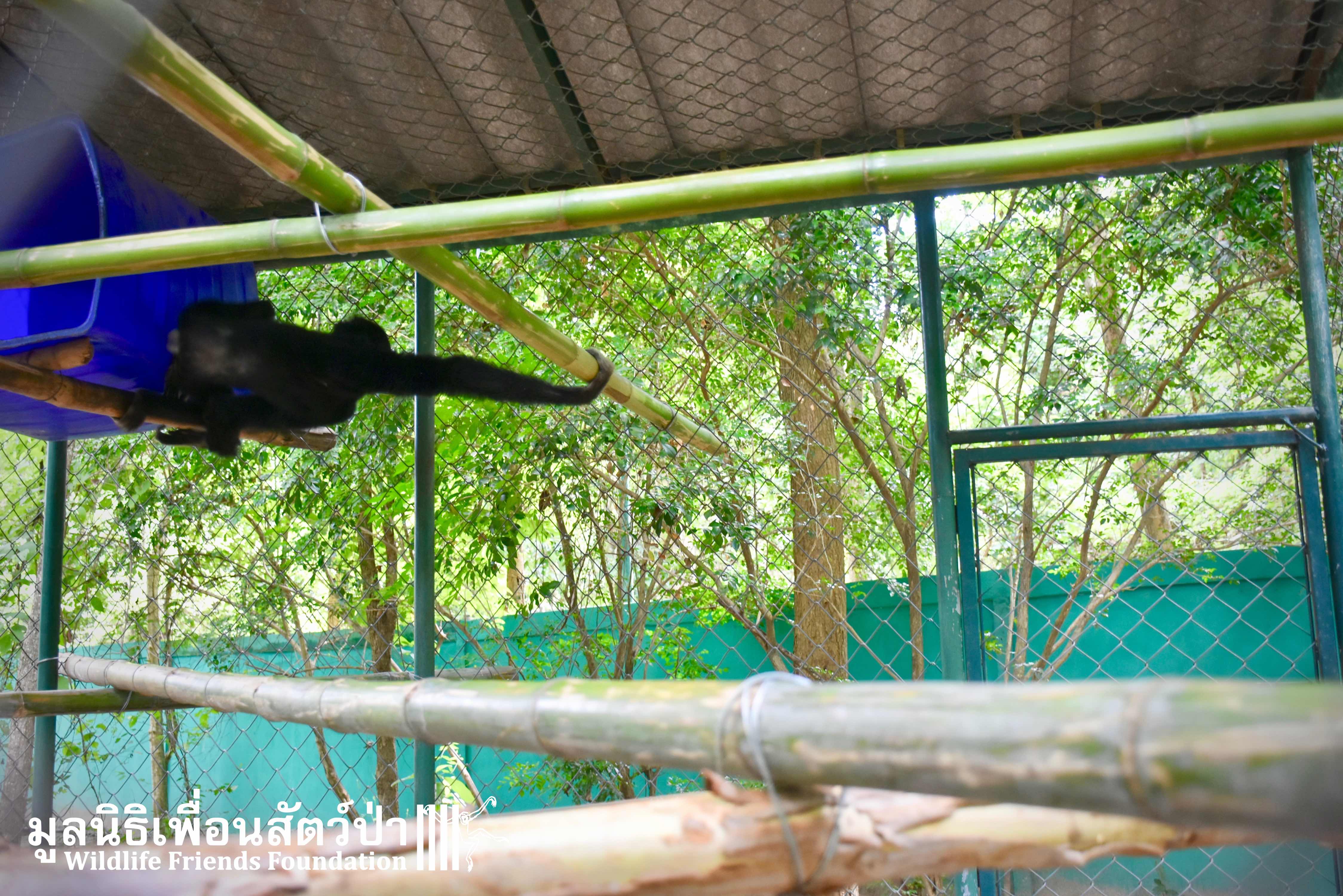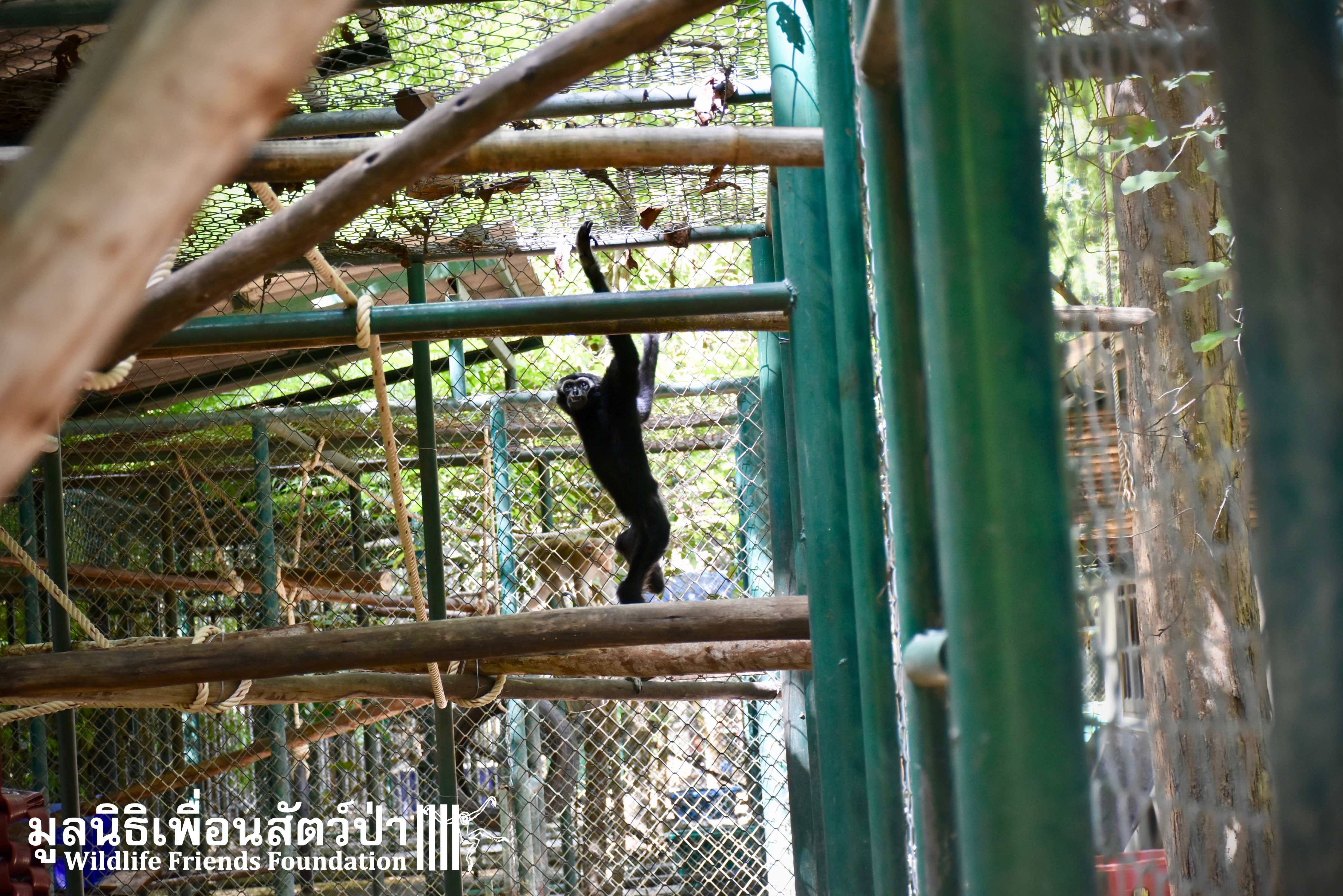 As far as the Vet Team knows Burma has no medical conditions, except being old. He suffered a broken wrist 3 years ago, fixed by Khao Kew open zoo Vet Staff who came to collect and operate on him. But on the day of his rescue our Vet Team found in Burma a pretty strong and active ape! His limbs are skinny limbs of an aged animal but beside that he really didn’t look or act his age. He was simply swinging around in his relatively big, even if empty, enclosure. After he had been sedated, to avoid him any stress and for his own & our staff’s safety he was transported back to the WFFT Quarantine area. There he will be able to adapt and get ready for the next step of his new life at the center. Fed with fresh fruits everyday, the only things Burma will maybe miss is his Sunday pizza treat ! But that is for his own good. For the moment he is doesn’t really know how to use and enjoy the enrichments placed all around his new double enclosure, being kept in a barren enclosure for so long it is pretty new for him. Yet he already sings with his neighbors. Now they sing back for the first time in his long life.