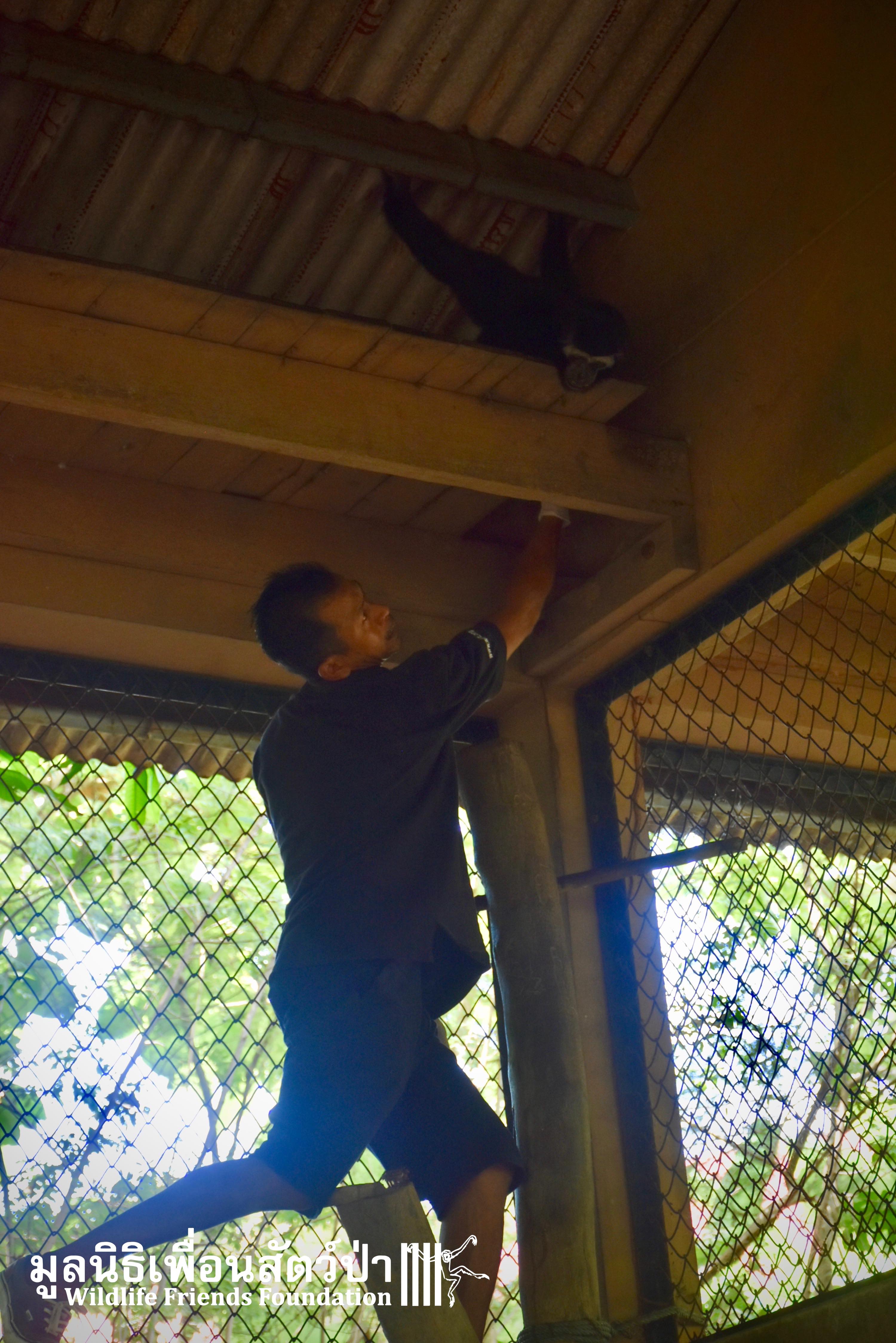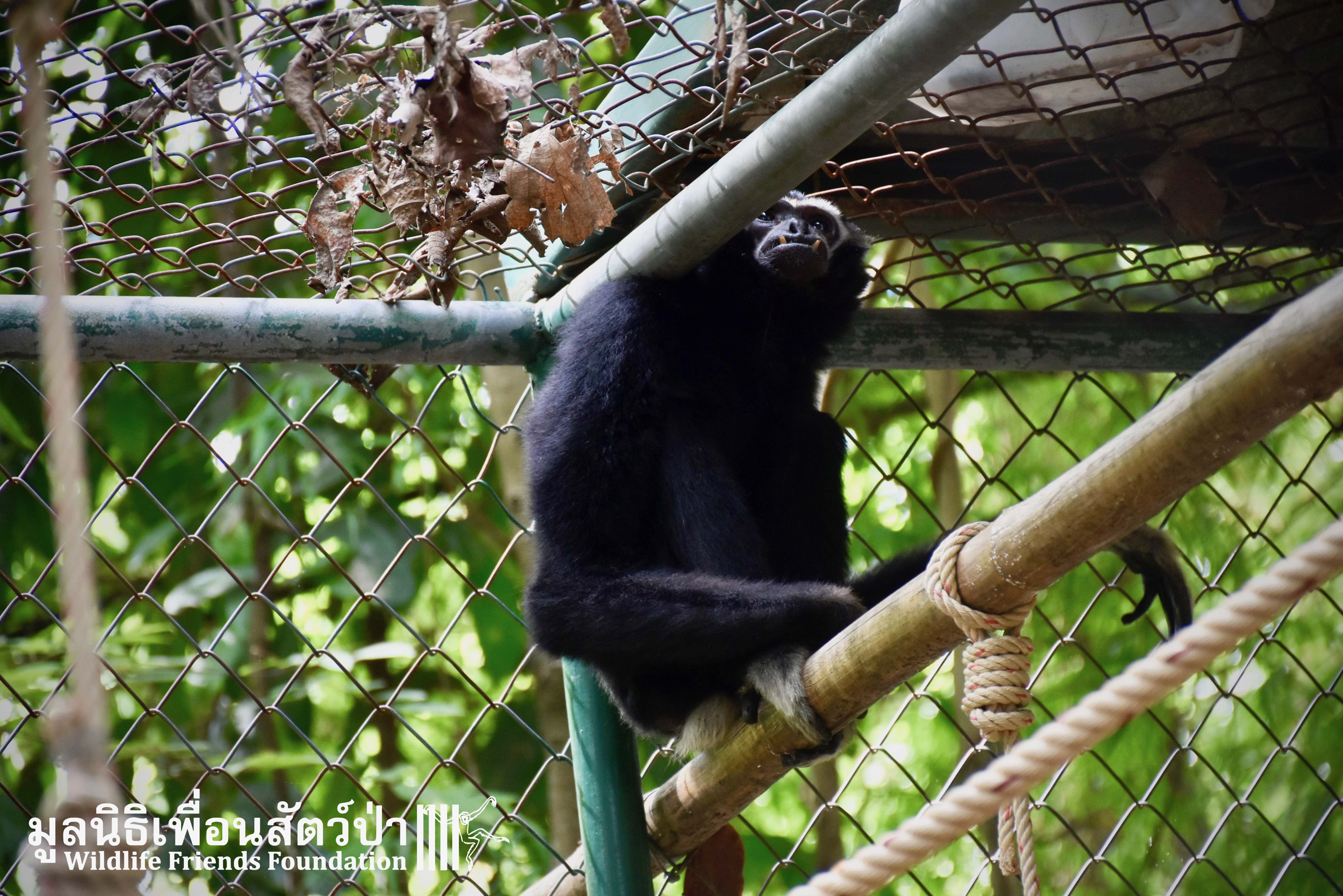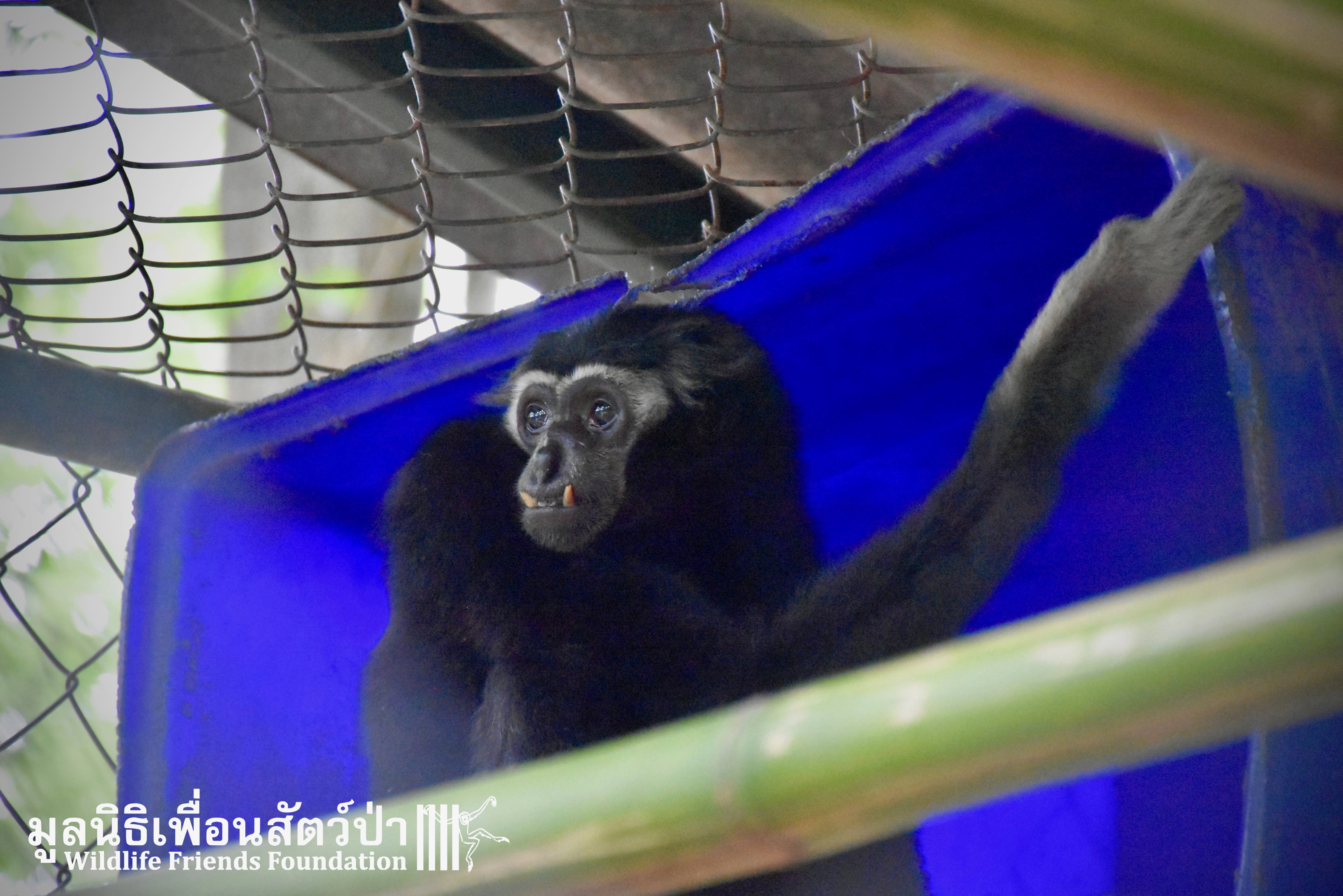 Burma’s owner, took him over from his brother, who had bought him as an infant from the Chattuchak Market, when he was 6 years old. He took care of him the next 32 years. The owner was growing old at the same rhythm as Burma, and was finding it more and more difficult to take care of him anymore. Thanks to a family members who had visited the WFFT center and discovered the work we do the owner found out about the rescued animals we take care off. Concerned for the future of Burma he wanted him to have a happy ending to his life and decided to give him a chance to have a better life and let him join the family of the WFFT rescued animals. As he was not aware of the exceptional age of his old gibbon, he was happy to know Burma was going to have adapted medical care, and an adapted place to spend the remainder of his lifetime.