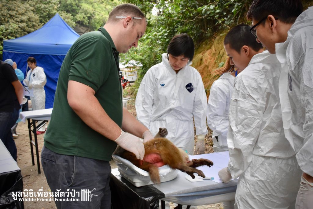 Earlier this month, the WFFT Veterinary Team, joined by other veterinarians from Thailand’s Department of National Park, Wildlife and Plant Conservation (DNP) and Zoological Park Organization of Thailand visited Hong Kong to observe the work of our colleagues from Hong Kong’s Agriculture, Fisheries and Conservation Department and Ocean Park Conservation Foundation, Hong Kong (OPCFHK). The team took part in an innovative mass sterilization operation which controls the large populations of macaques in Hong Kong, this project is conducted by a coalition of organizations. Using the latest technologies via endoscopic tubectomy or vasectomy. This effective contraceptive method allows for large numbers of macaques to be caught and de-sexed in a humane and efficient manner.