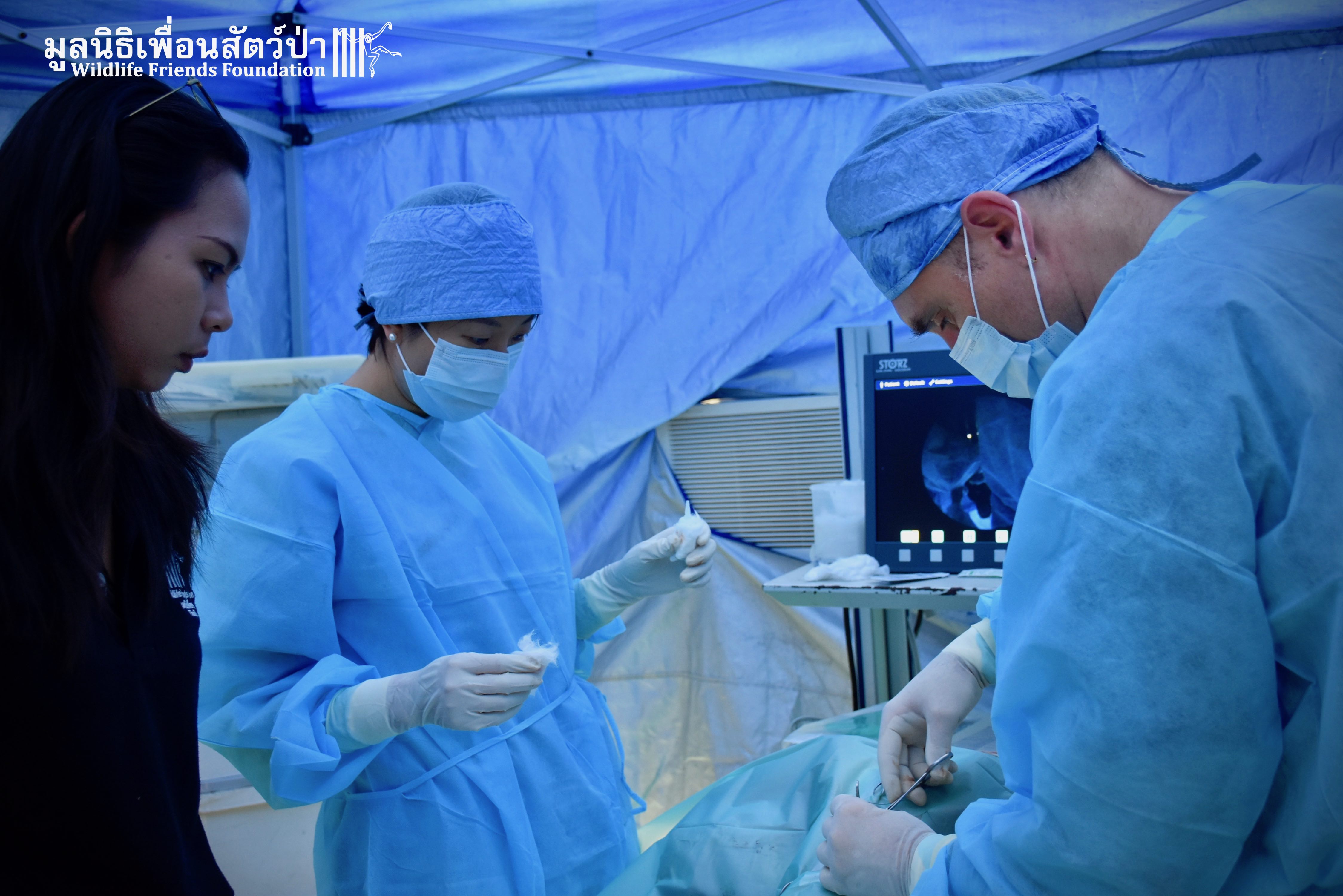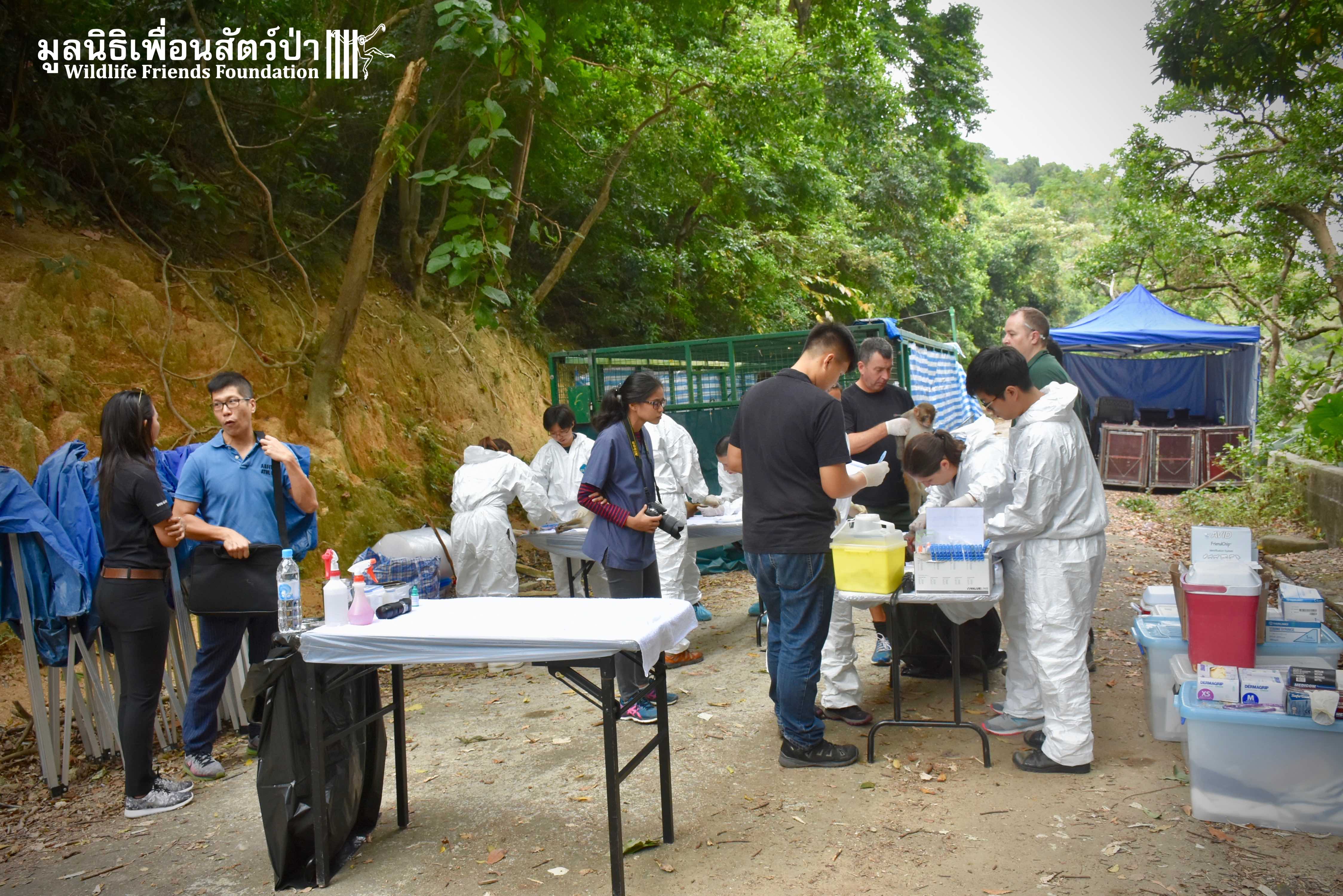 Earlier this month, the WFFT Veterinary Team, joined by other veterinarians from Thailand’s Department of National Park, Wildlife and Plant Conservation (DNP) and Zoological Park Organization of Thailand visited Hong Kong to observe the work of our colleagues from Hong Kong’s Agriculture, Fisheries and Conservation Department and Ocean Park Conservation Foundation, Hong Kong (OPCFHK). The team took part in an innovative mass sterilization operation which controls the large populations of macaques in Hong Kong, this project is conducted by a coalition of organizations. Using the latest technologies via endoscopic tubectomy or vasectomy. This effective contraceptive method allows for large numbers of macaques to be caught and de-sexed in a humane and efficient manner.