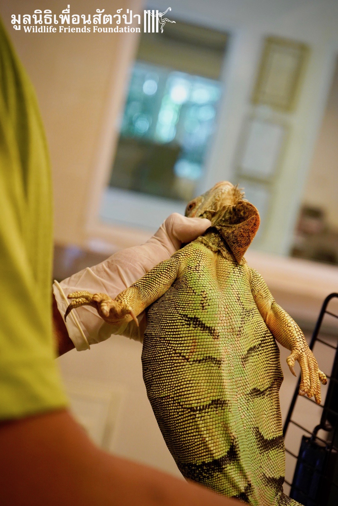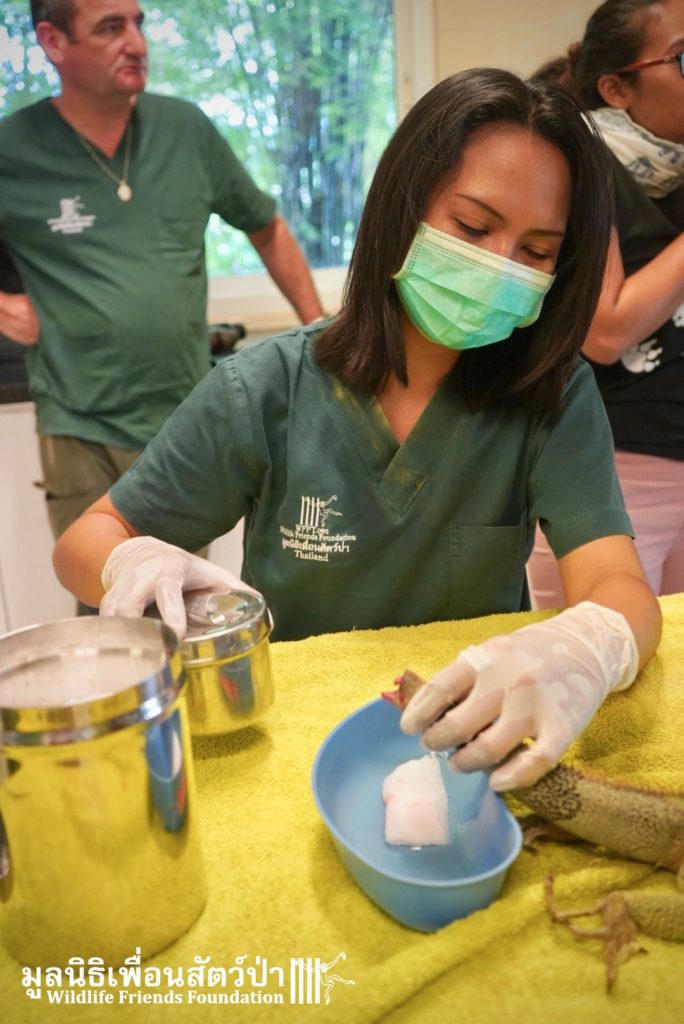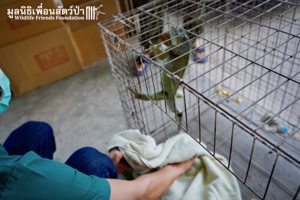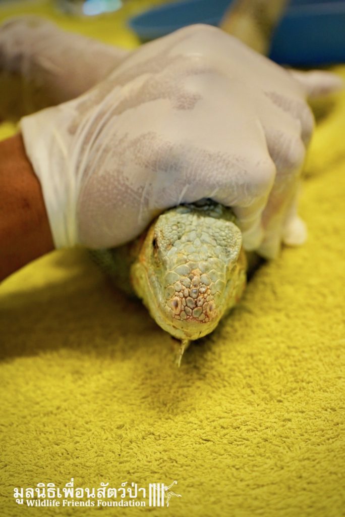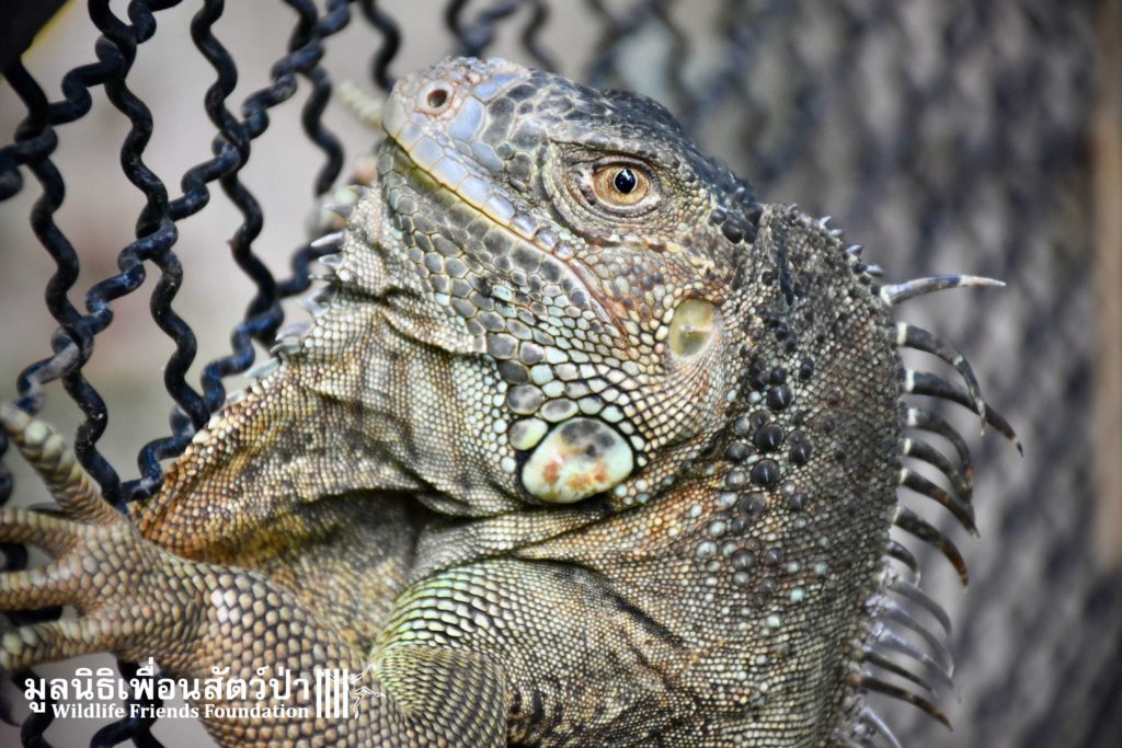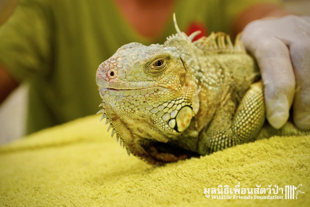 Recently a human rescue team from Phetchaburi contacted the WFFT rescue team about an Iguana they had to take off someone’s hands.This Female Adult of 4 or maybe 5 years old, who’s been called Celine was previously kept as a pet.