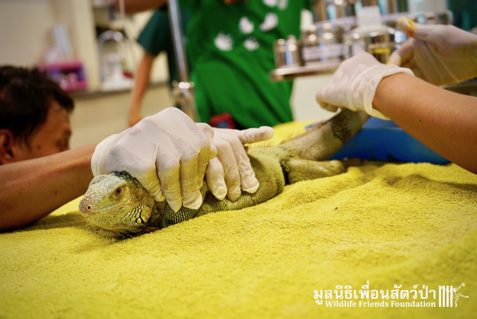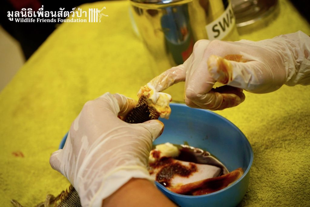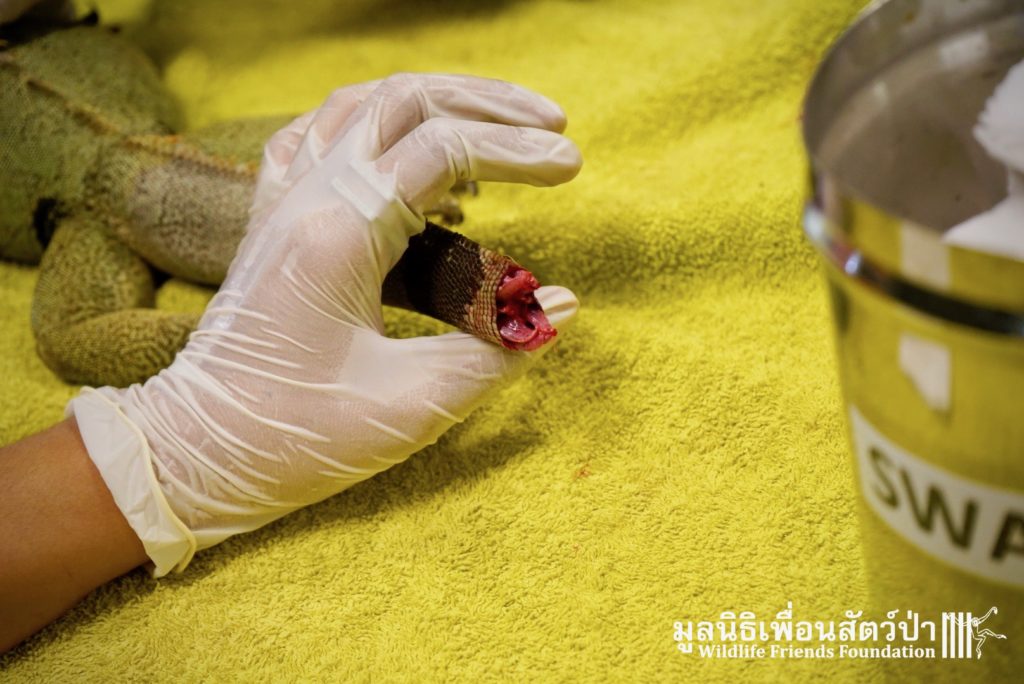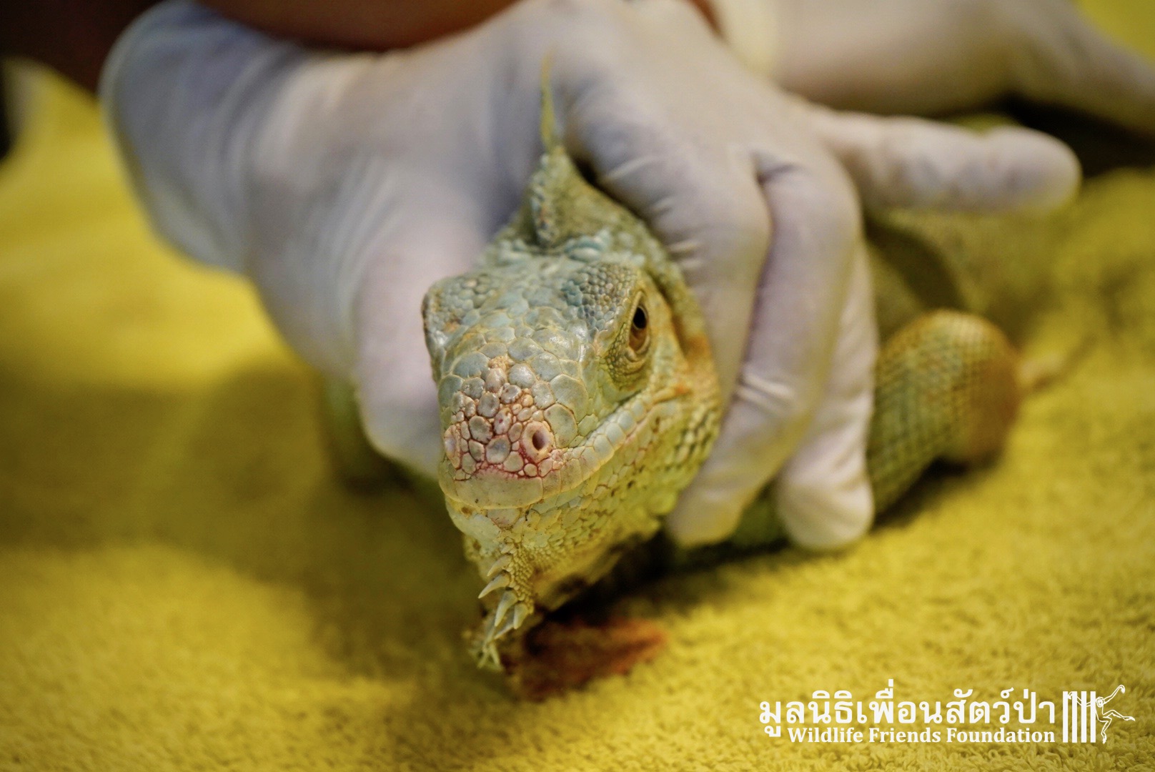 Recently a human rescue team from Phetchaburi contacted the WFFT rescue team about an Iguana they had to take off someone’s hands.This Female Adult of 4 or maybe 5 years old, who’s been called Celine was previously kept as a pet.