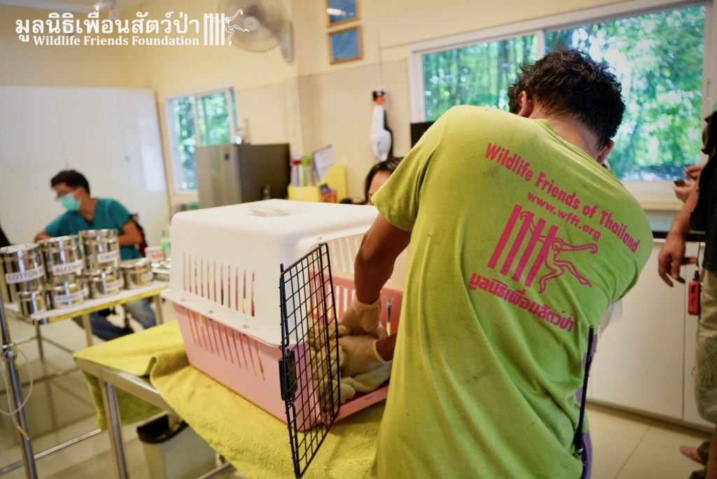The owners could not keep her anymore, for their own reasons and contacted the Phetchaburi rescue team to take her. They contacted the center and the team went out and picked her up and brought her back to her new home.