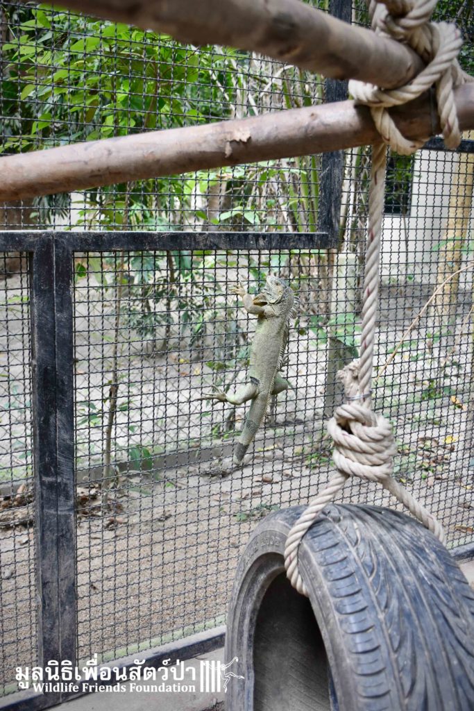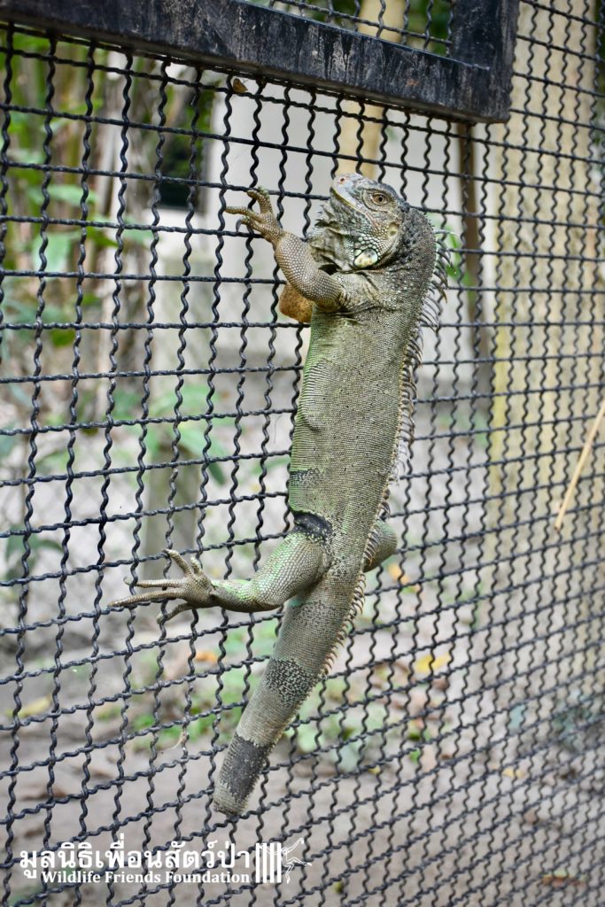 Celine will not go back to the wild and can’t by law. Iguanas are non-native animals to Thailand and as a consequence, cannot be introduced to the ecosystem of the country. Native to Central and South America their habitats look very similar but our native species have not adapted to living with these predators. We do not normally rescue non native species but in this case it is preferable to owners simply releasing animals to the wild.