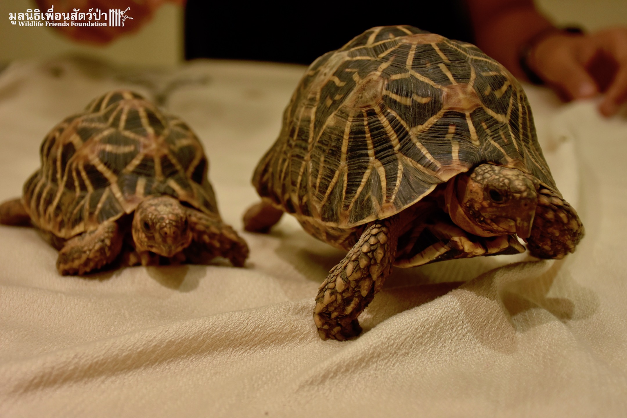 Meet Shani and Devi, two young Indian star tortoises (Geochelone elegans). They were bought from a market and kept as pets for the first year of their lives. The owner had to move away and could no longer care for them so contacted us for help. They arrived at WFFT this morning.