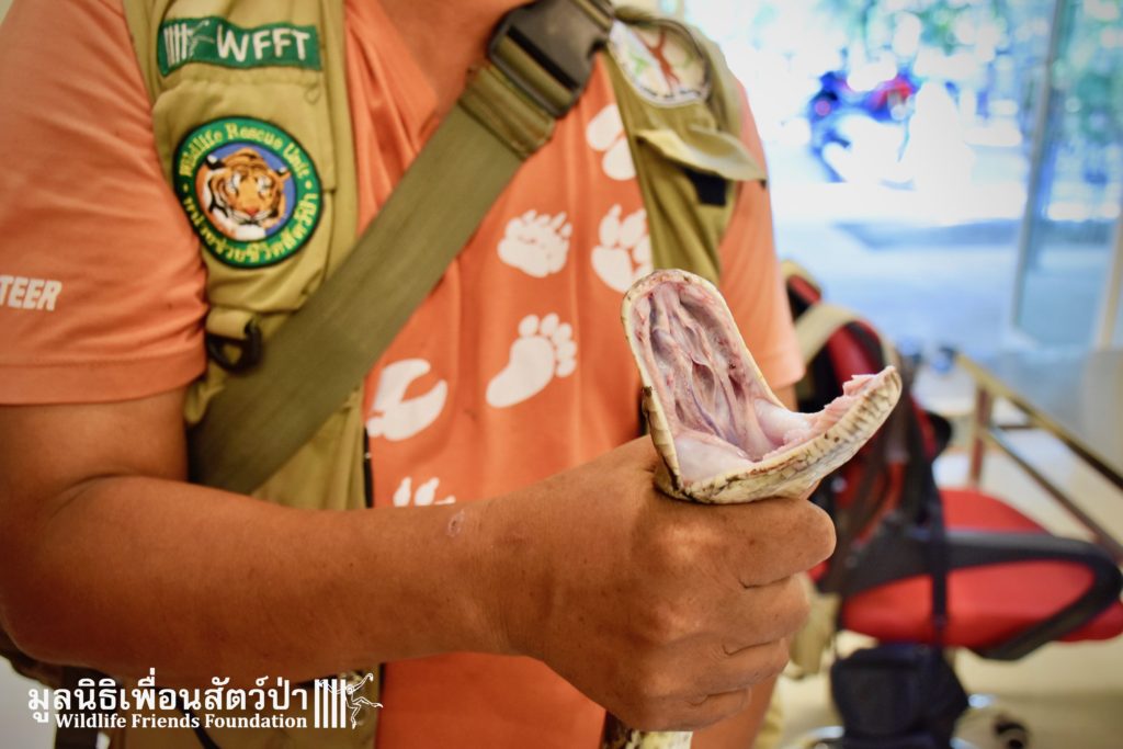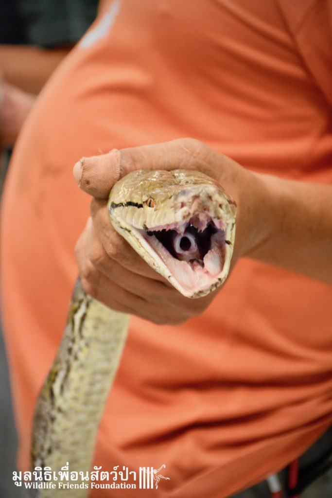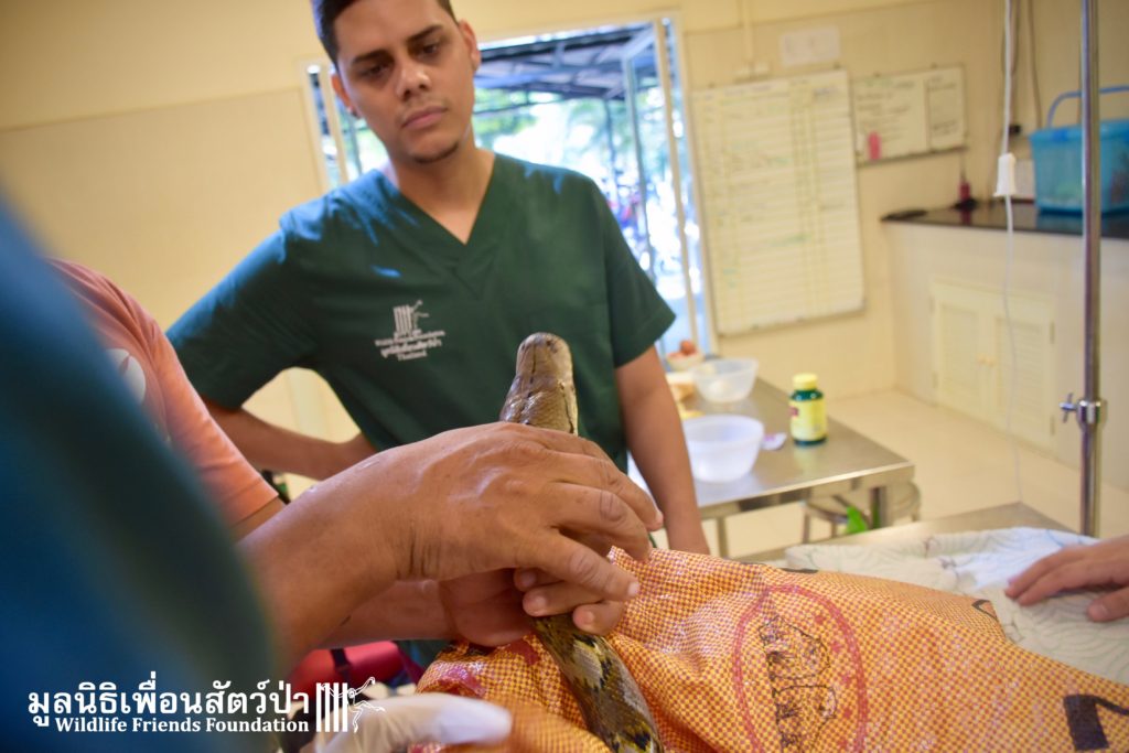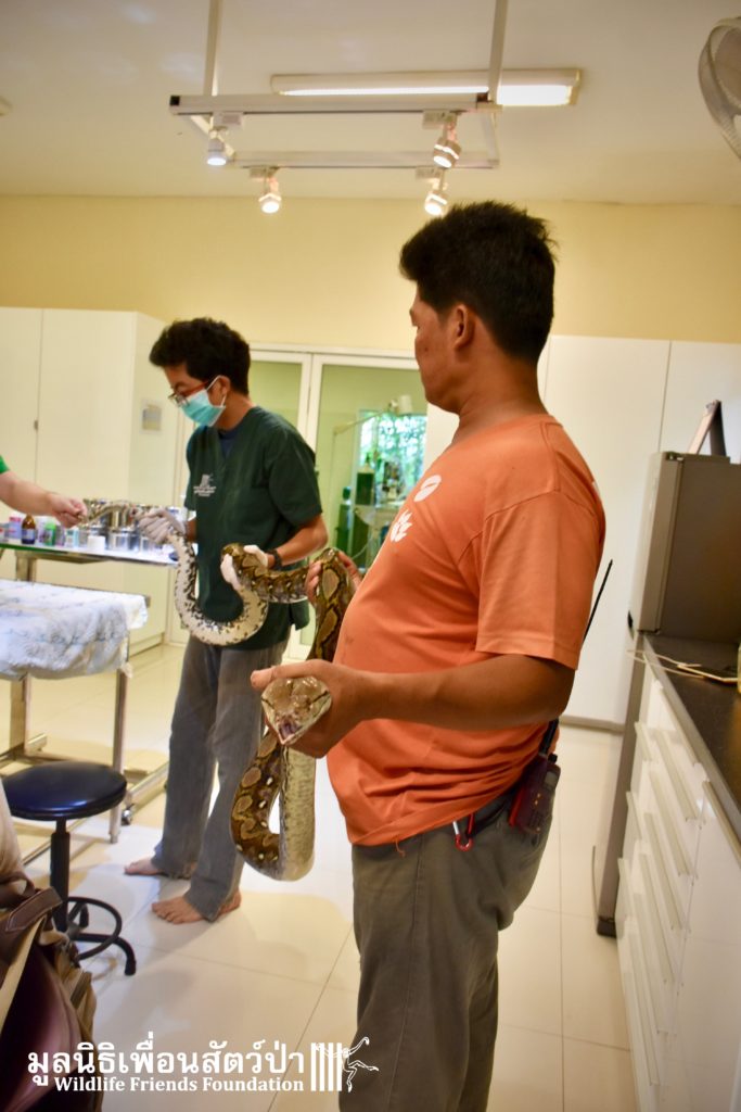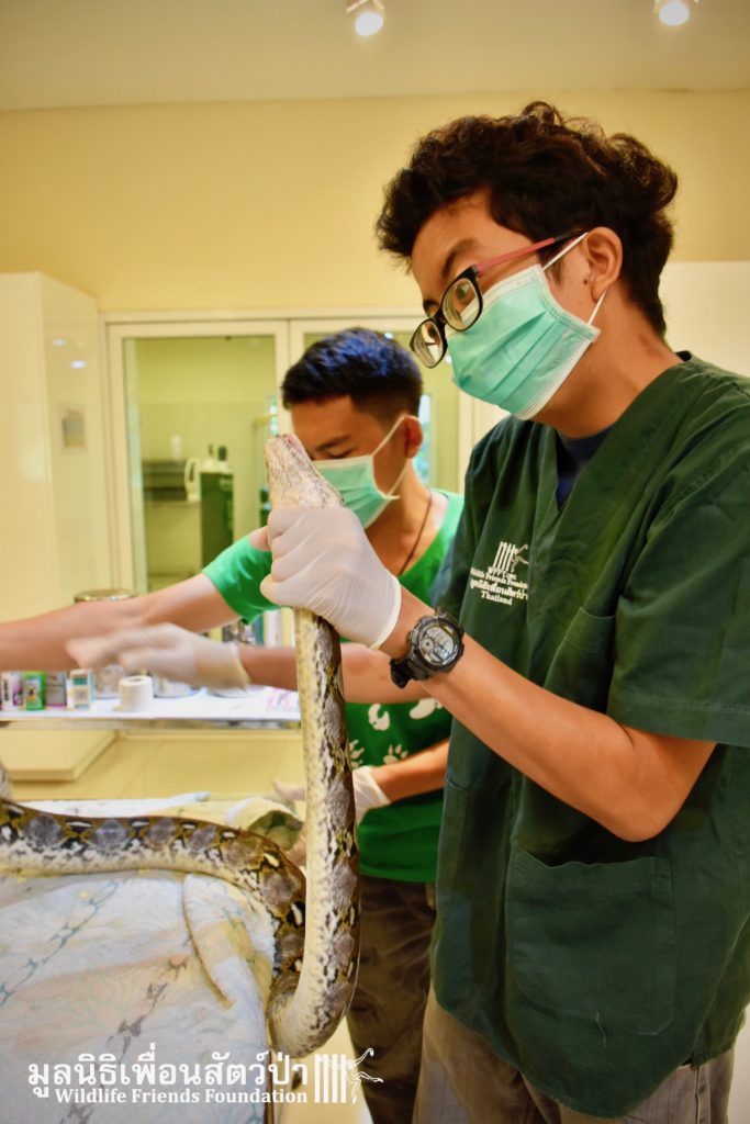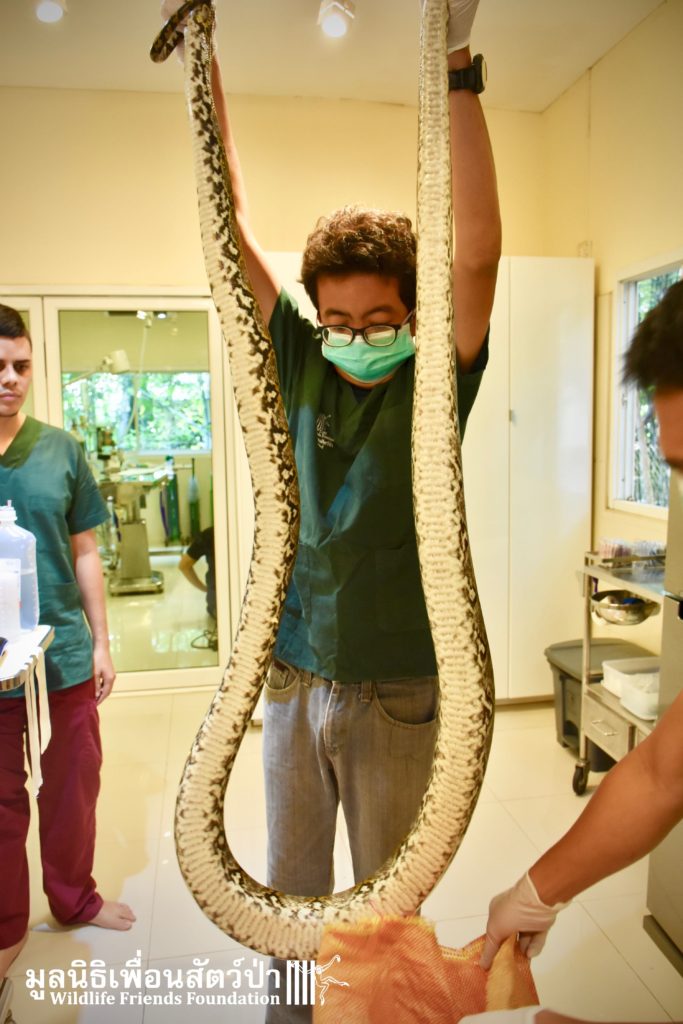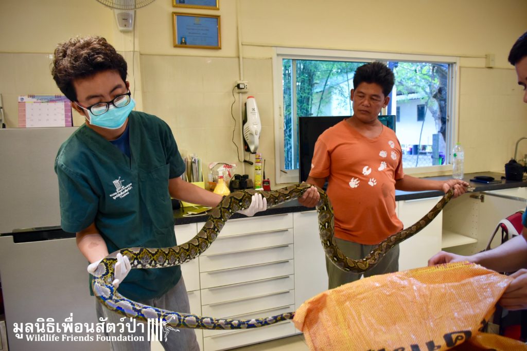 Earlier this week a male reticulated python (Python reticulatus) was brought to the WFFT Wildlife Rescue Hospital. Some local people found him under their bed, and after successfully putting him in a bag, came directly to WFFT Wildlife Rescue Centre.