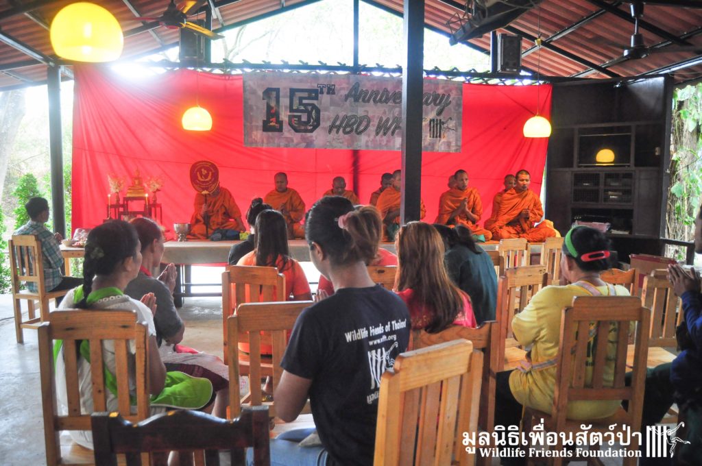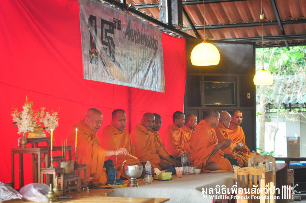 Yesterday staff and volunteer celebrated the 15th anniversary of the Wildlife Friends Foundation Thailand. Here are some pictures from the morning merit making and offerings to the monks of Khao Lok Chang Temple and the evening party we had with staff, volunteers and long term supporters of WFFT. Thank you to all our supporters over the years. Here is to many more successful wildlife rescue and conservation projects in the years to come.