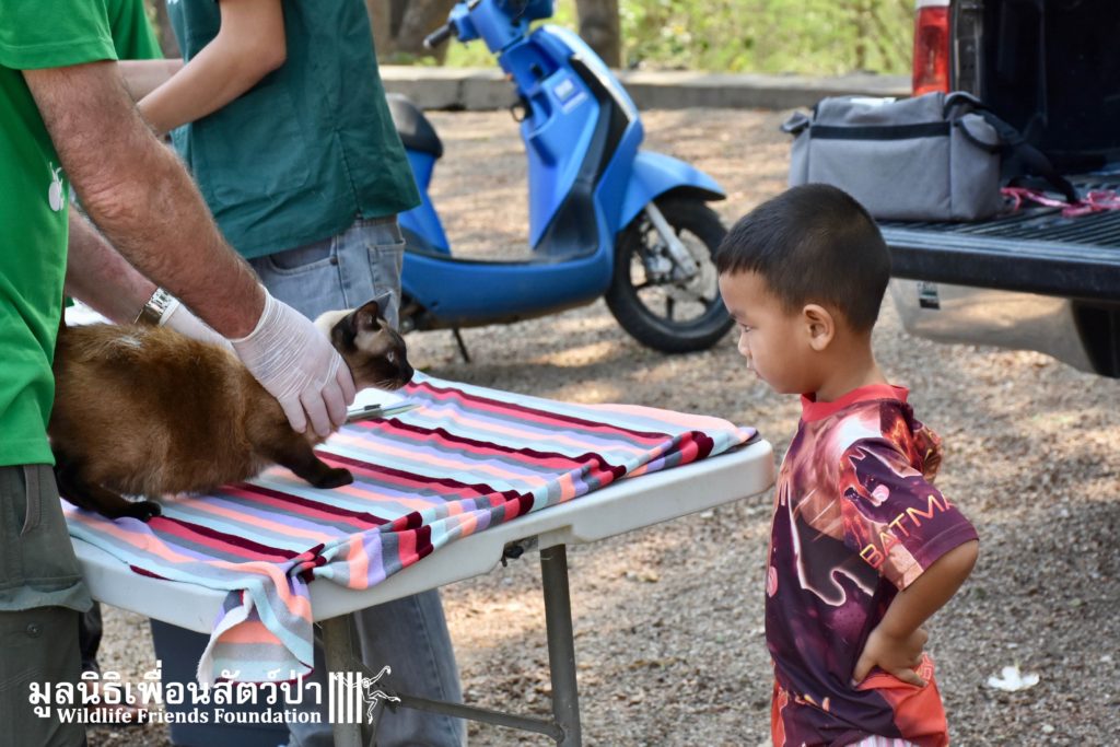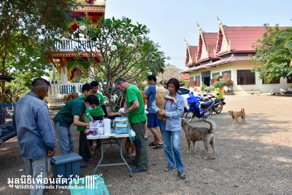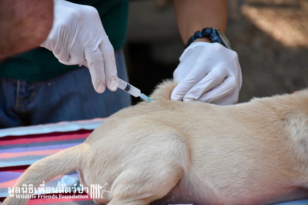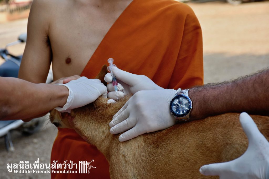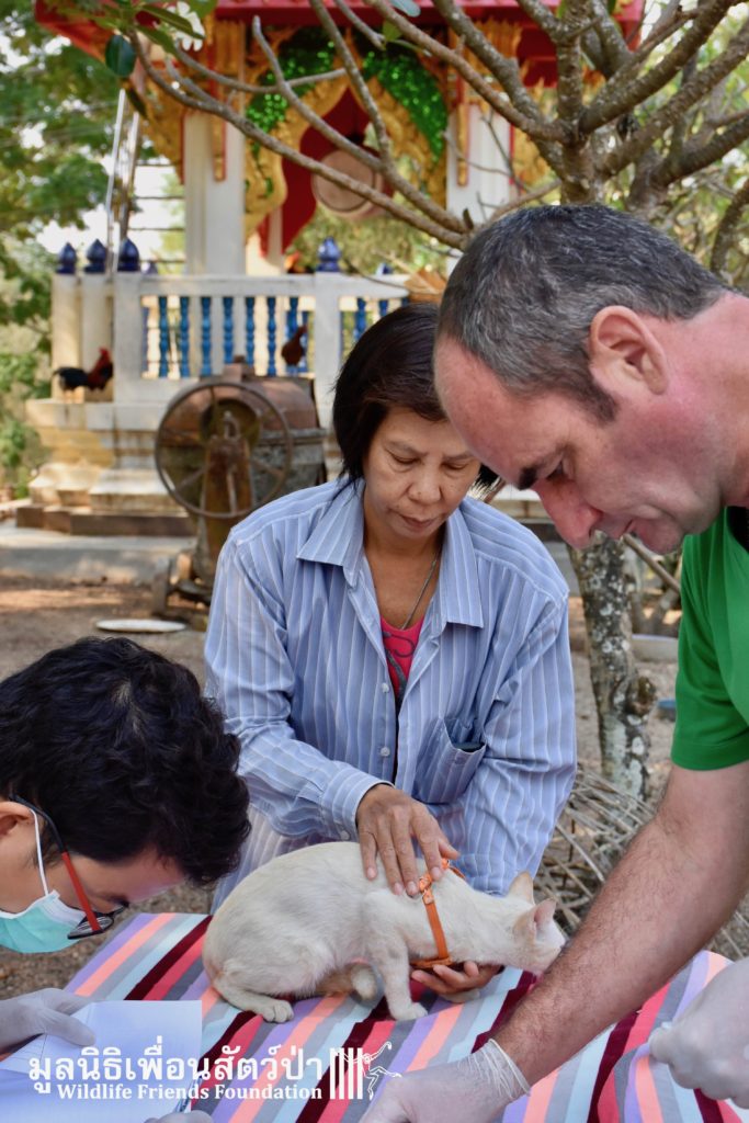 Vaccines and wormers were provided free of charge as well as an offer to sterilize most of these animals over the next month for free. Despite the difficulties, costs and risks involved we have been able to continue to support the local community as well as educate and implement long term improvements in the health of the animals around us. Thanks to the generosity of many people we are able to continue the varied and valuable work we do. This is not the end of this story but the beginning. Having shown it can be done we will strive to expand this to halt the spread of preventable disease and educate and support local communities who are vital in halting the abuse of wildlife in Thailand.