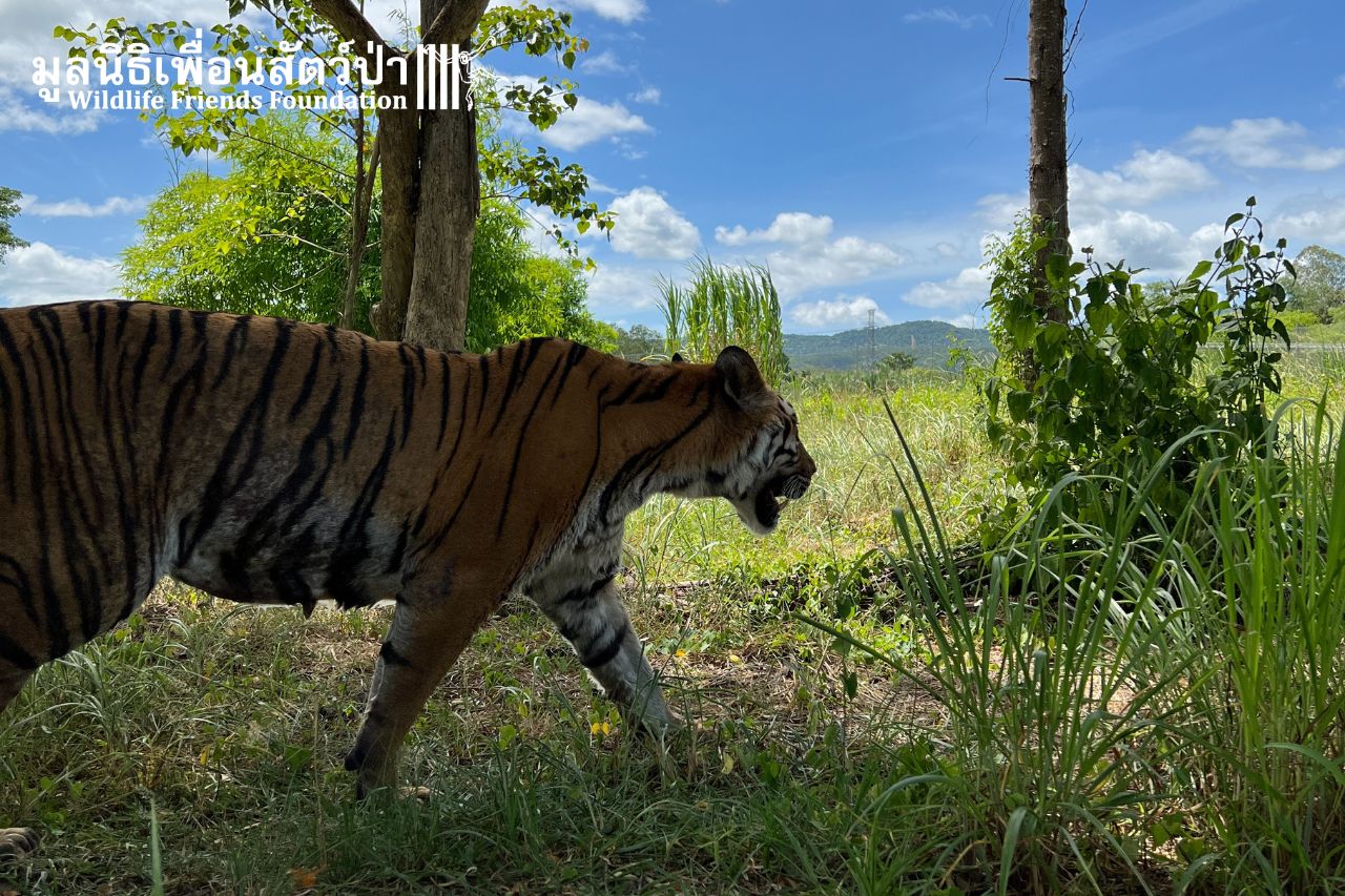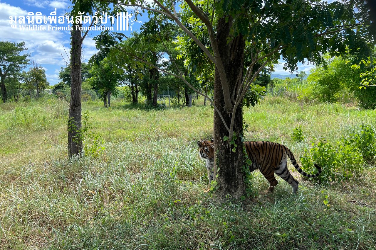 Mena is 12 years old and was born in a zoo in Bangkok. She has been quite nervous going into the huge outside habitat. It is something she has never known before – nature! Slowly but surely, she is exploring. It was magical to see her claw a tree for the FIRST time in her life. If you love Mena’s triumphant tale, will you please help contribute towards her daily care here at WFFT? With many hungry tigers to feed and care for, we urgently need tiger lovers like you to help them. Become part of their journey!
