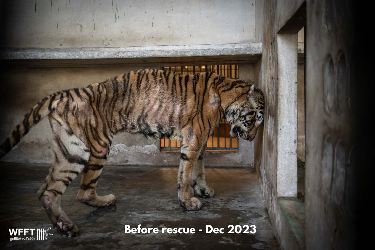 Salamas arrived at WFFT in December 2023, in a devastating condition. She was painfully thin and frail. Despite her weakened state, there was a flicker of hope when she began to gain strength and weight. But sadly, this more than 20-year-old tigress was already too old for a miracle.