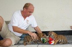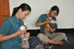 The tigers were found in serious health condition and help was sought from abroad to care for and check on the animals. WFFT who have worked in Thailand, Laos, Vietnam and Indonesia on wildlife rescue issues, have extensive experience with rearing young cats and offered to help out. A team led by WFFT founder Edwin Wiek was flown in to Dhaka on the 16th of june and stayed 4 days helping with the care and medical check-ups on the three tiger cubs. WFFT has donated medical supplies, food and nutrition supplements for the coming months that will help to increase the chance of survival of the cubs.