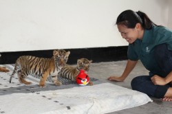 The Wildlife Friends Foundation Thailand rescue team has been helping with the rescue of 3 wild caught tiger cubs that were rescued form an illegal wildlife trader in Dhaka, Bangladesh. The illegal trader who was caught red-handed Has by now been convicted to 2 years in jail, and told investigators the 3 cubs were taken over one month ago from the Sundarbans mangrove, the largest mangrove forest in the world and the world’s largest natural tiger habitat.