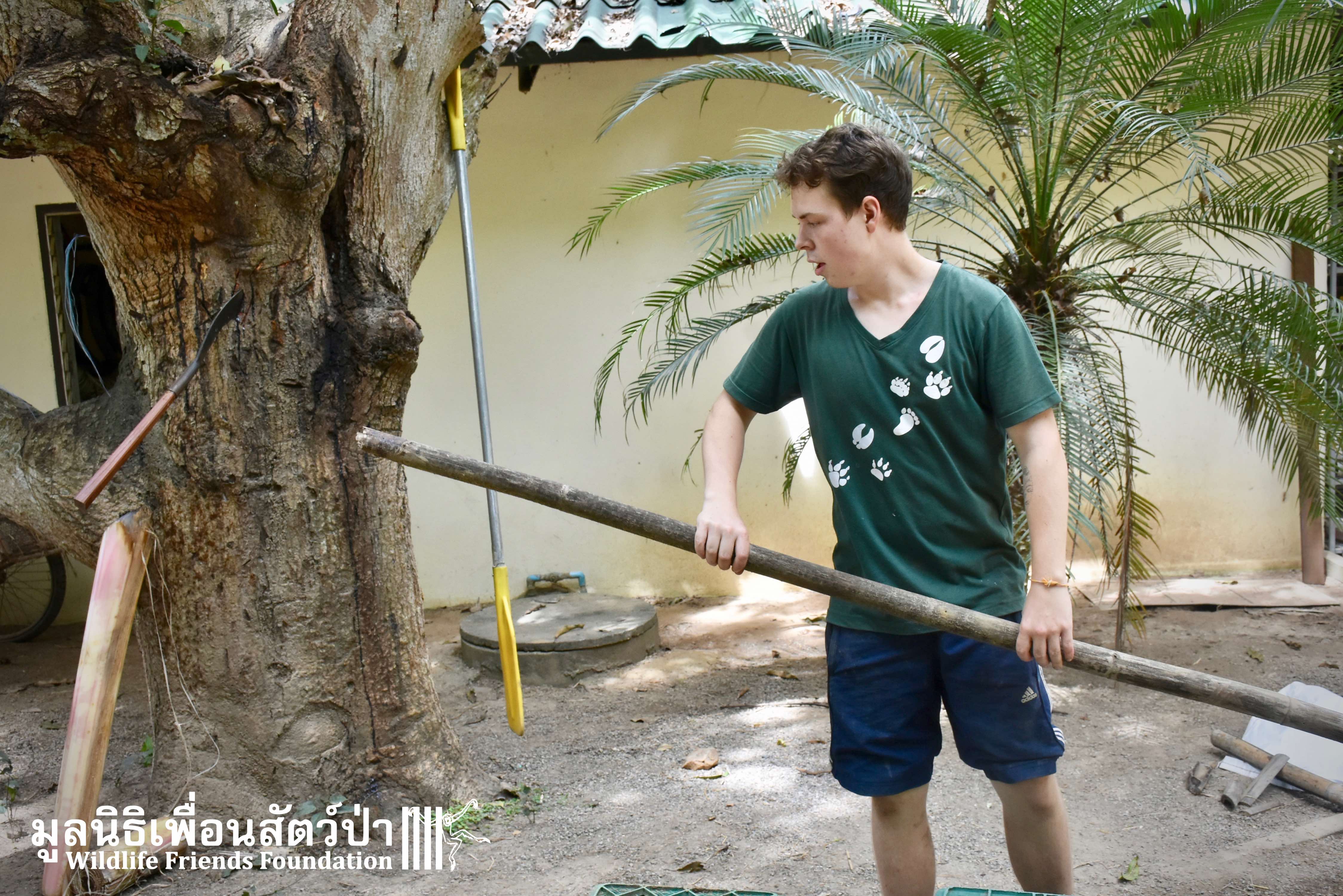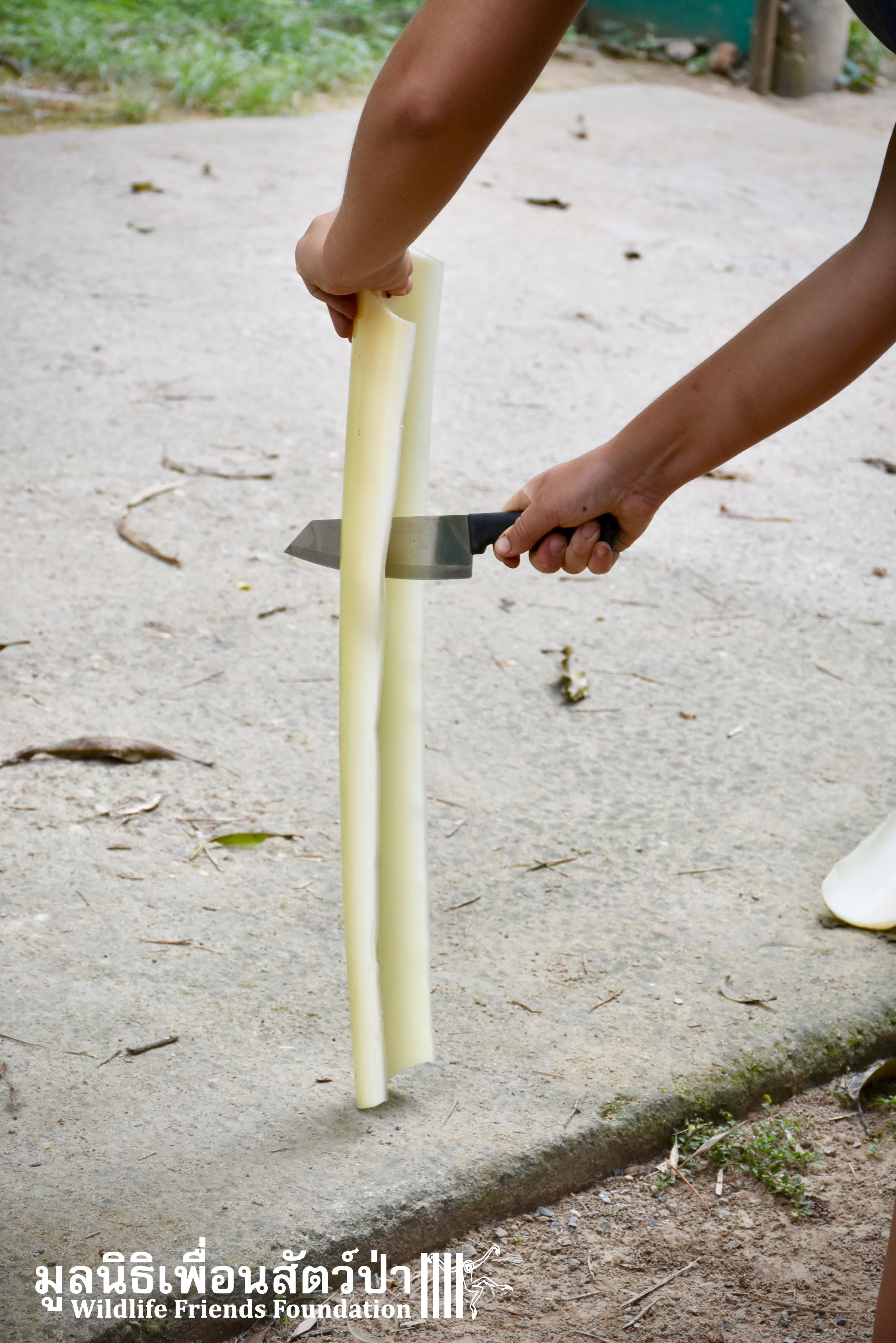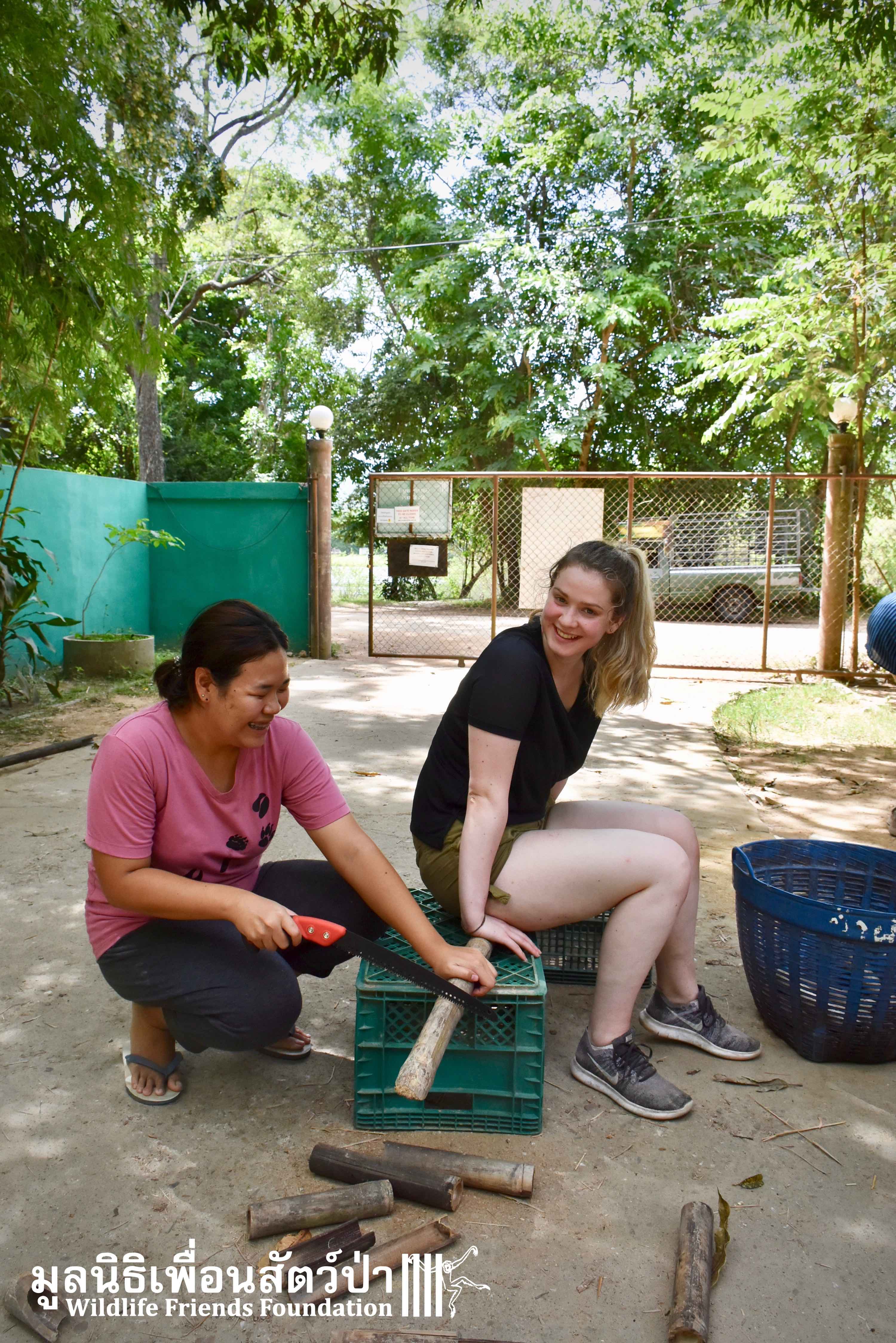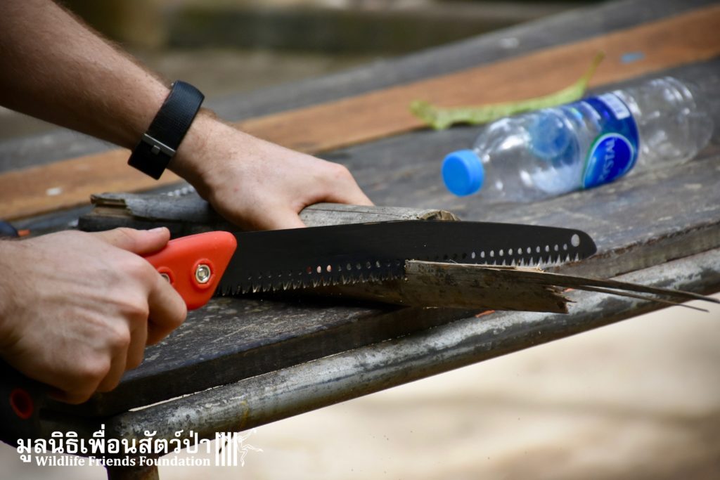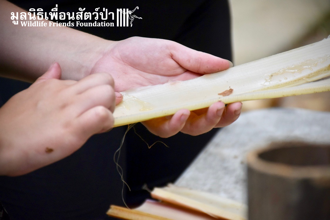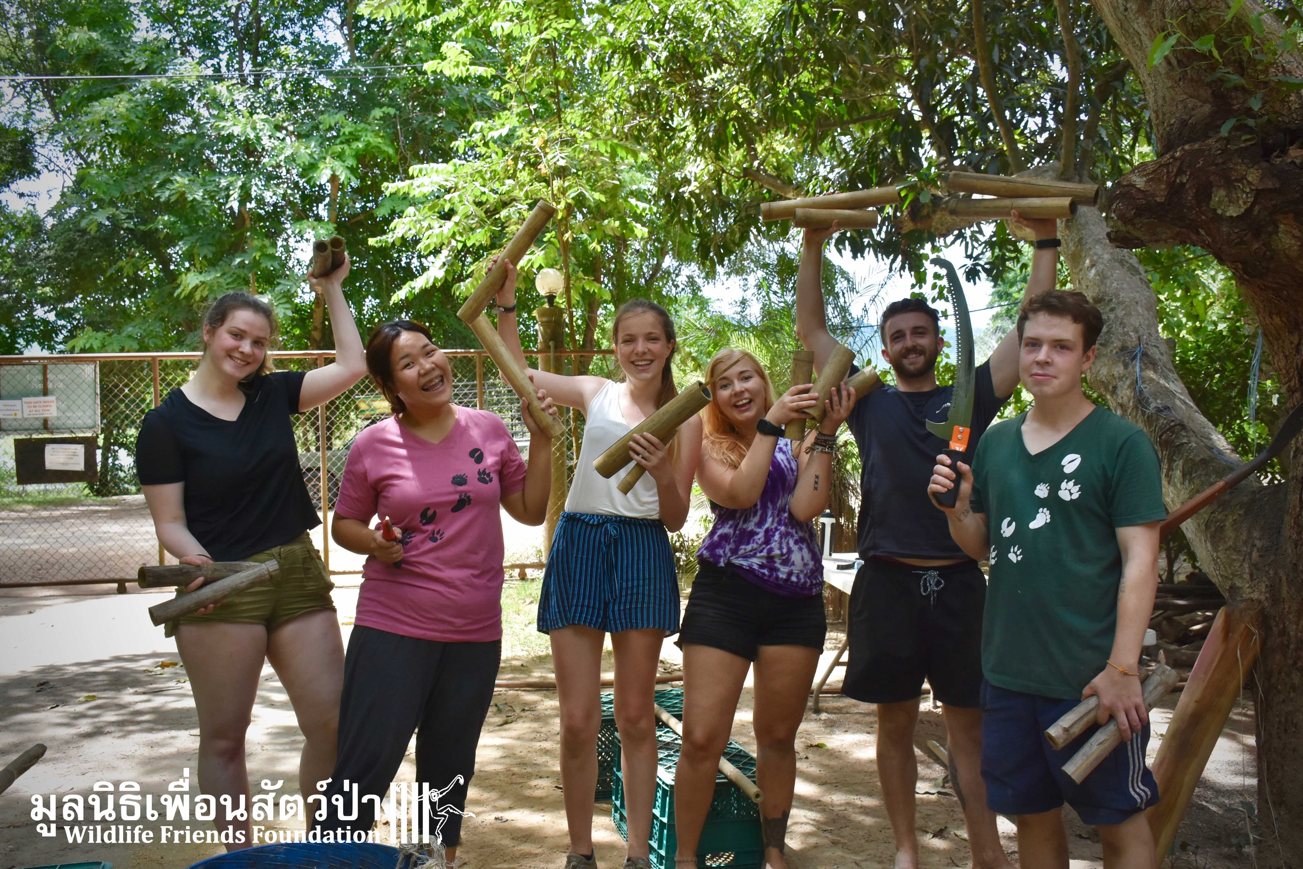 The least we can say is that our bears are more than bearly gourmets ! Our Wildlife Staff and volunteers know this ! Each day, in addition to their regular food, they have enrichments, like all the rescued animals of the WFFT center. Here to stimulated them and encourage their natural behaviour they receive treats too. And what better treat for a bear than honey?! And what better way than Bamboo sections to hide it and get our furry friends to rip it apart to reach the precious nectar, using claws and teeth. Thus providing mental and physical stimulation.